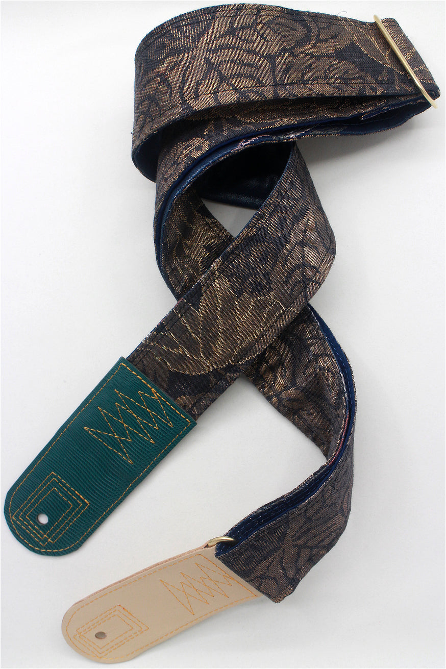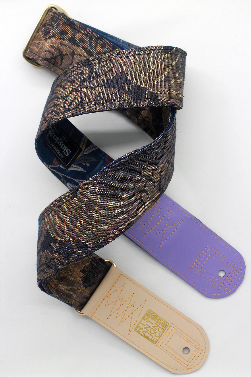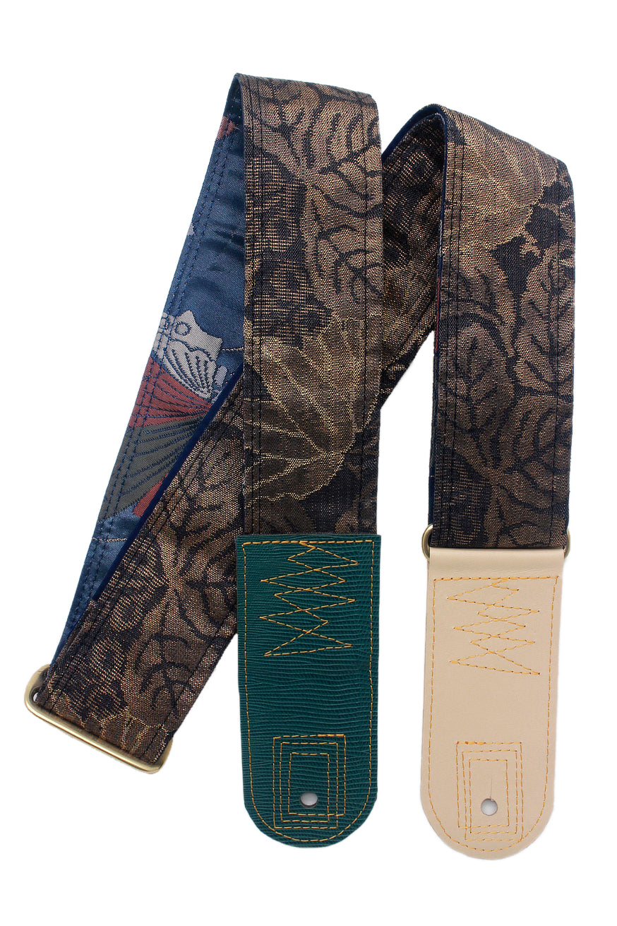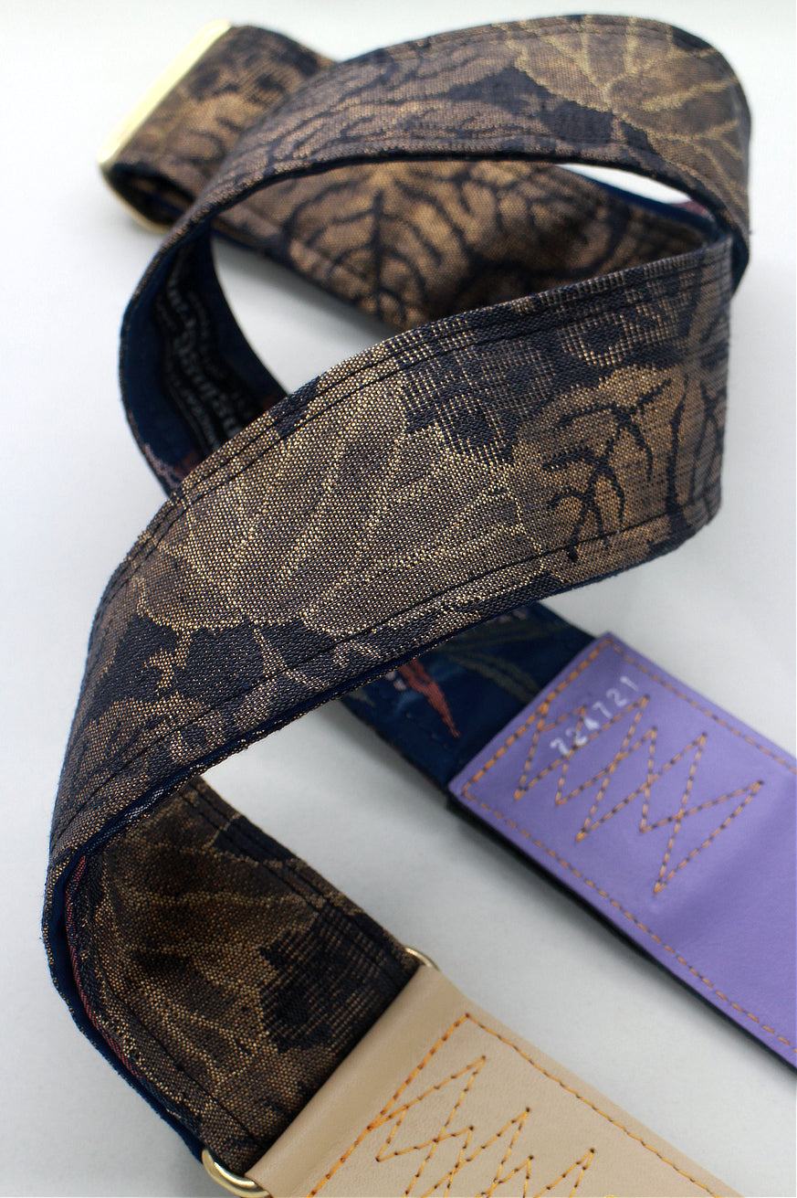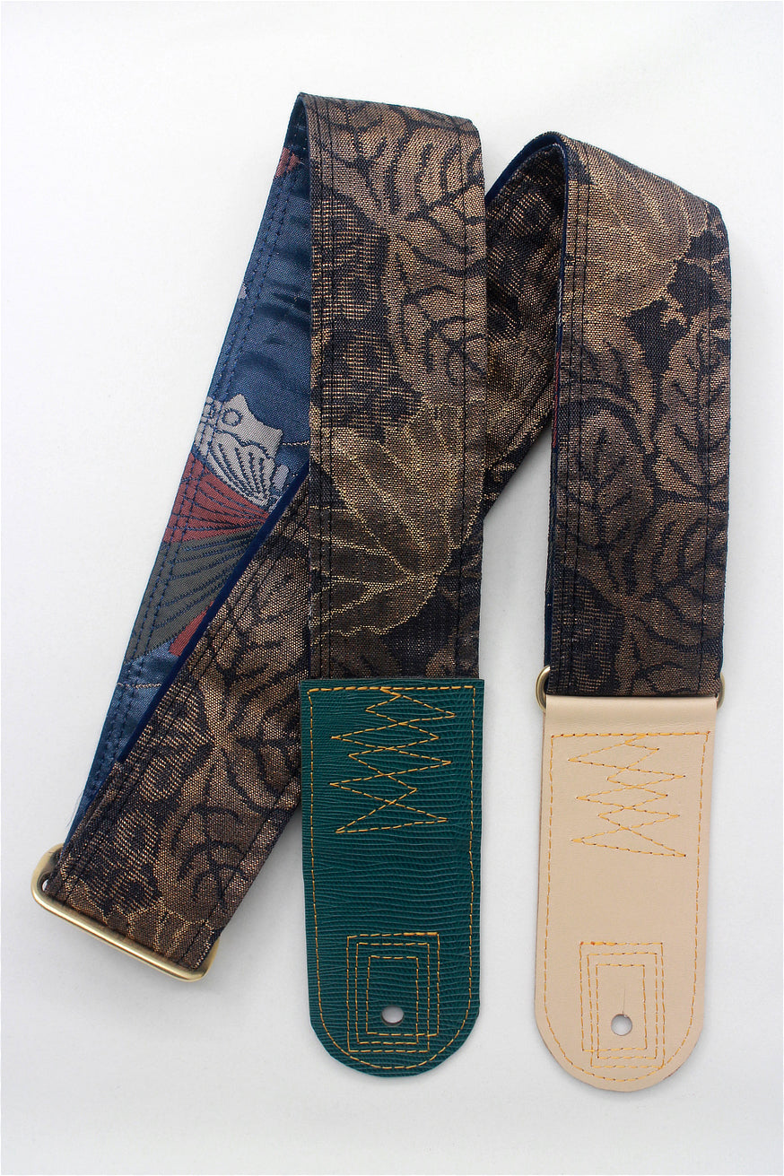 Unique and beautiful guitar strap [SC724721] - hand made in Japan from recycled silk woven kimono obi, leather and brass