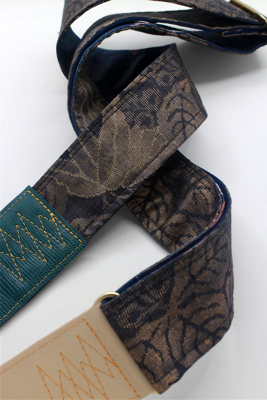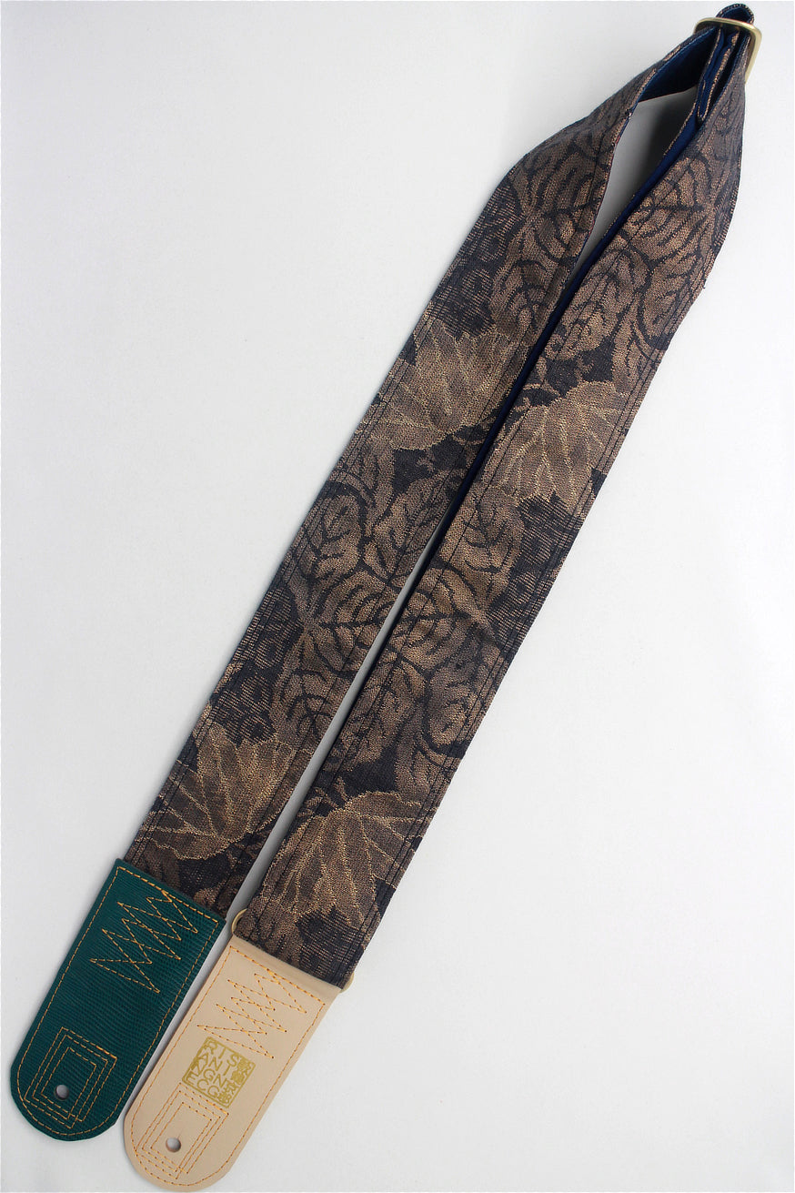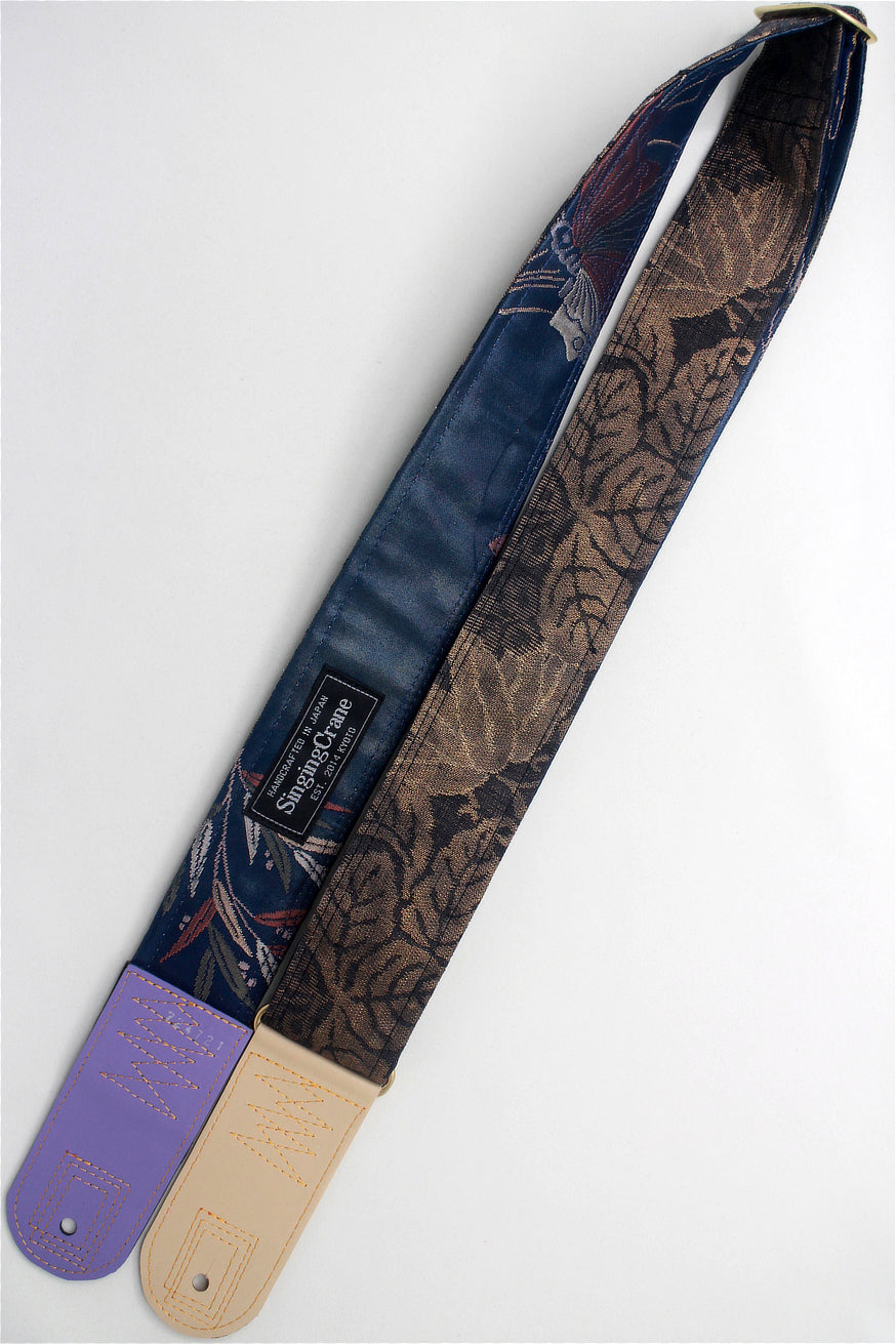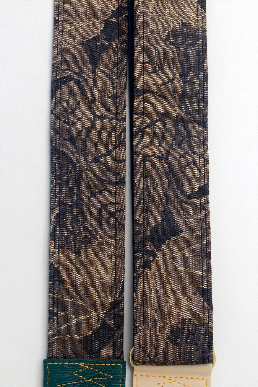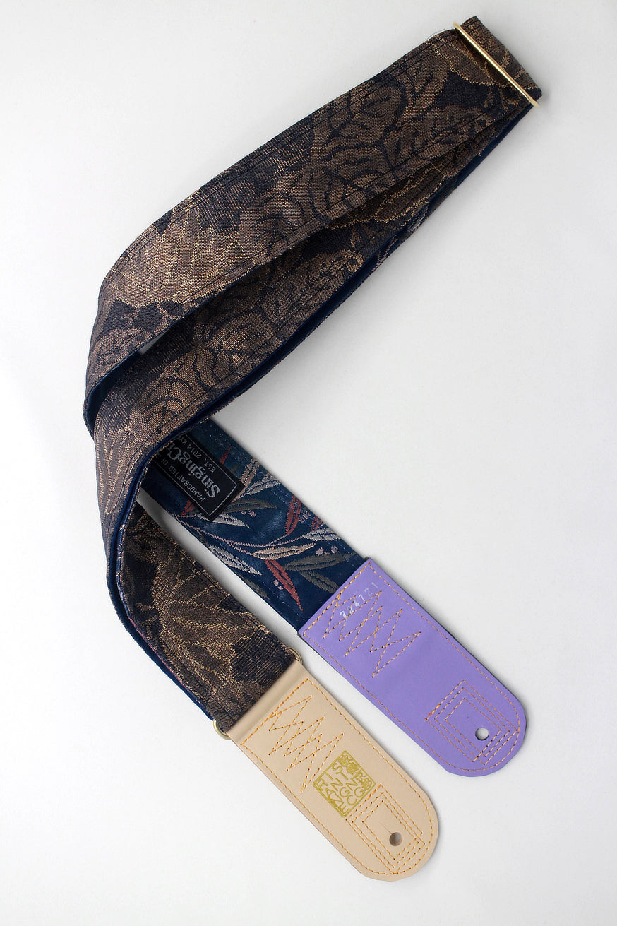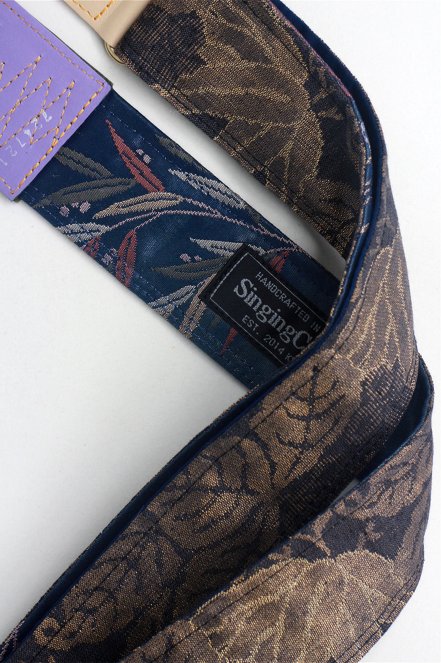 Unique and beautiful guitar strap [SC724721] - hand made in Japan from recycled silk woven kimono obi, leather and brass