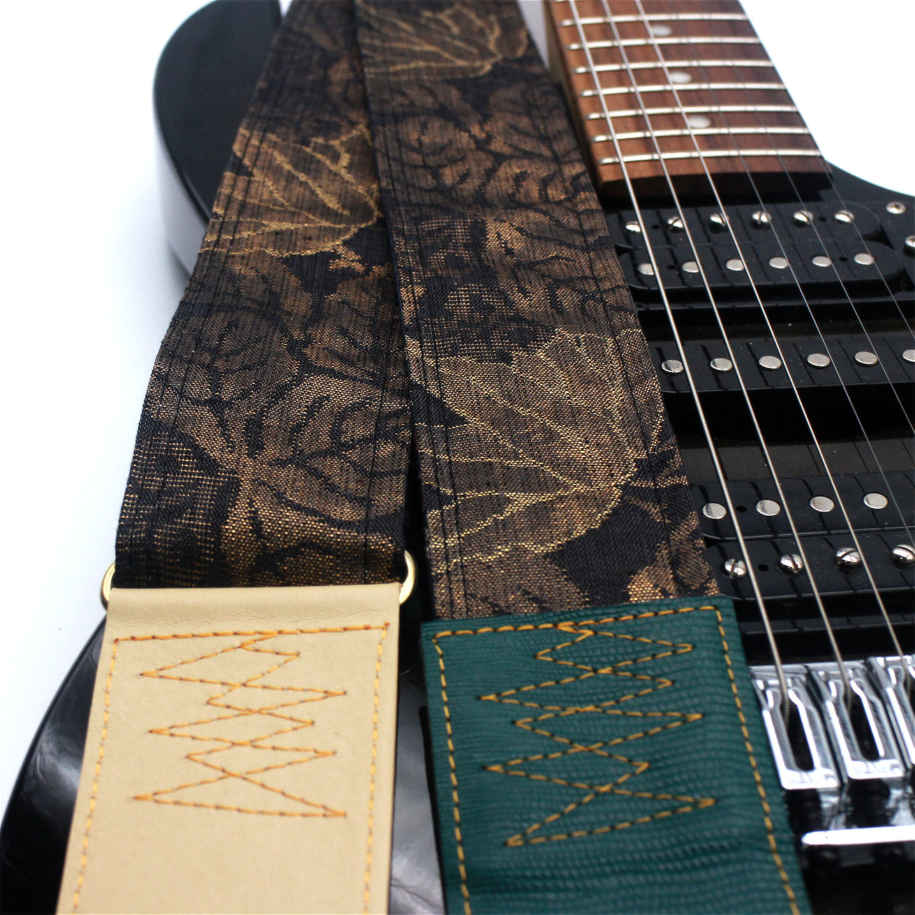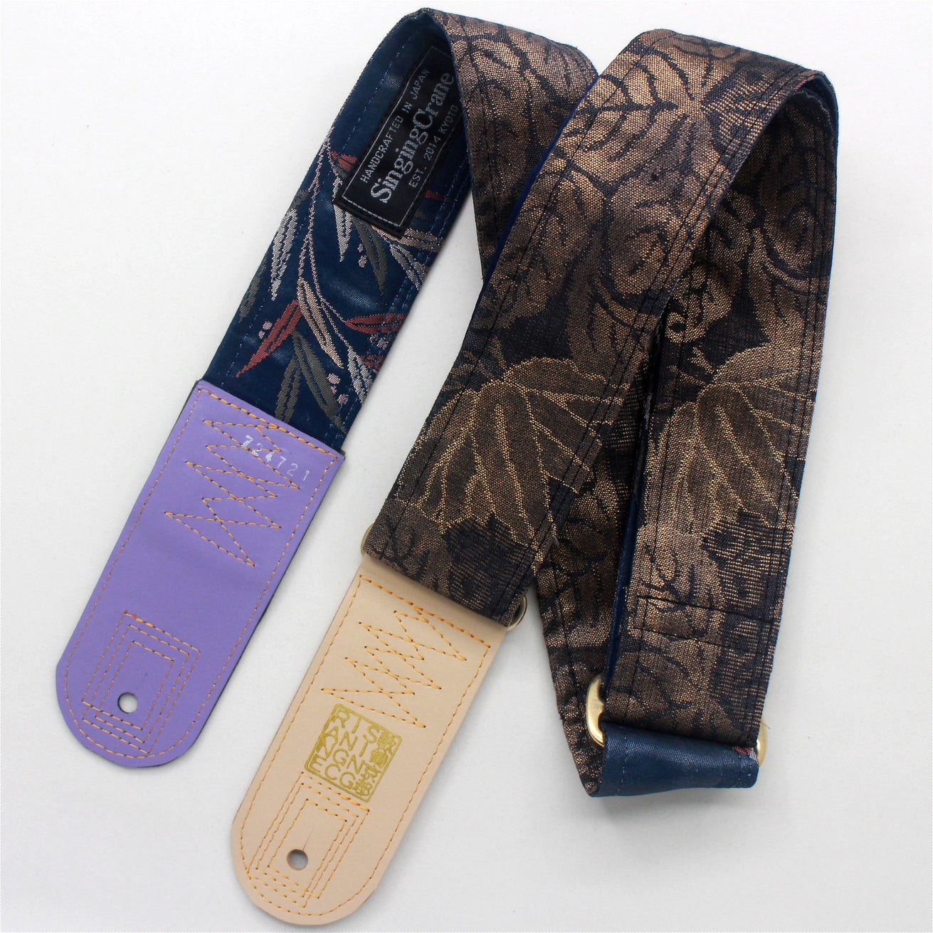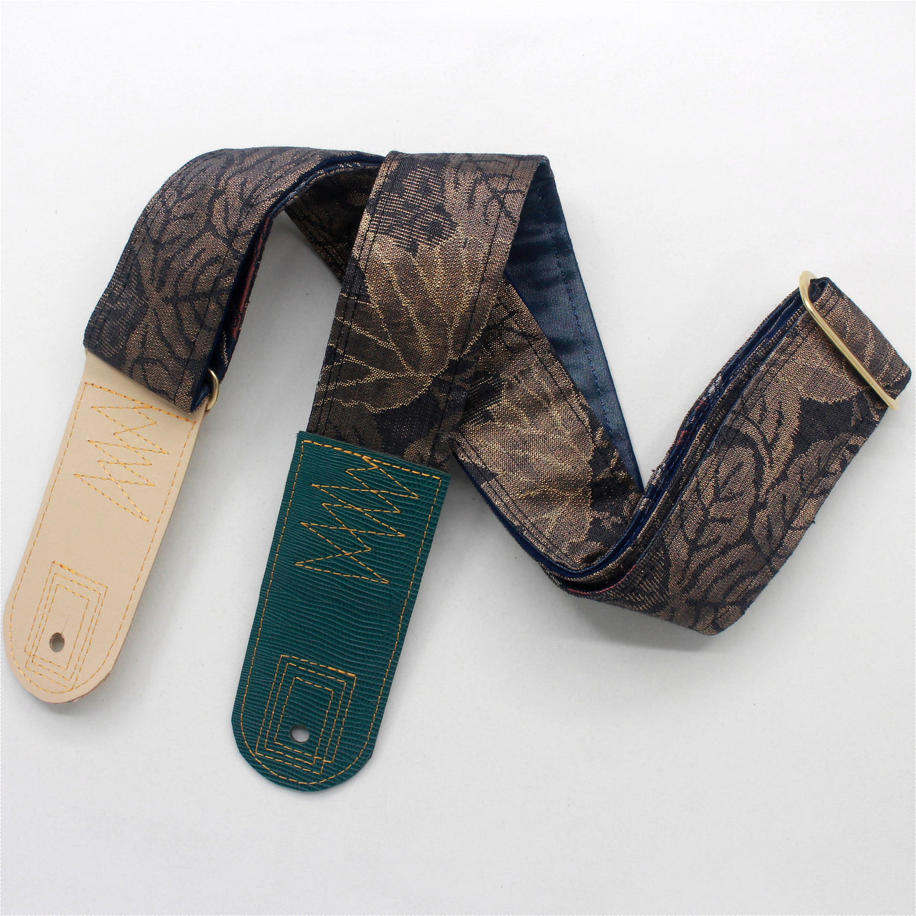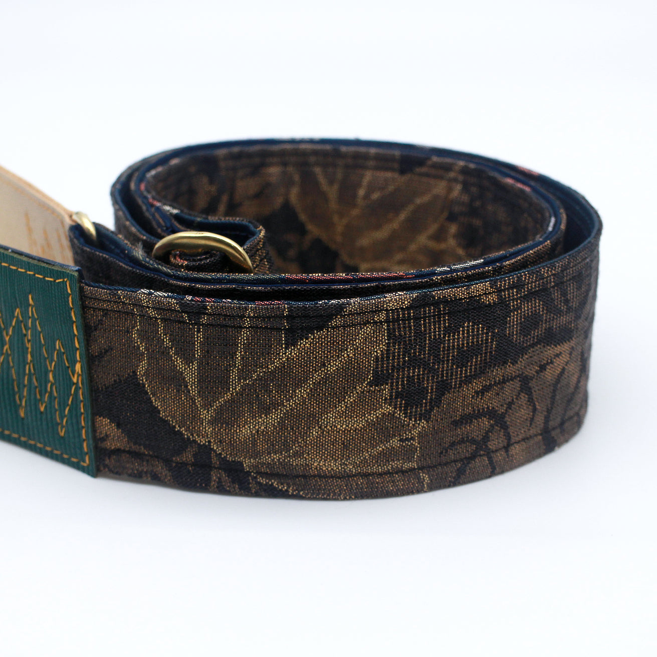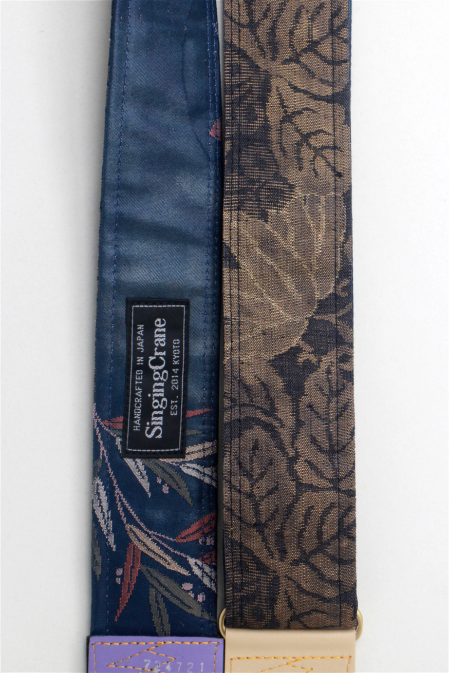 Unique and beautiful guitar strap [SC724721] - hand made in Japan from recycled silk woven kimono obi, leather and brass