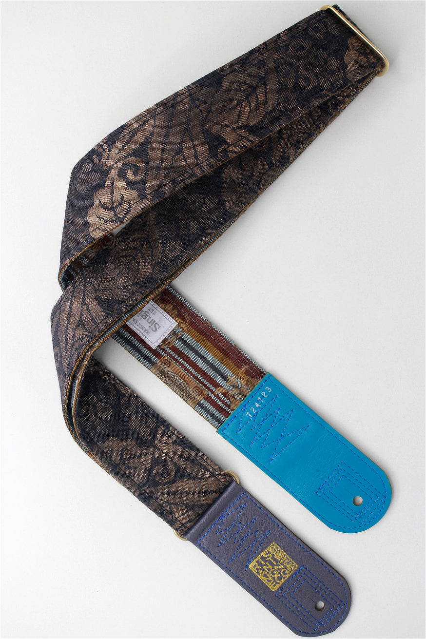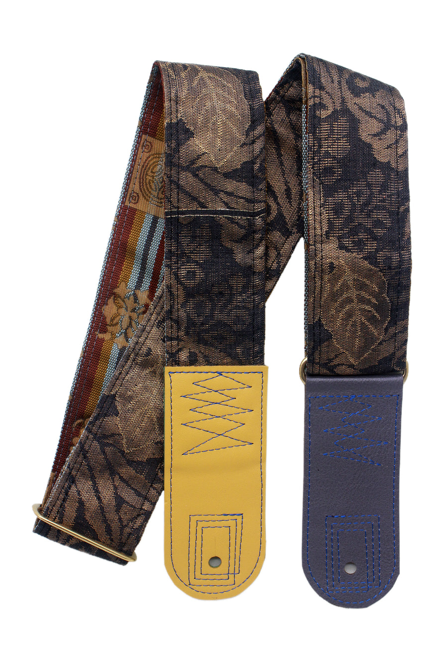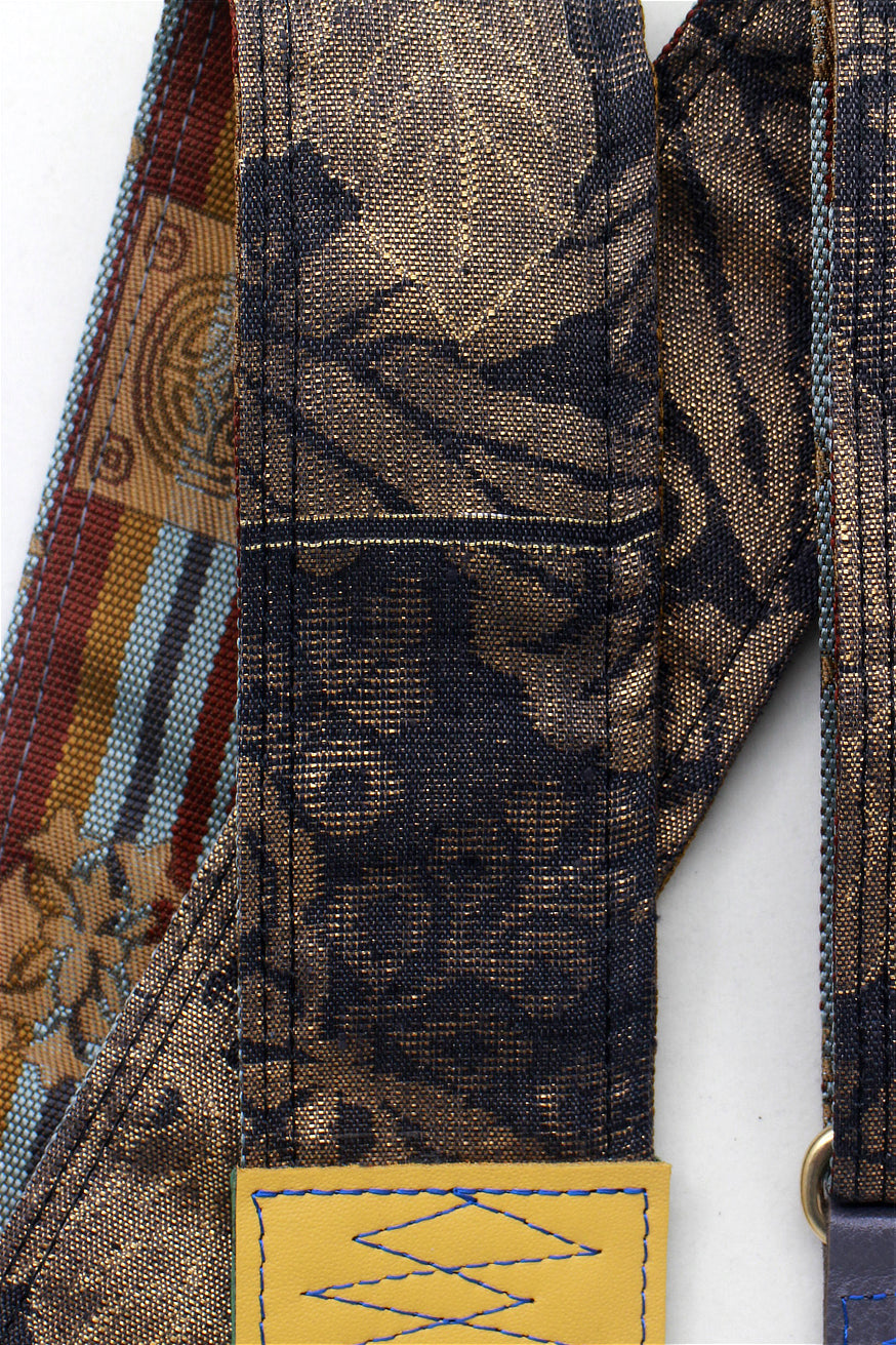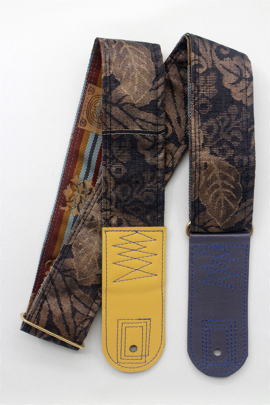 Unique and beautiful guitar strap [SC724723] - hand made in Japan from recycled silk woven kimono obi, leather and brass