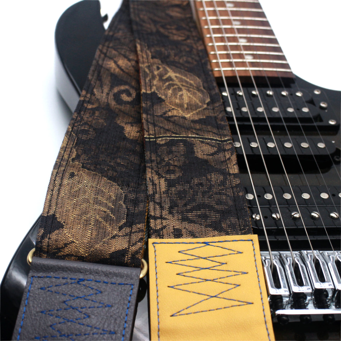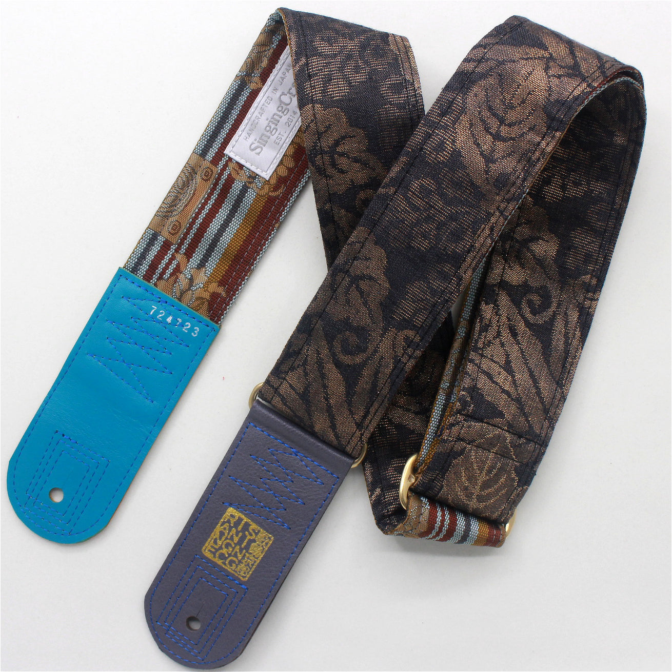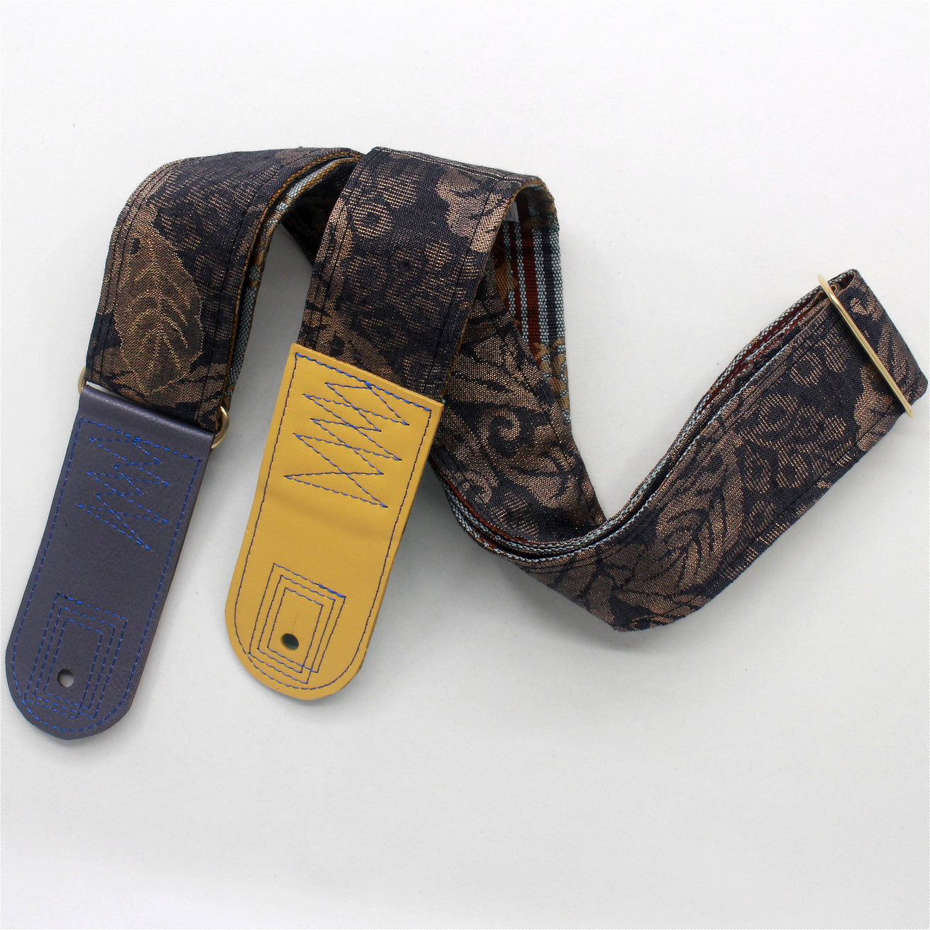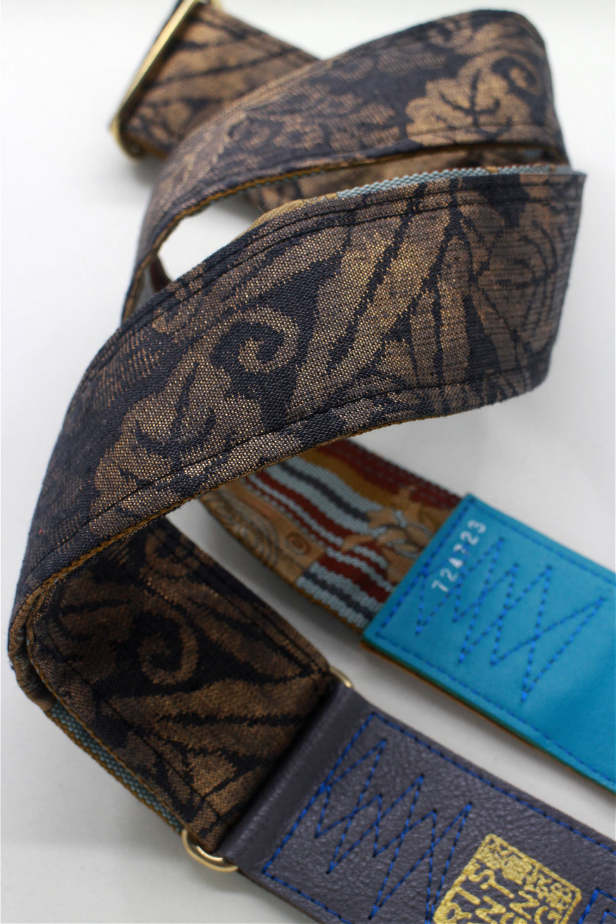 Unique and beautiful guitar strap [SC724723] - hand made in Japan from recycled silk woven kimono obi, leather and brass