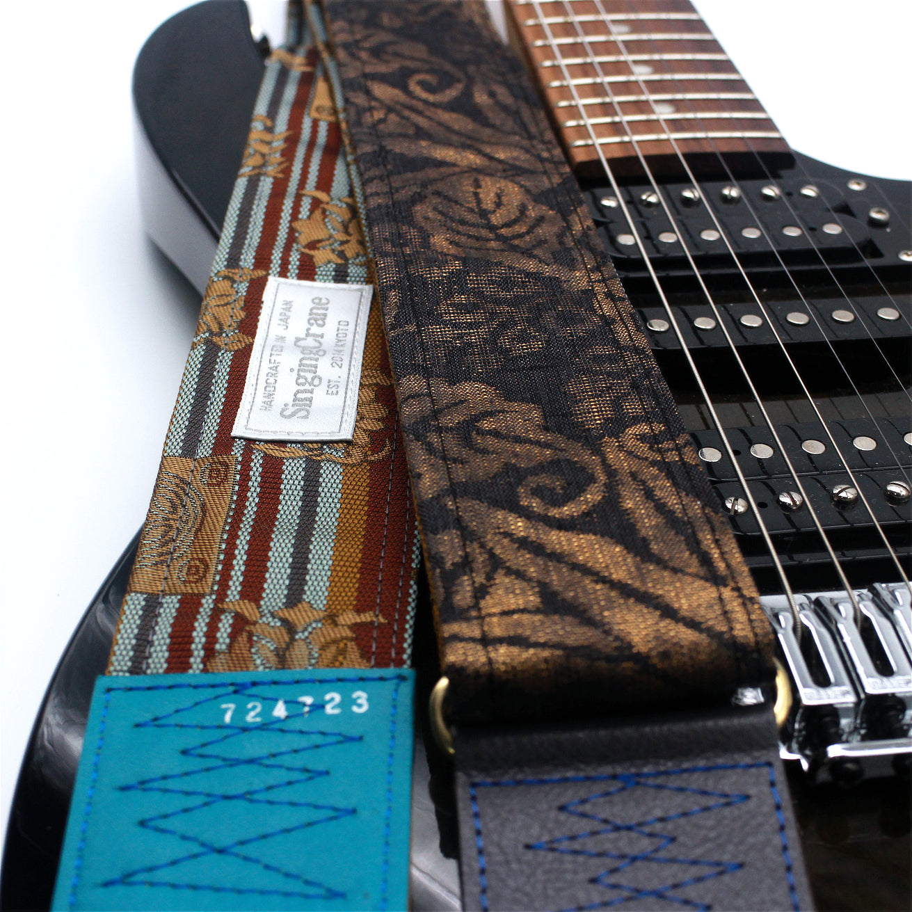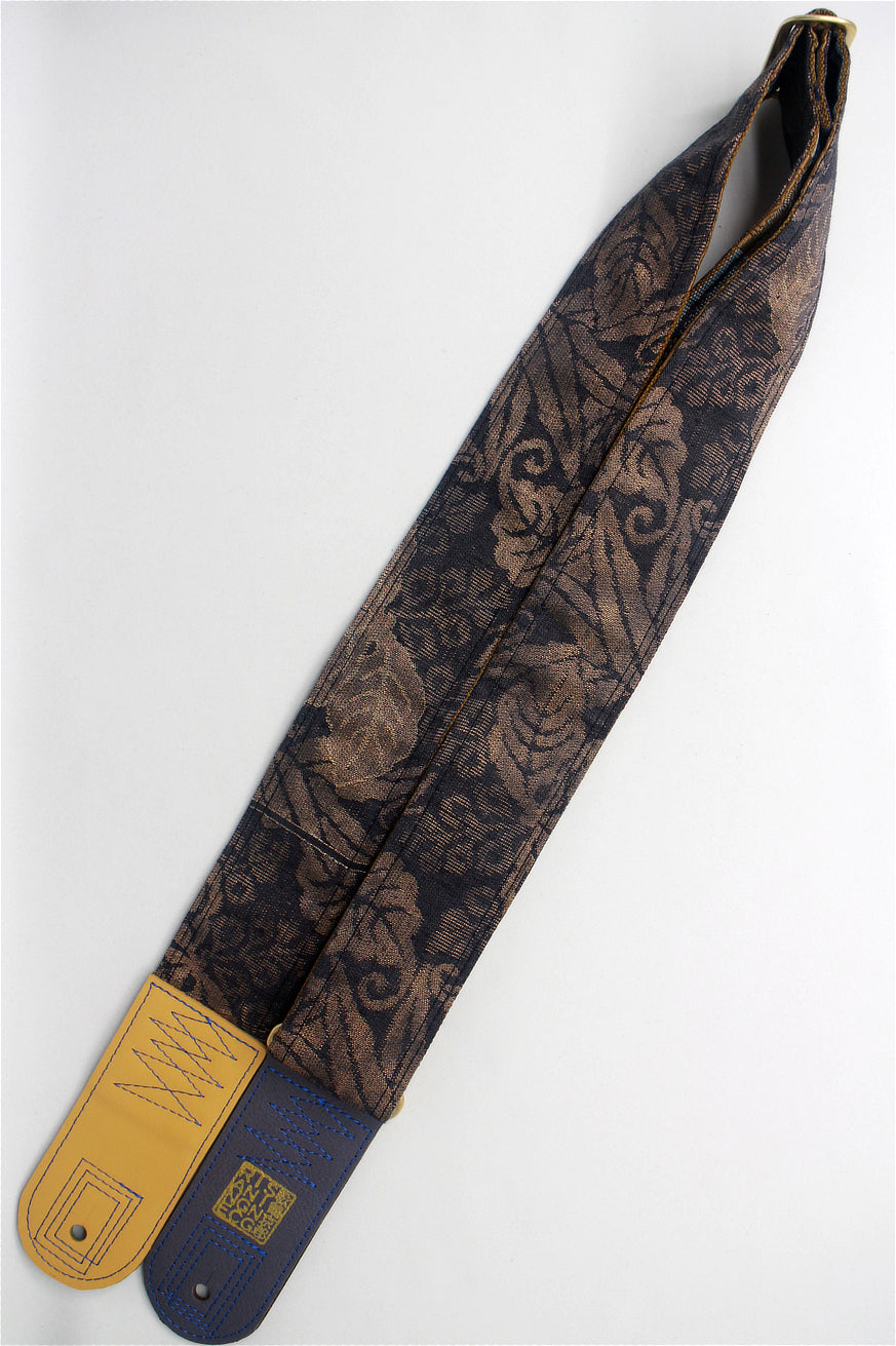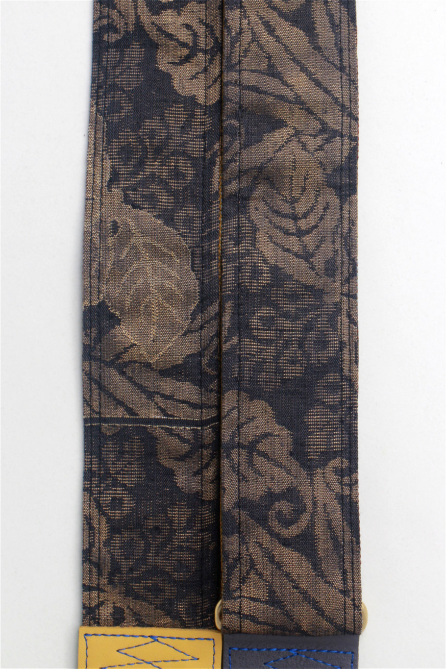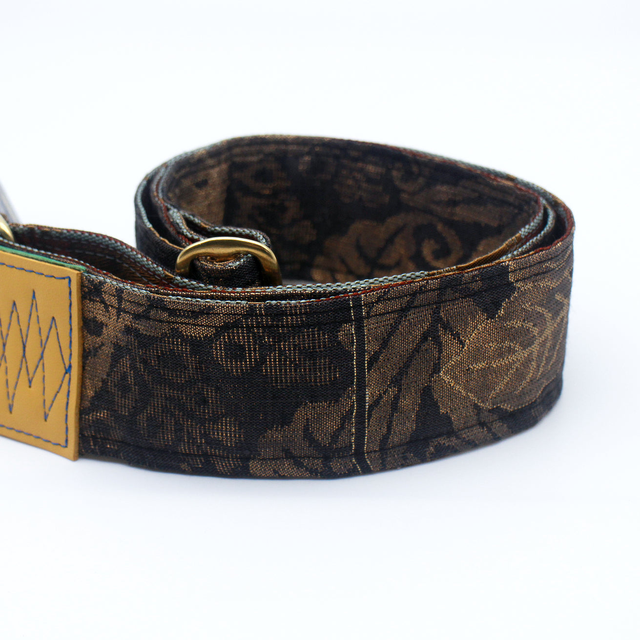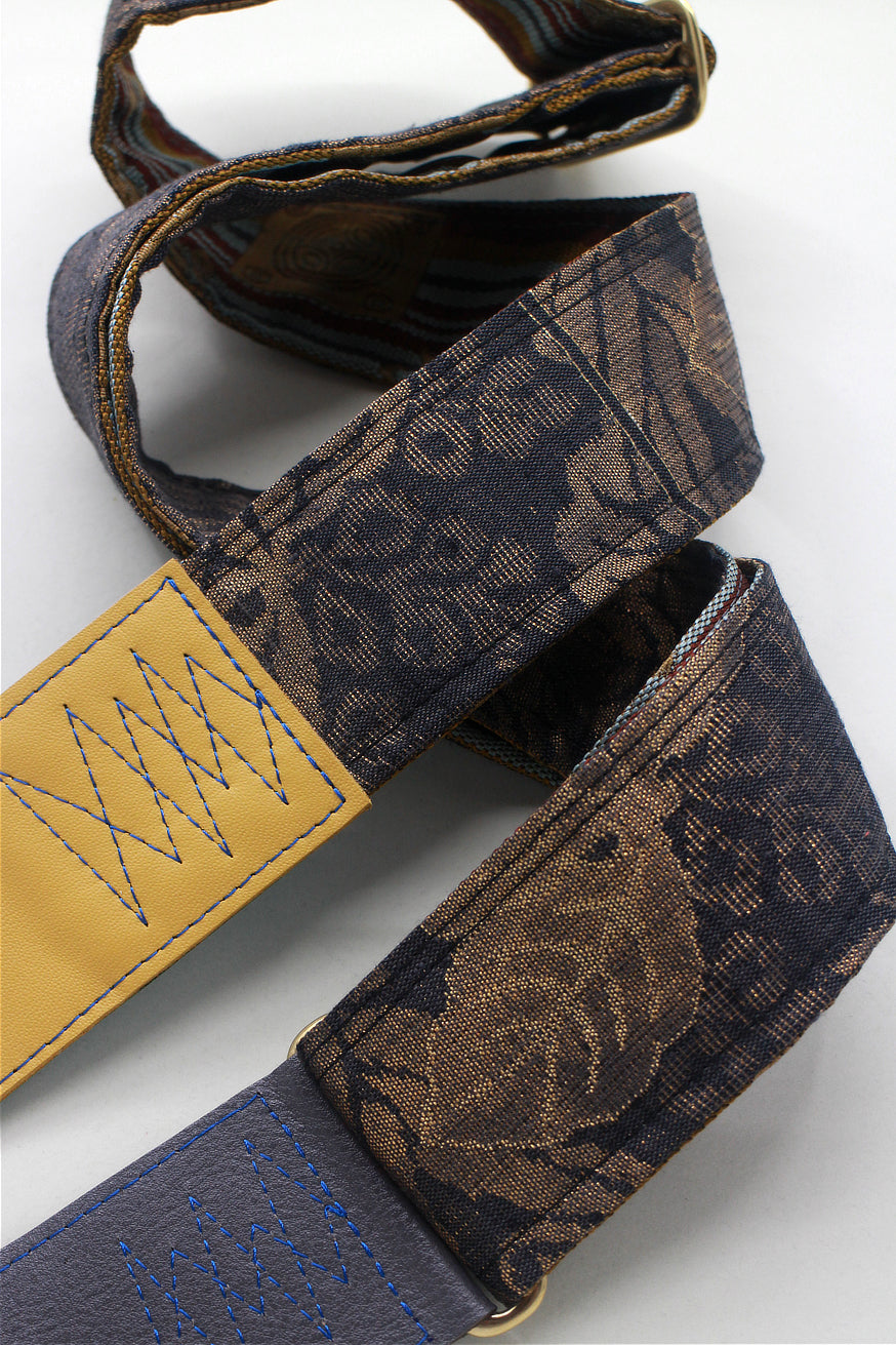 Unique and beautiful guitar strap [SC724723] - hand made in Japan from recycled silk woven kimono obi, leather and brass