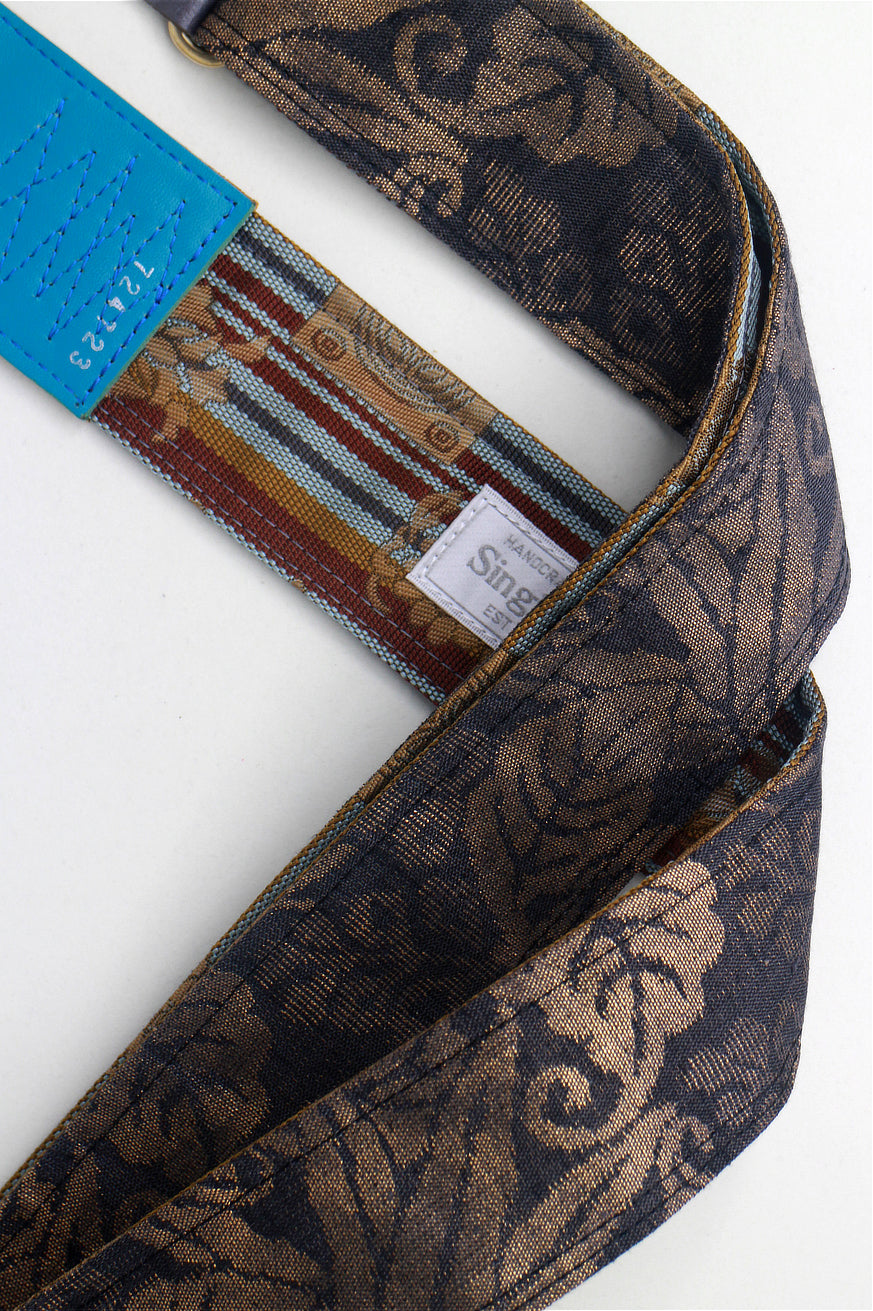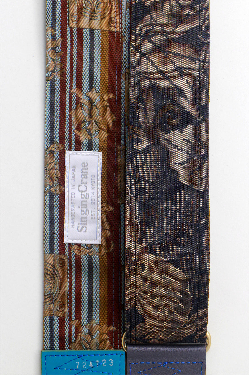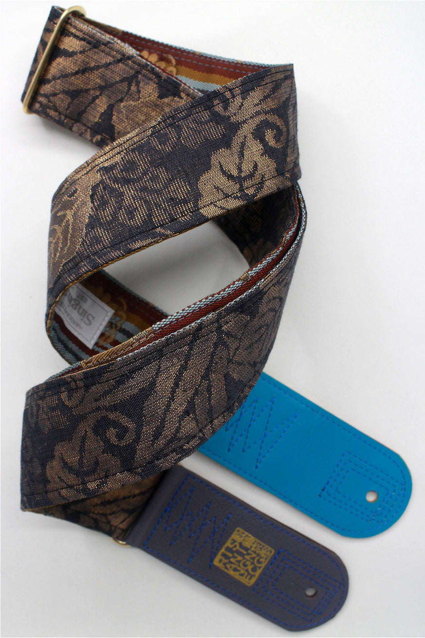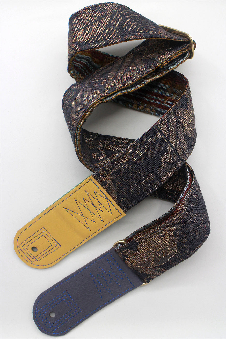Unique and beautiful guitar strap [SC724723] - hand made in Japan from recycled silk woven kimono obi, leather and brass