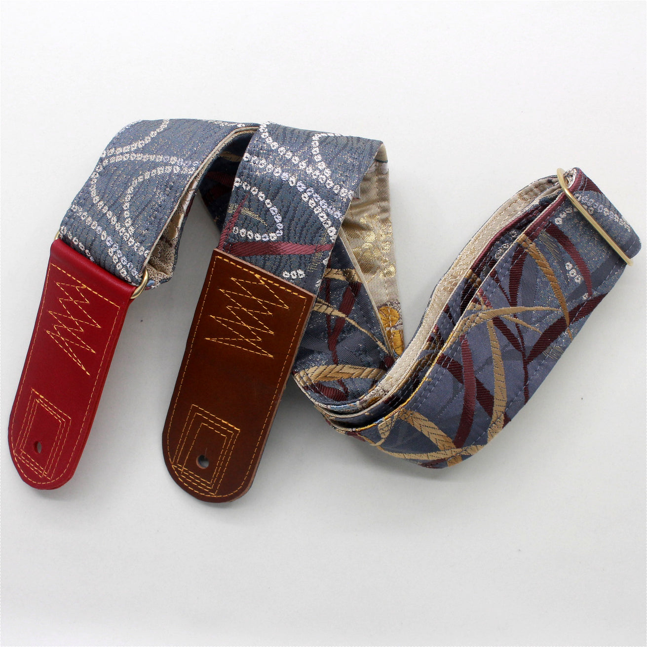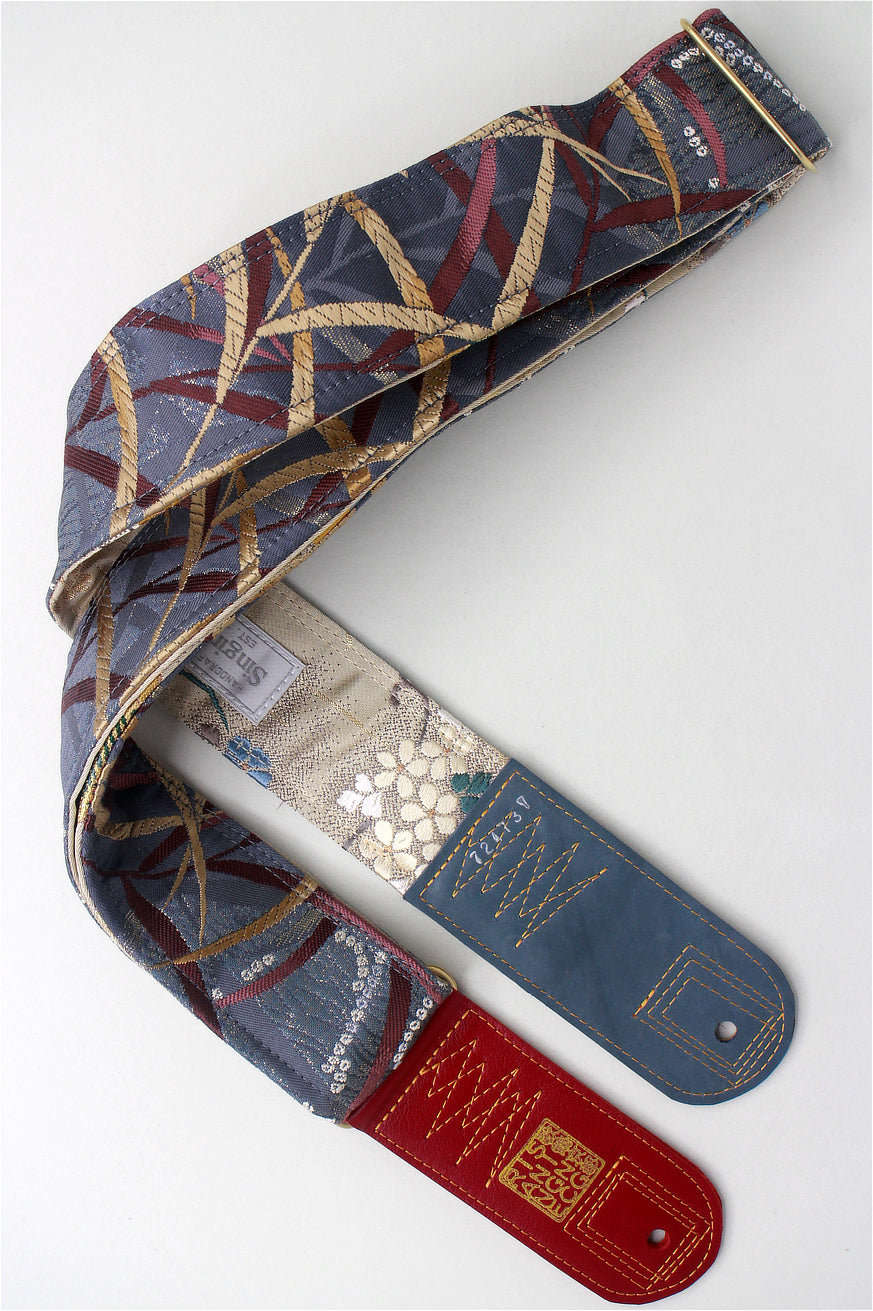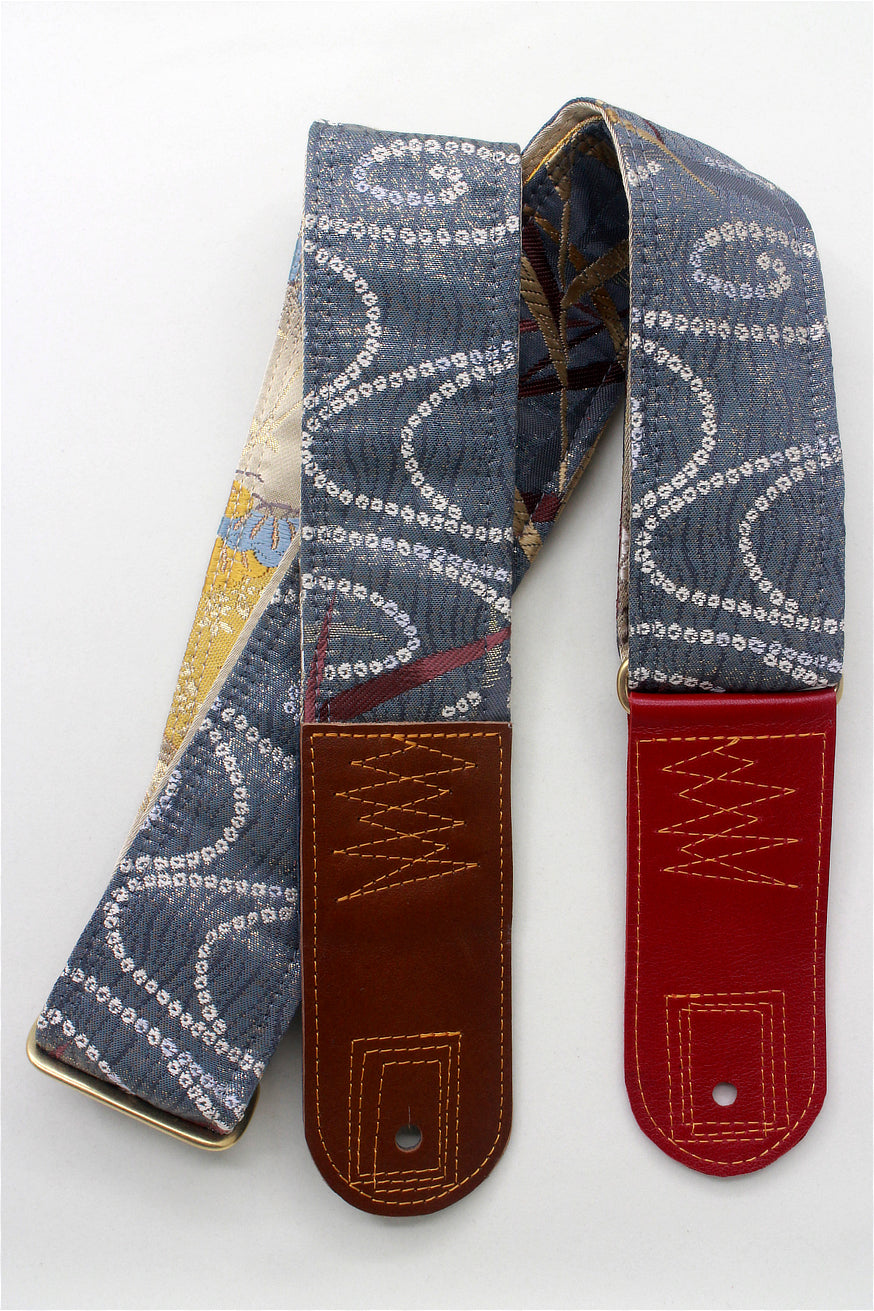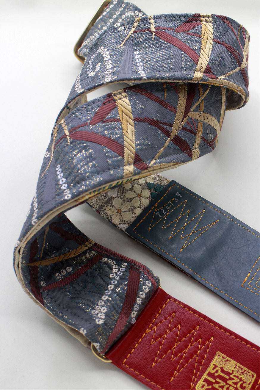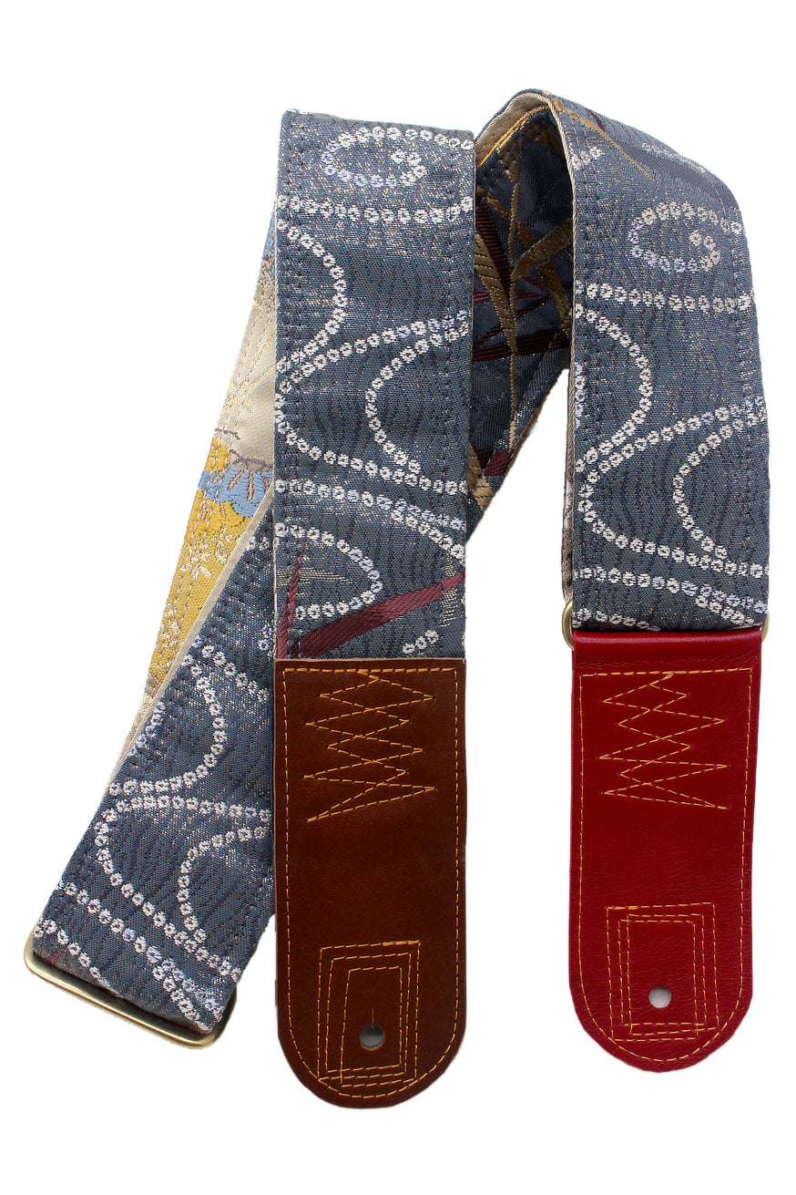Unique and beautiful guitar strap [SC724731] - hand made in Japan from recycled silk woven kimono obi, leather and brass