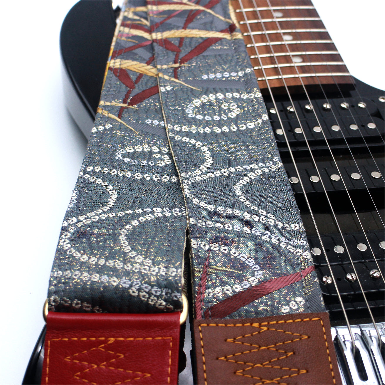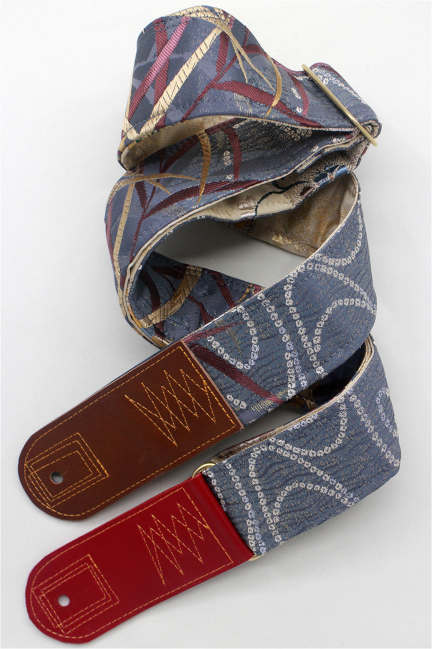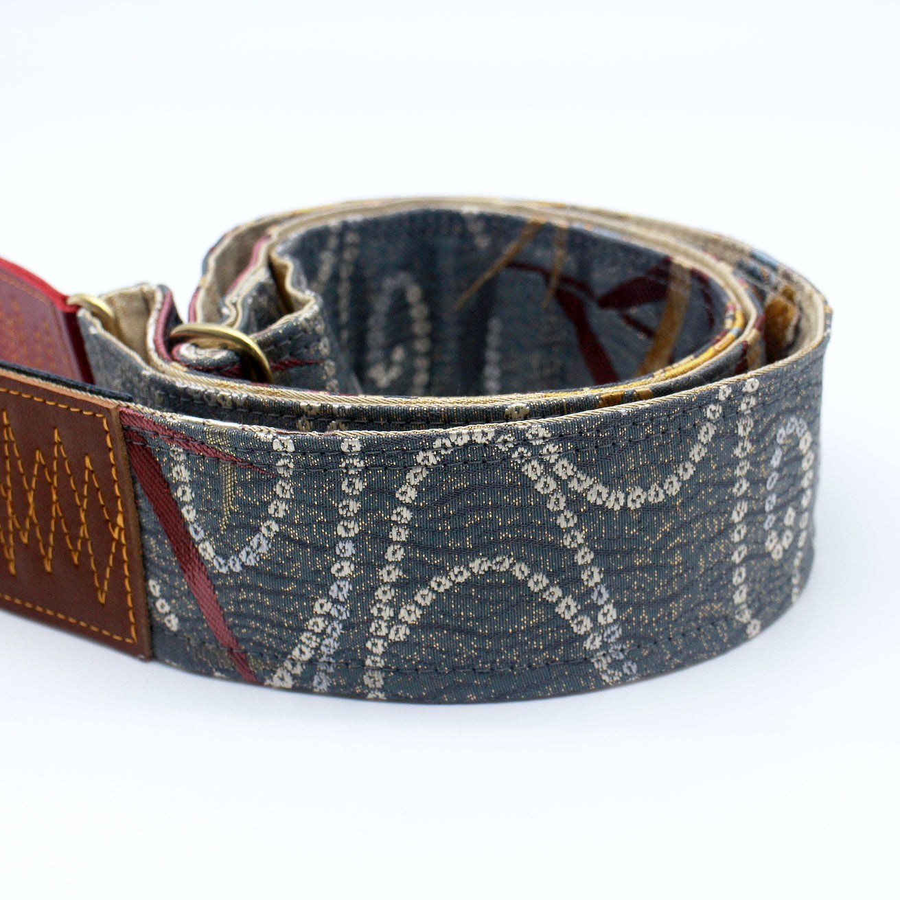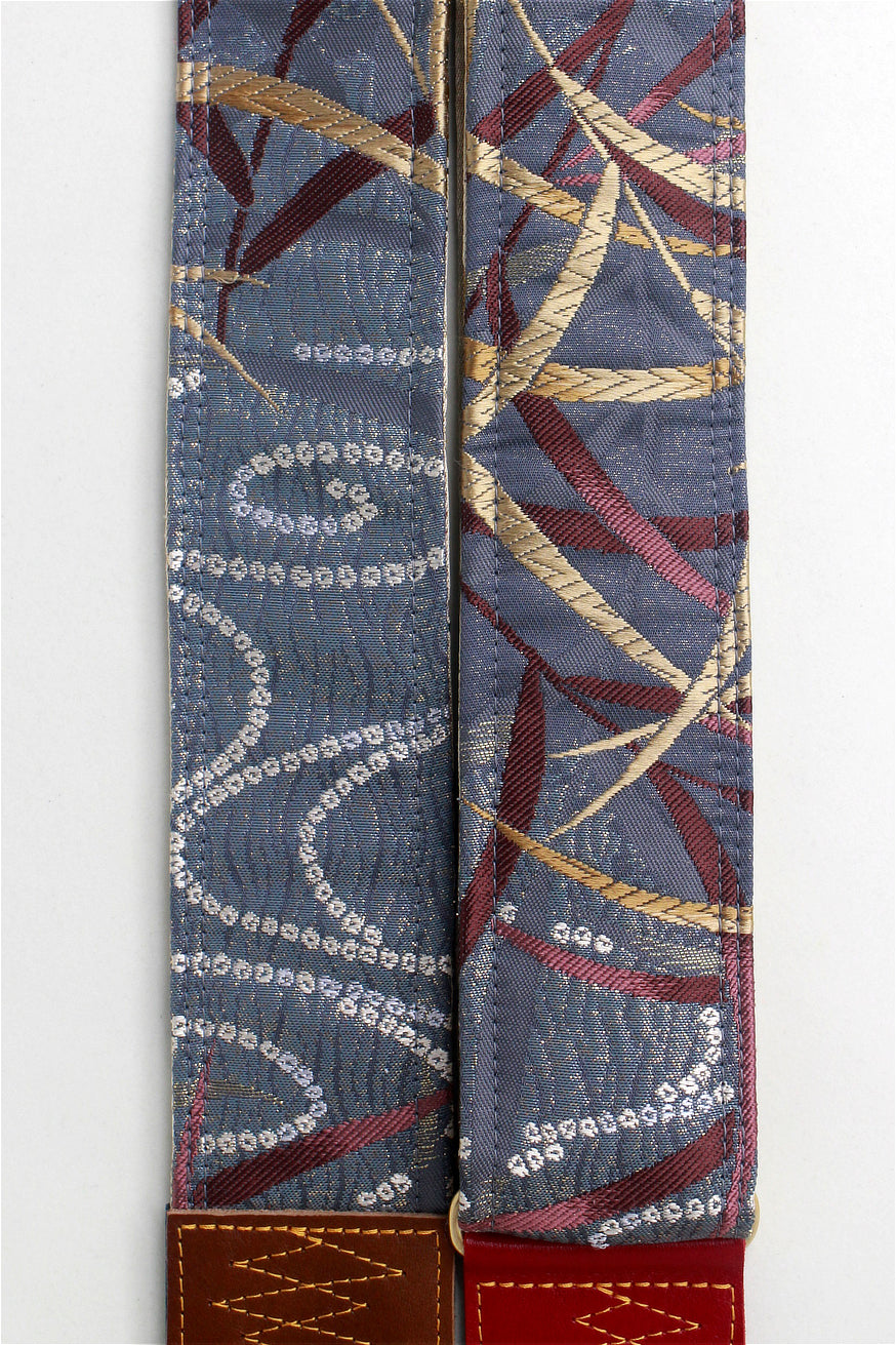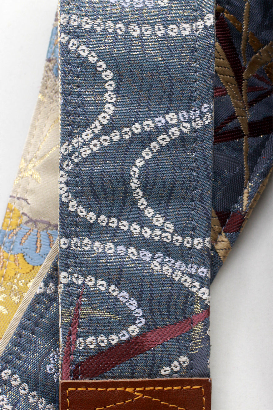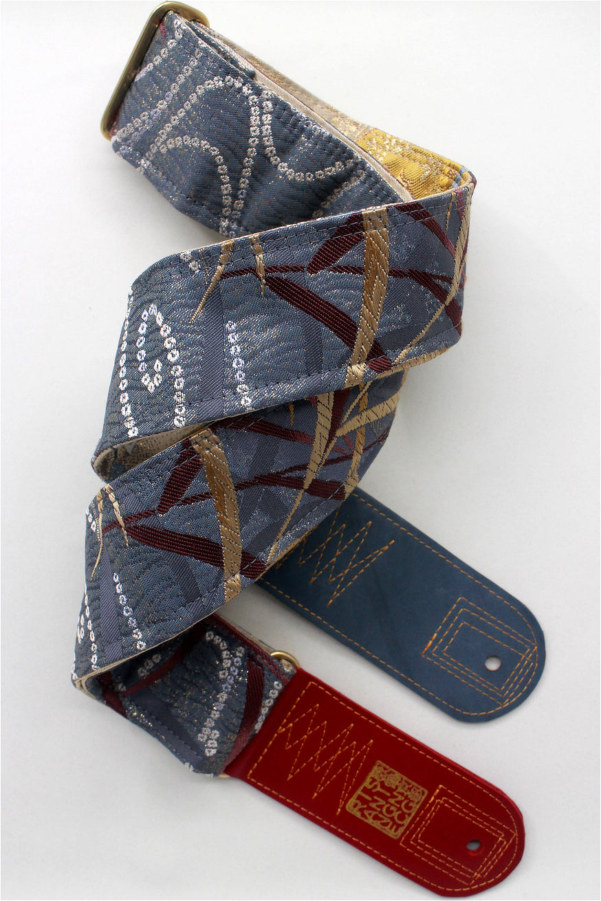 Unique and beautiful guitar strap [SC724731] - hand made in Japan from recycled silk woven kimono obi, leather and brass