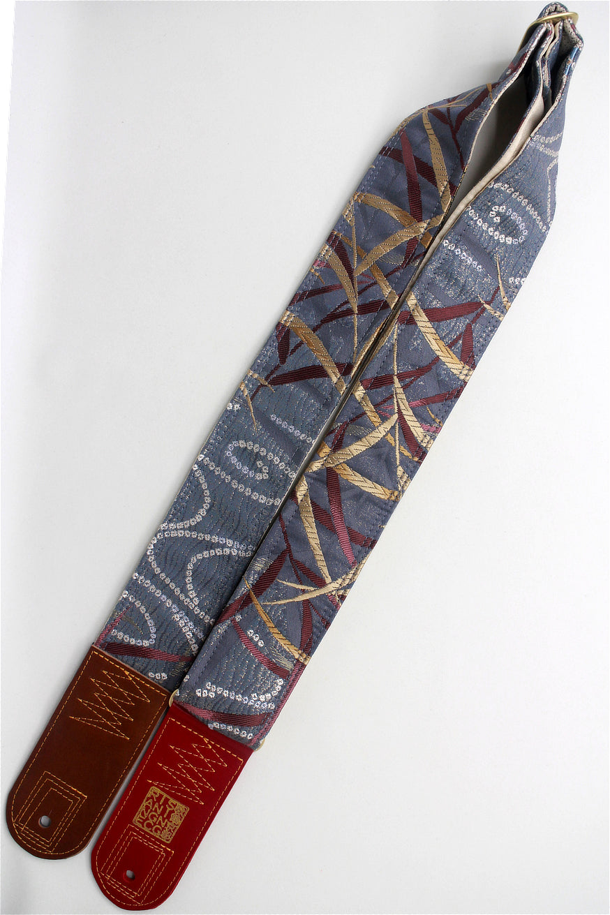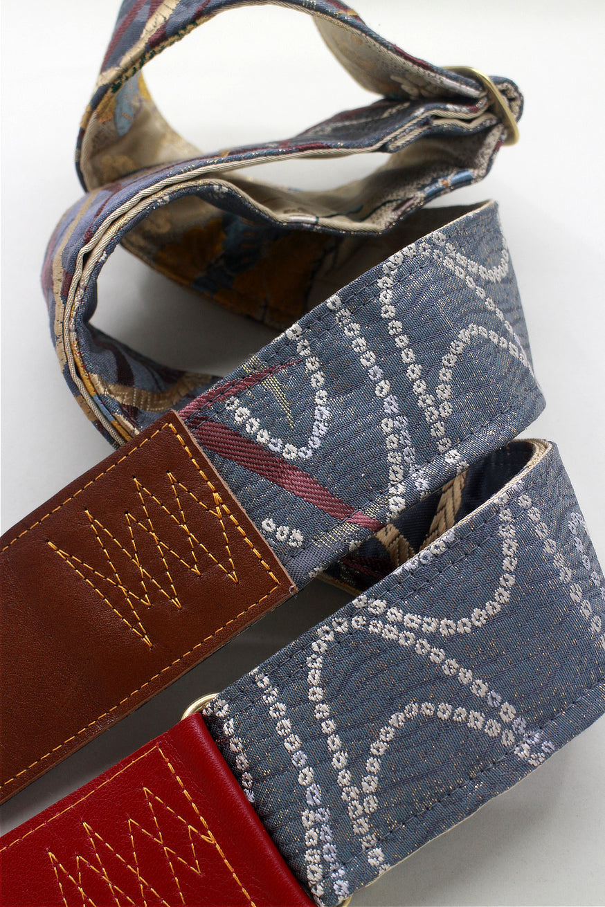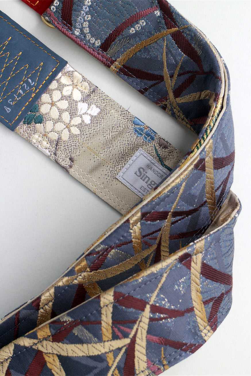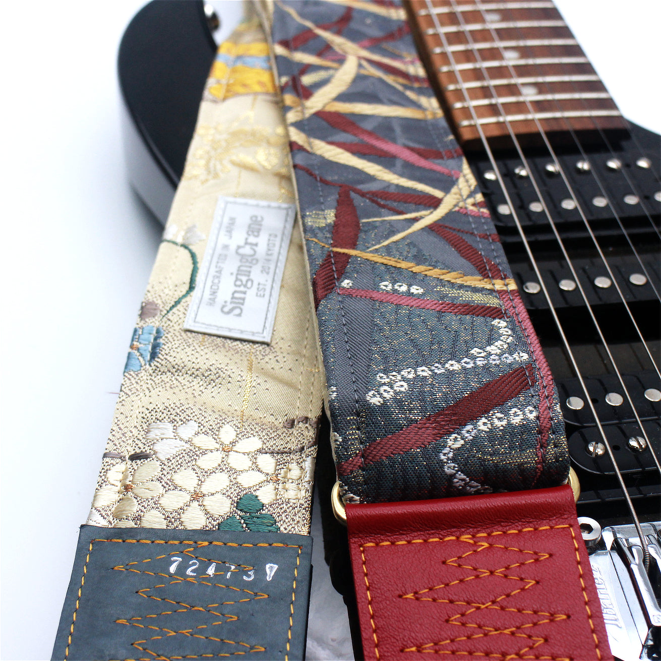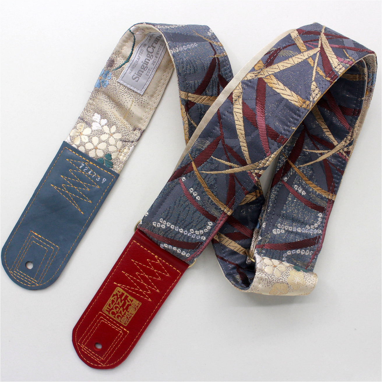 Unique and beautiful guitar strap [SC724731] - hand made in Japan from recycled silk woven kimono obi, leather and brass