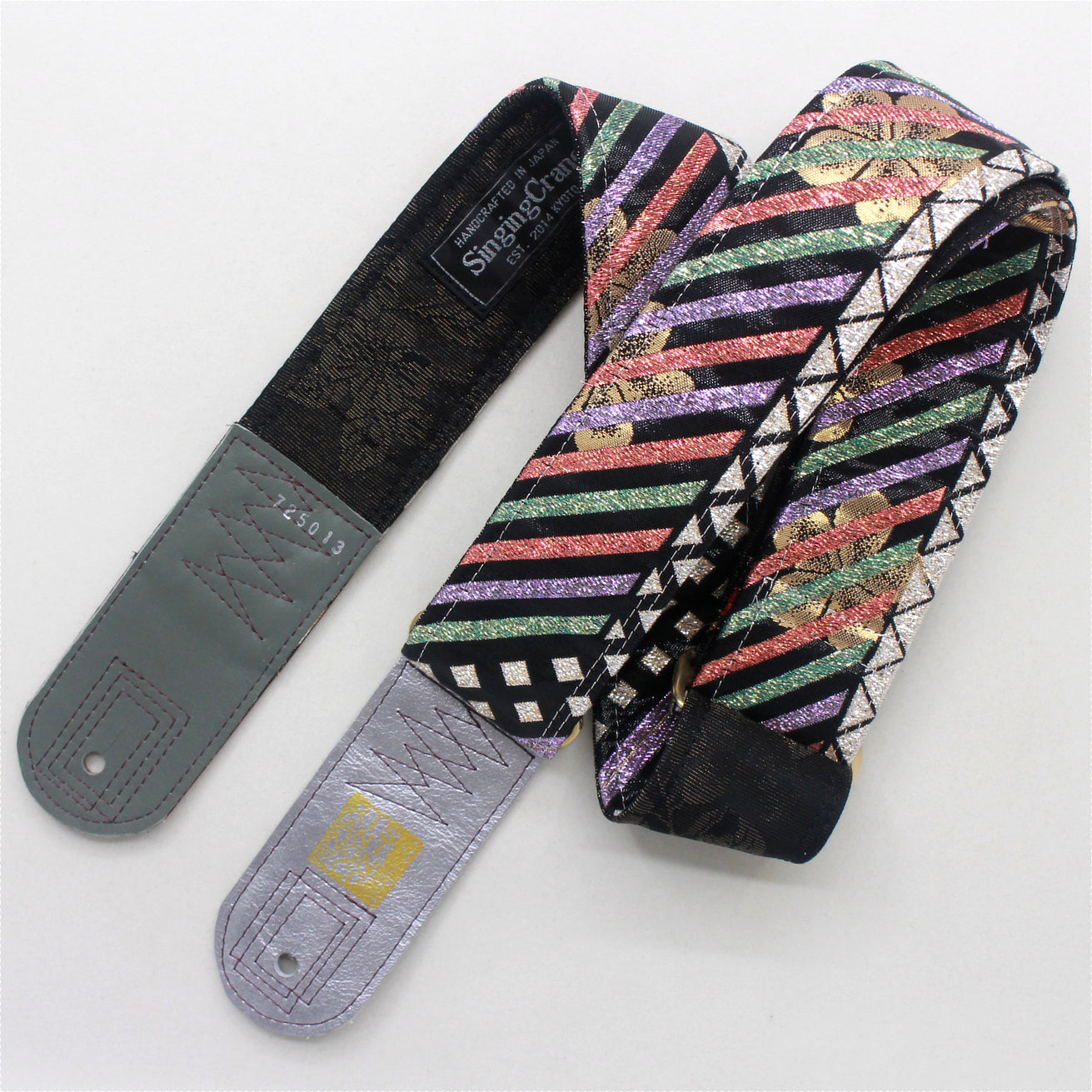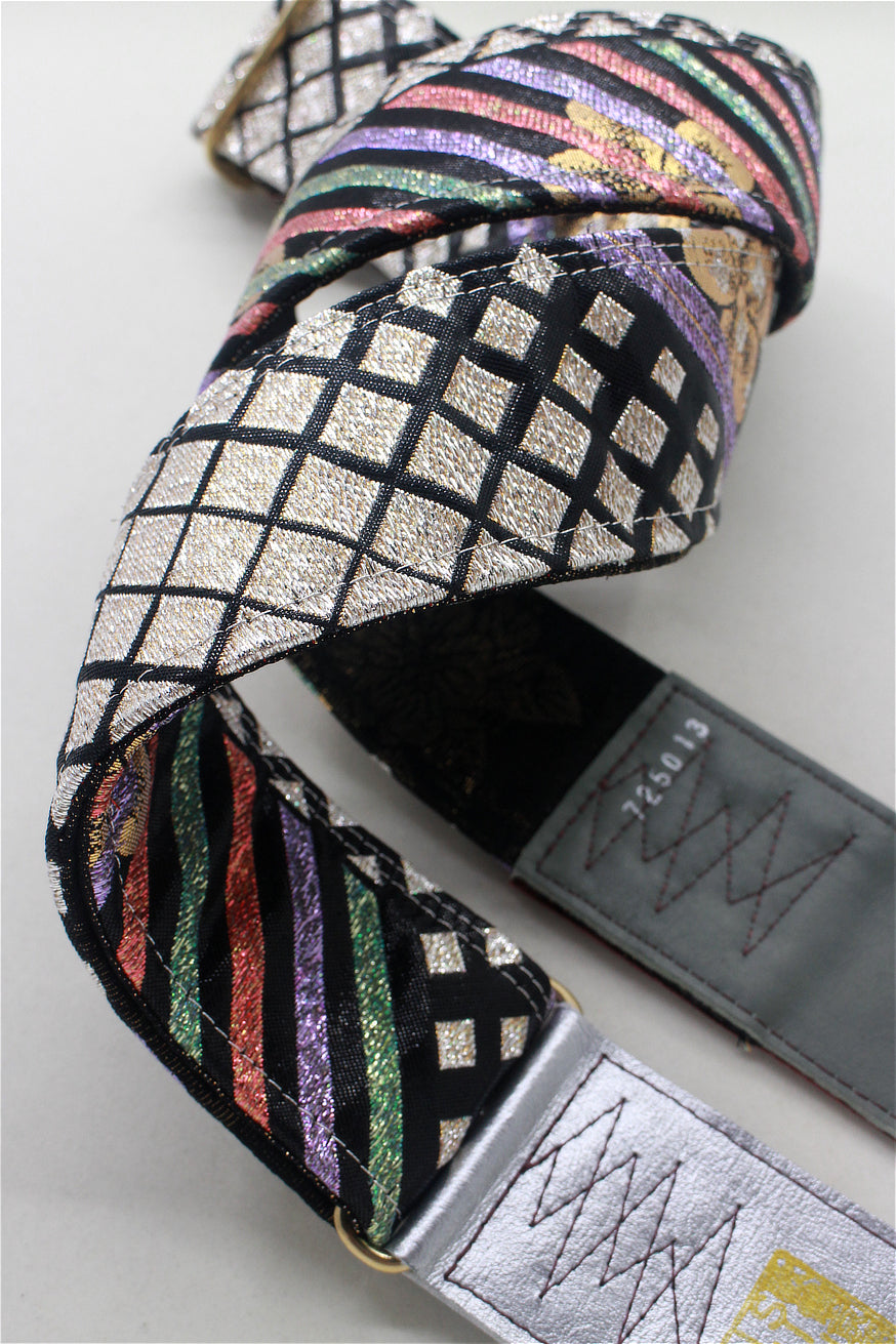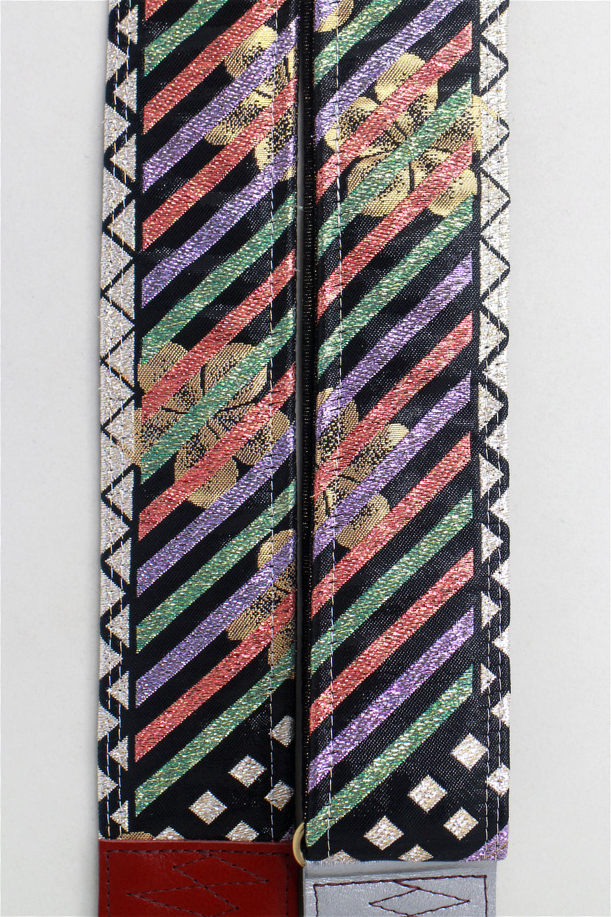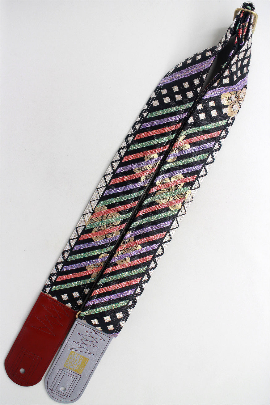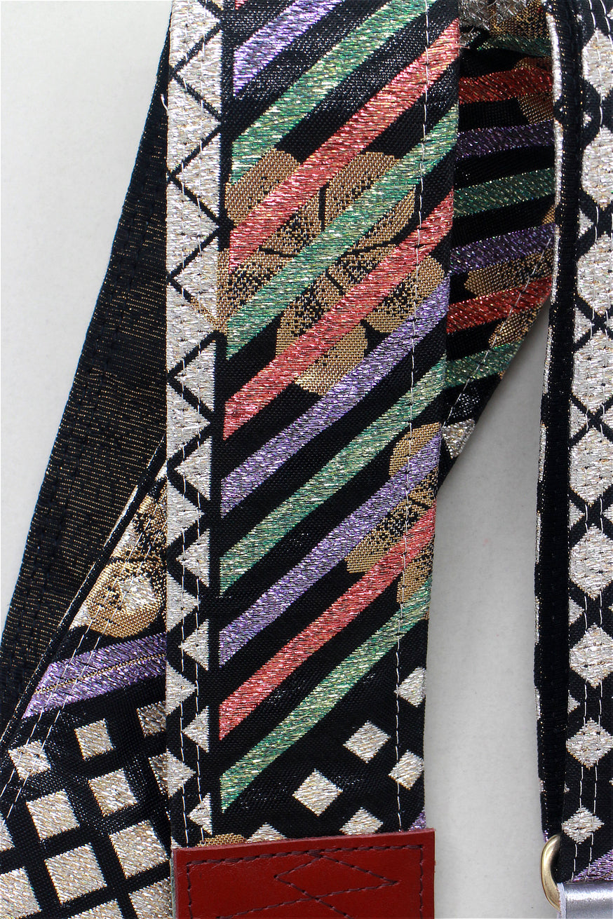 Unique and beautiful guitar strap [SC725013] - hand made in Japan from recycled silk woven kimono obi, leather and brass