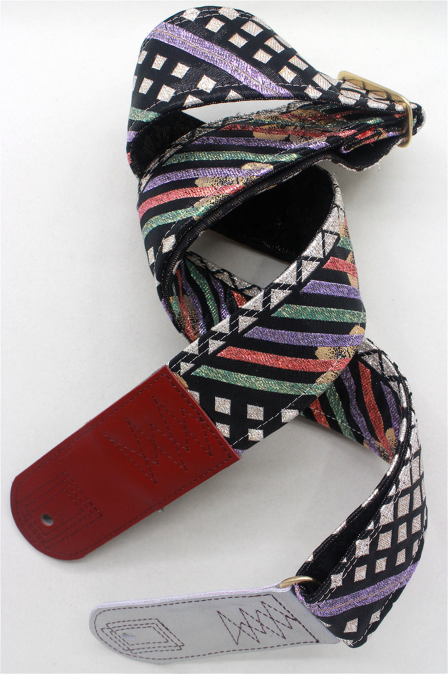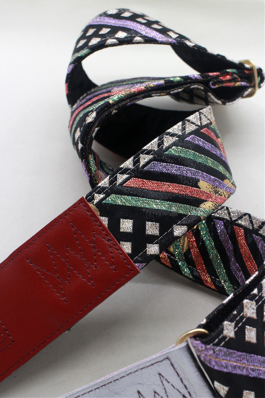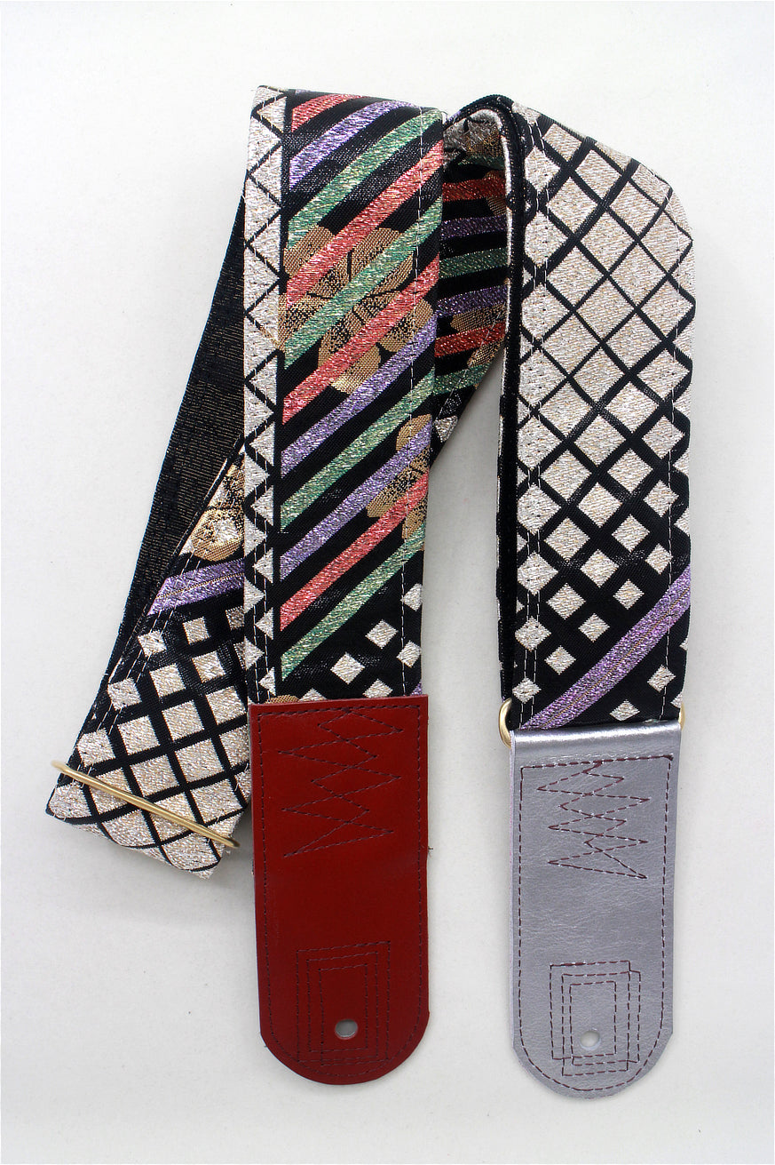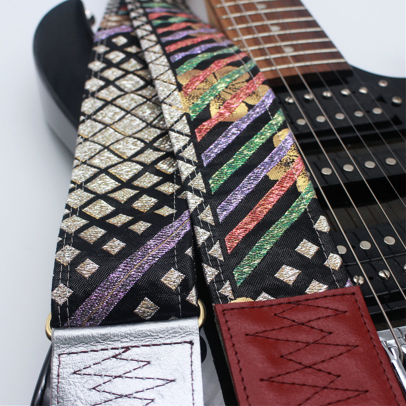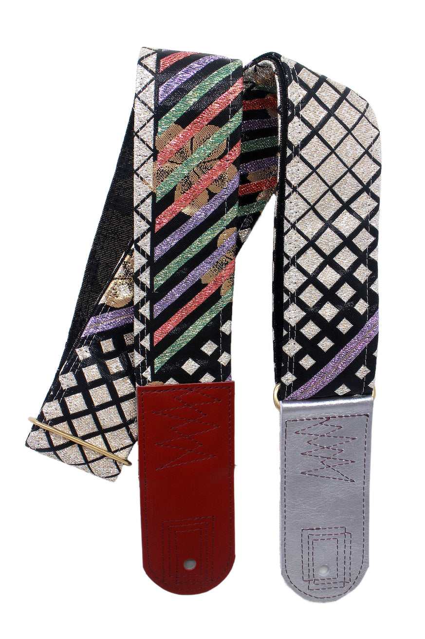Unique and beautiful guitar strap [SC725013] - hand made in Japan from recycled silk woven kimono obi, leather and brass