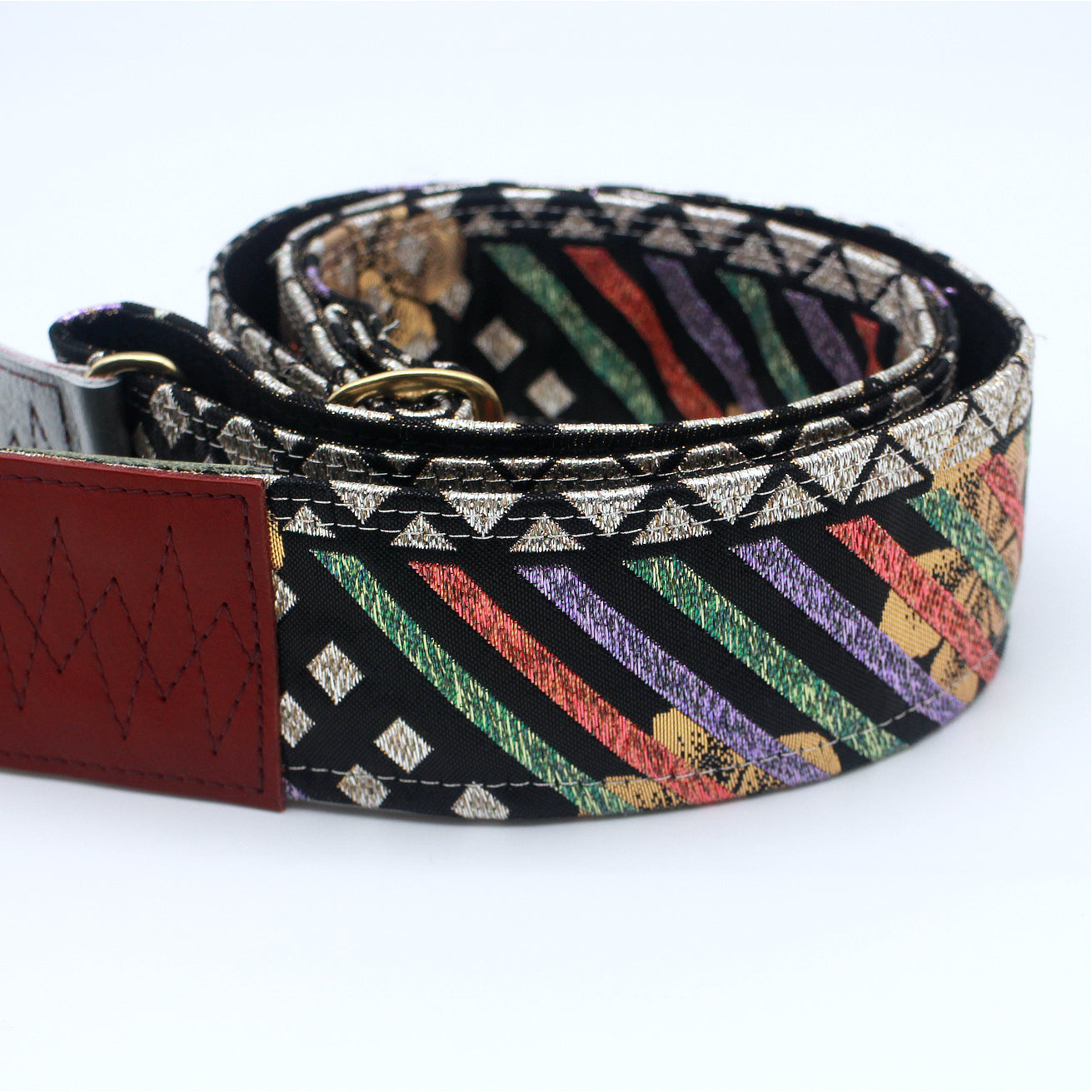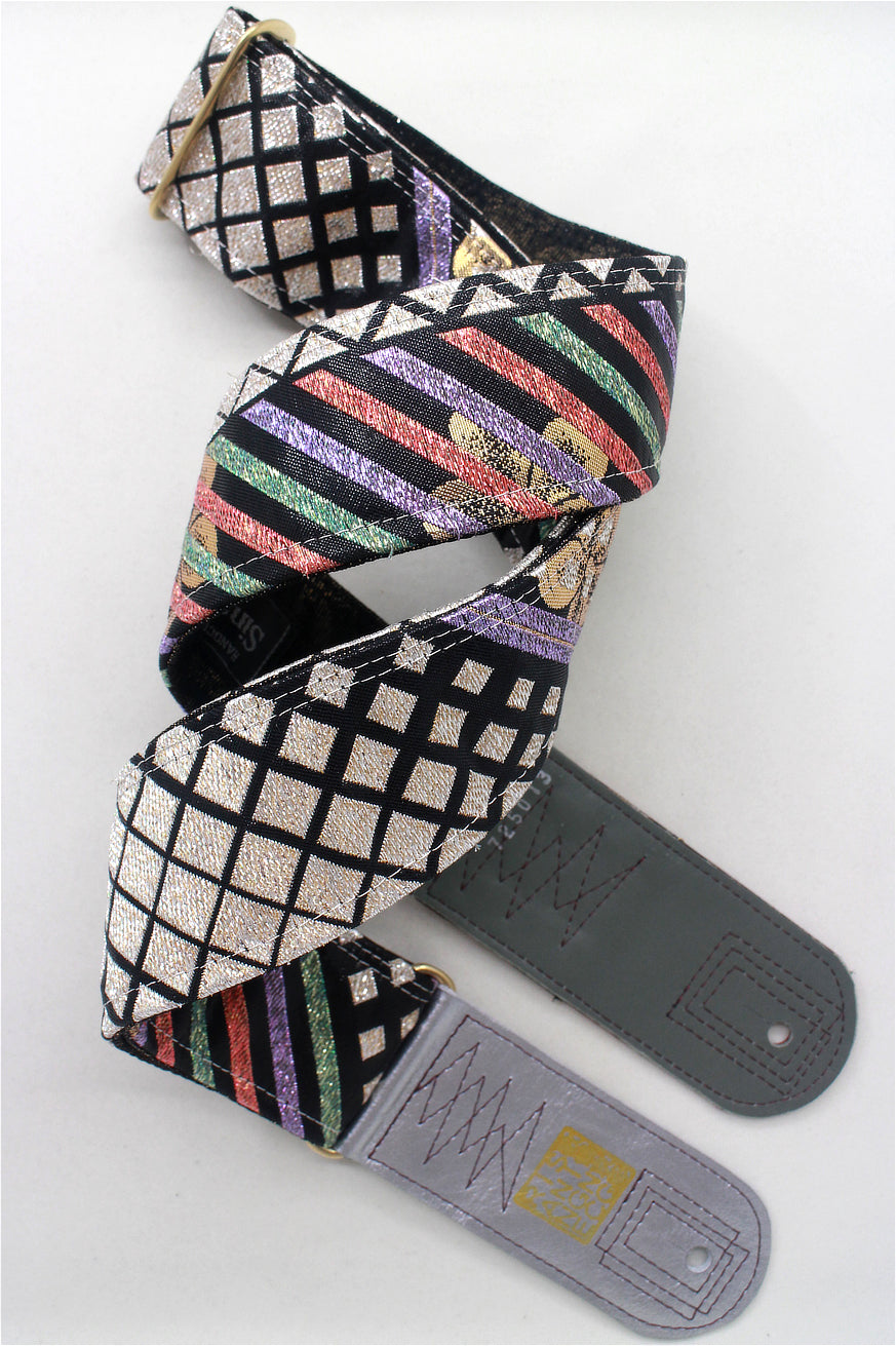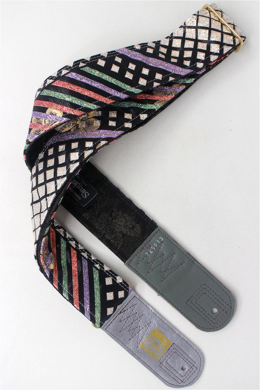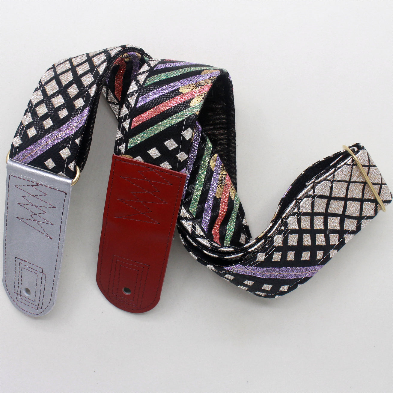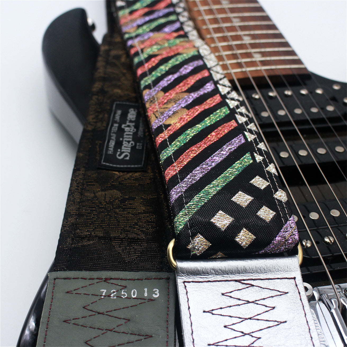Unique and beautiful guitar strap [SC725013] - hand made in Japan from recycled silk woven kimono obi, leather and brass