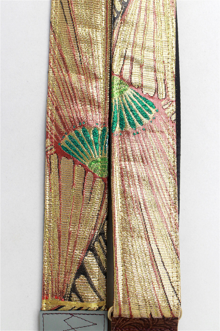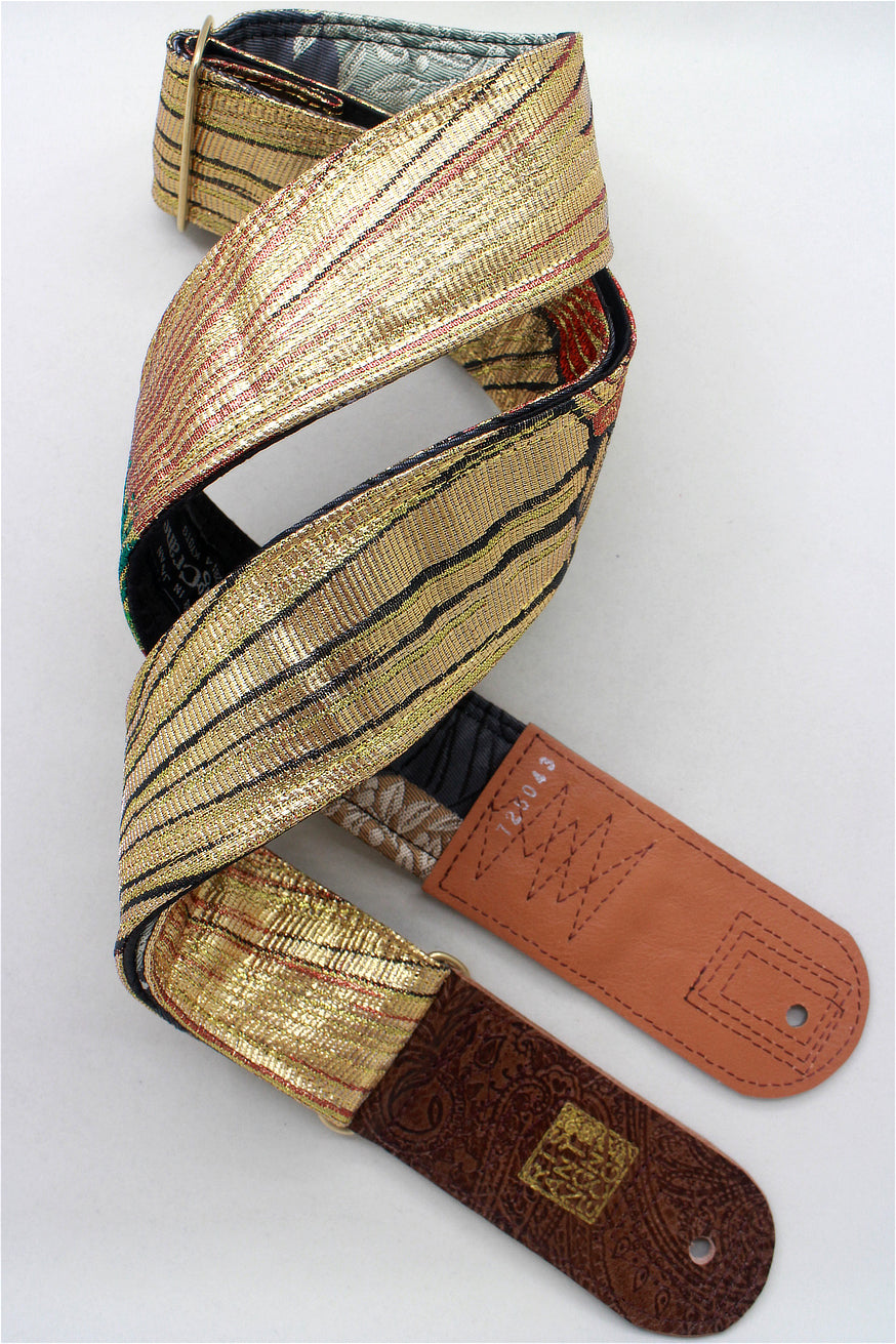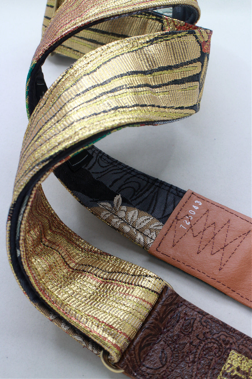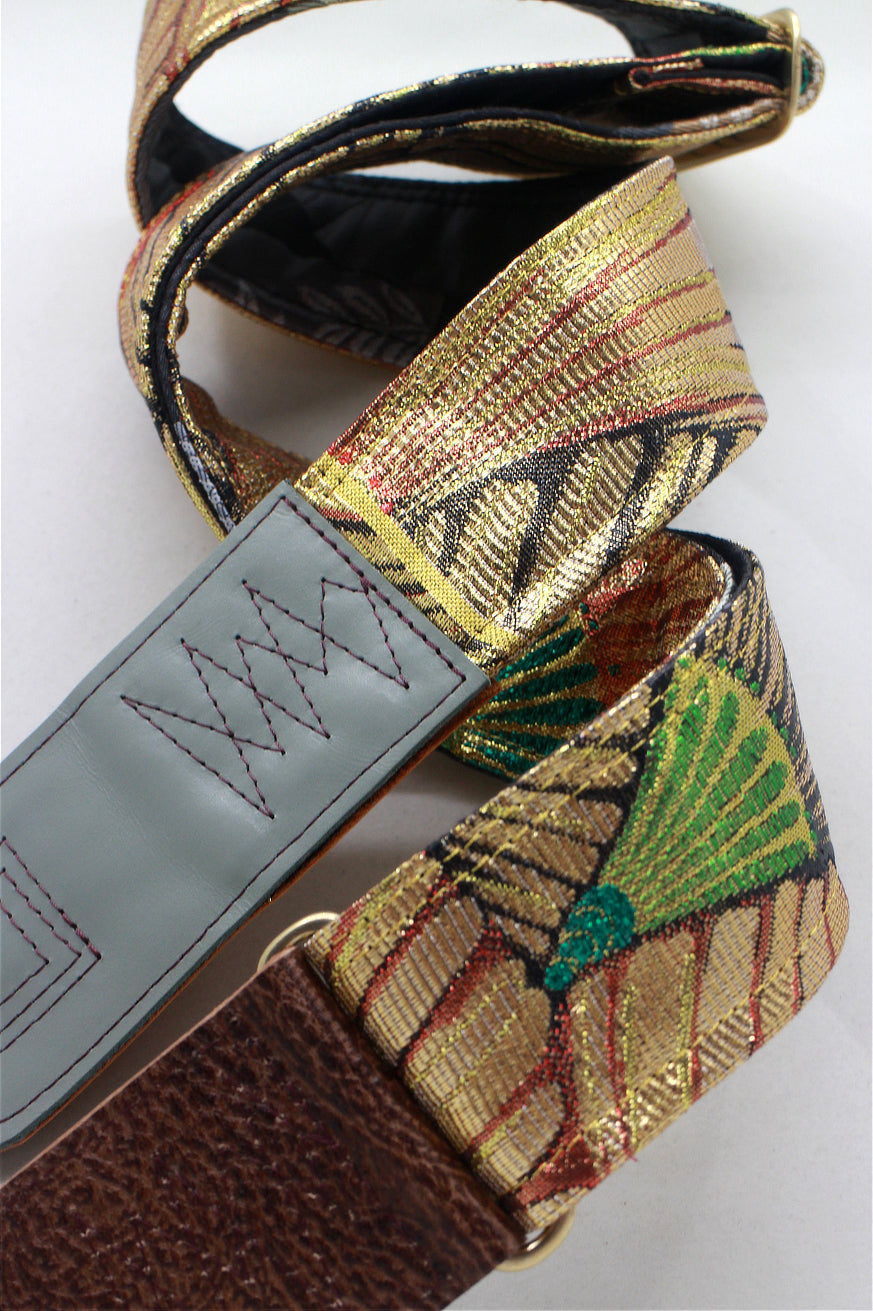 Unique and beautiful guitar strap [SC725043] - hand made in Japan from recycled silk woven kimono obi, leather and brass