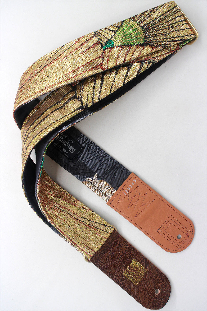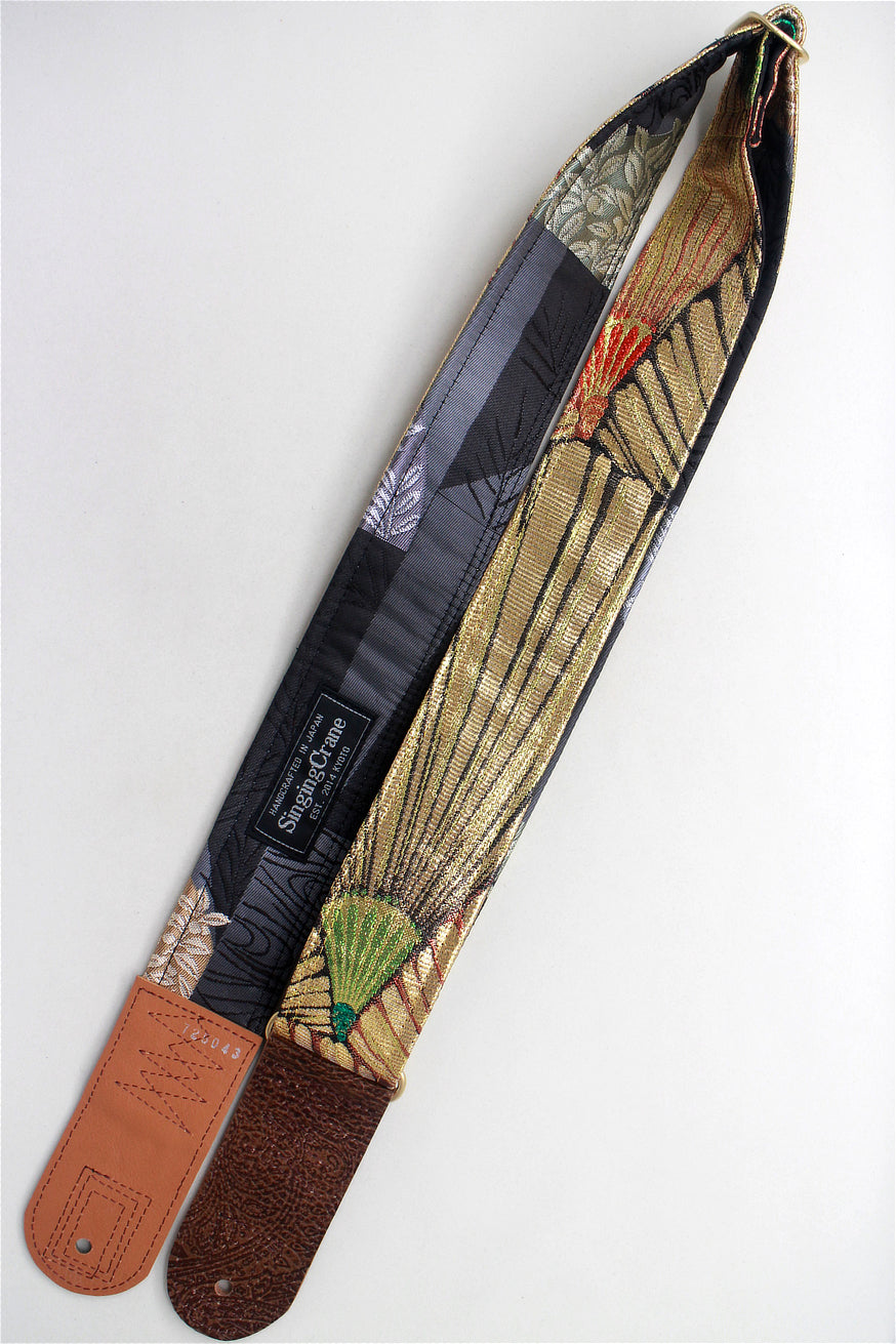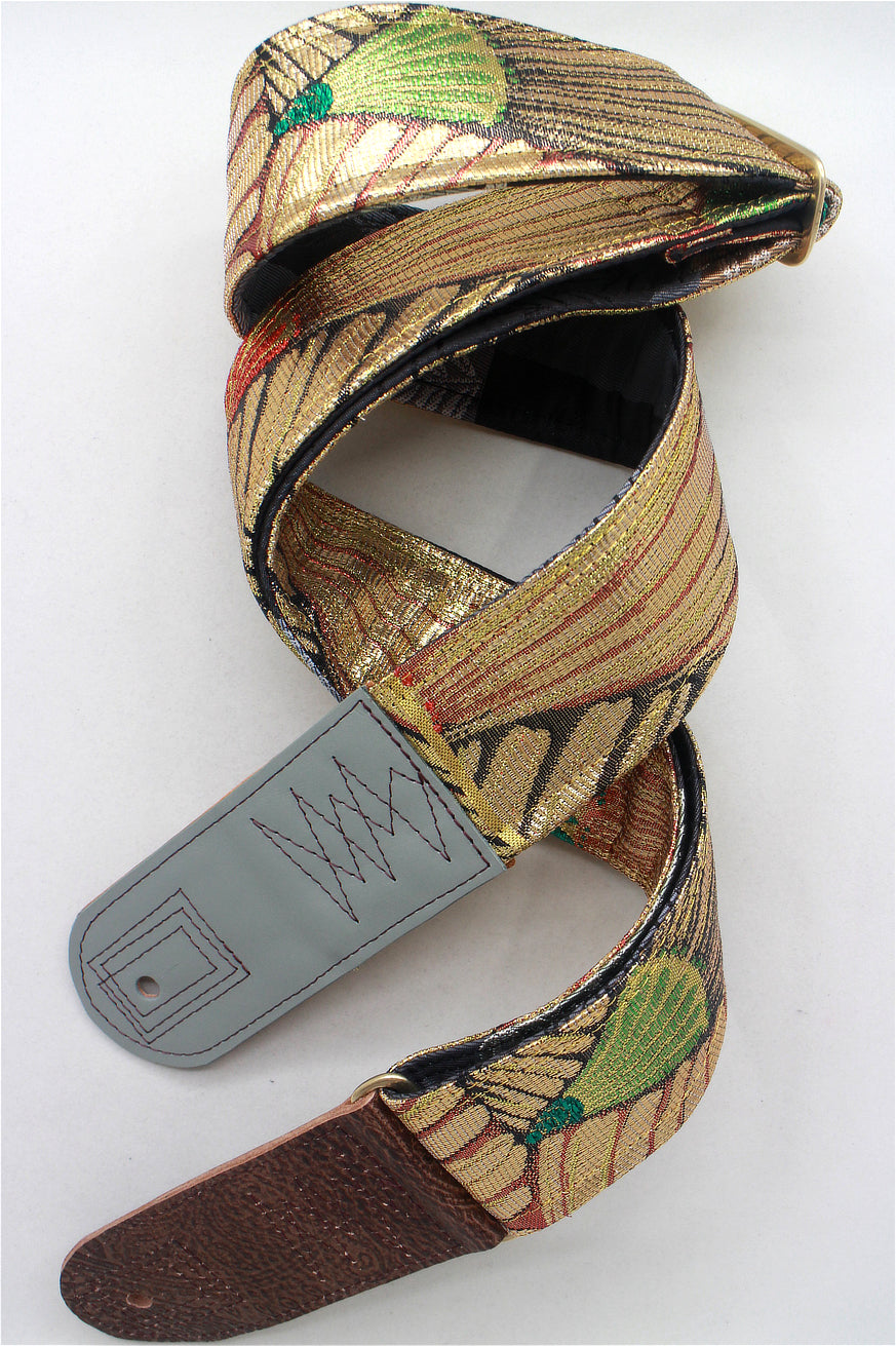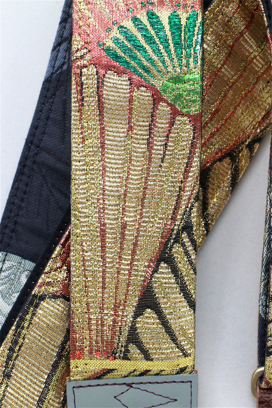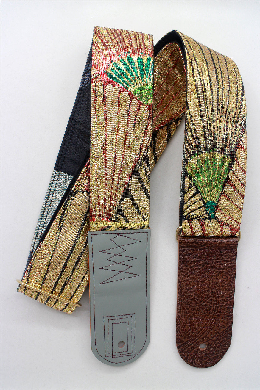 Unique and beautiful guitar strap [SC725043] - hand made in Japan from recycled silk woven kimono obi, leather and brass