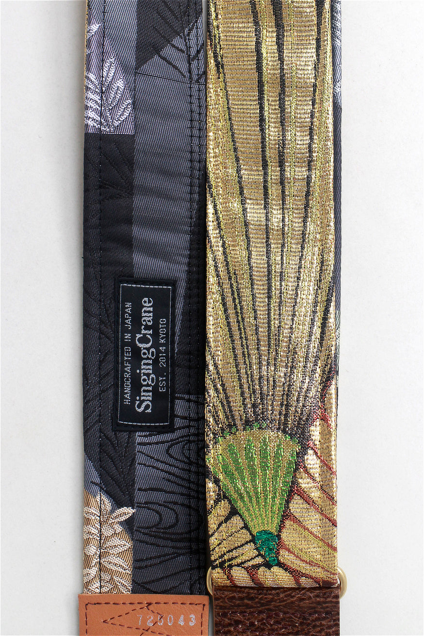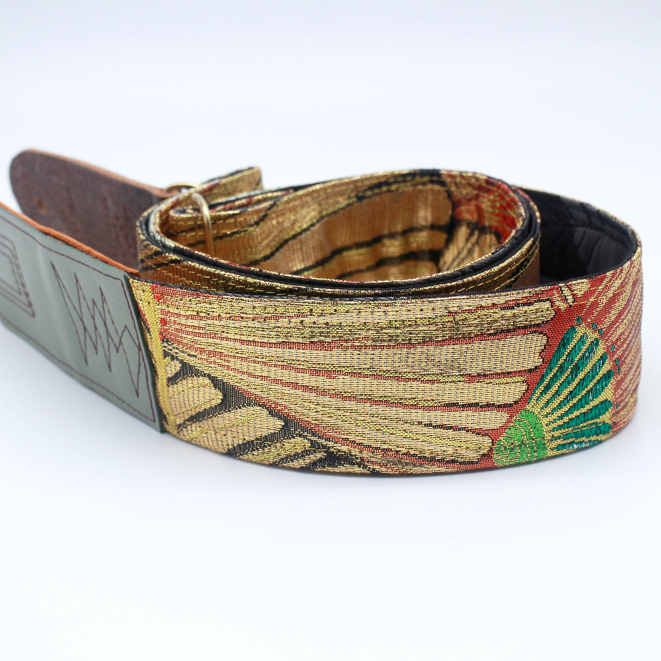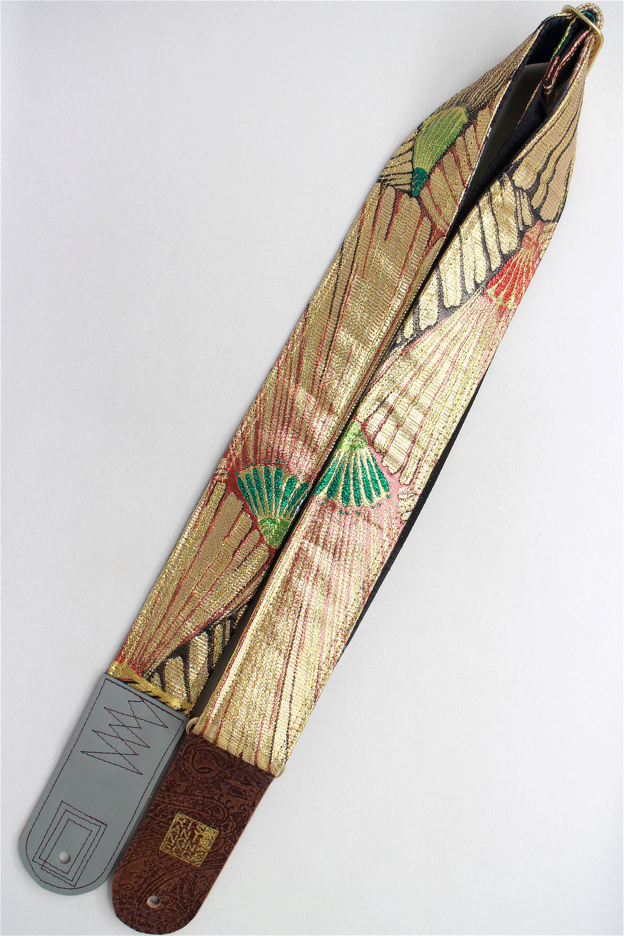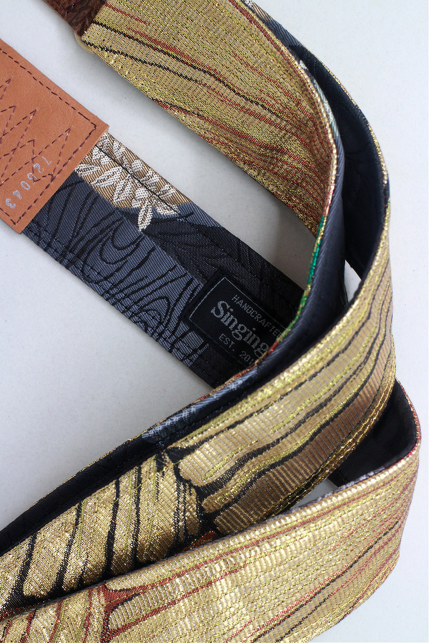 Unique and beautiful guitar strap [SC725043] - hand made in Japan from recycled silk woven kimono obi, leather and brass
