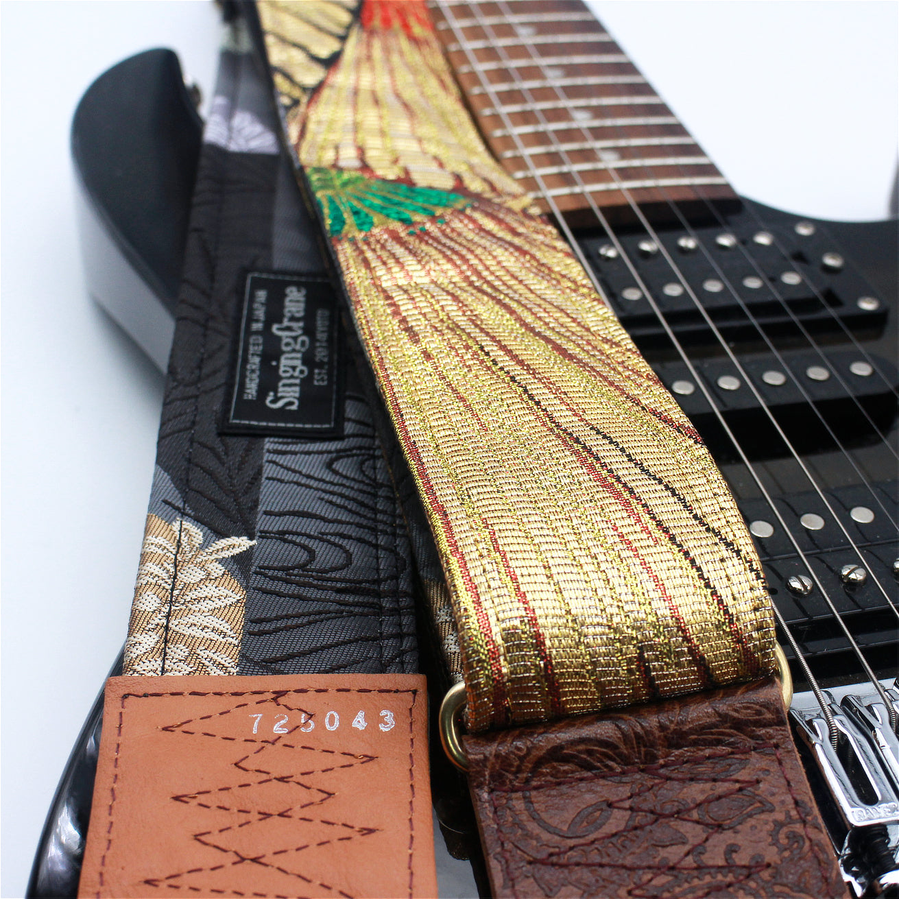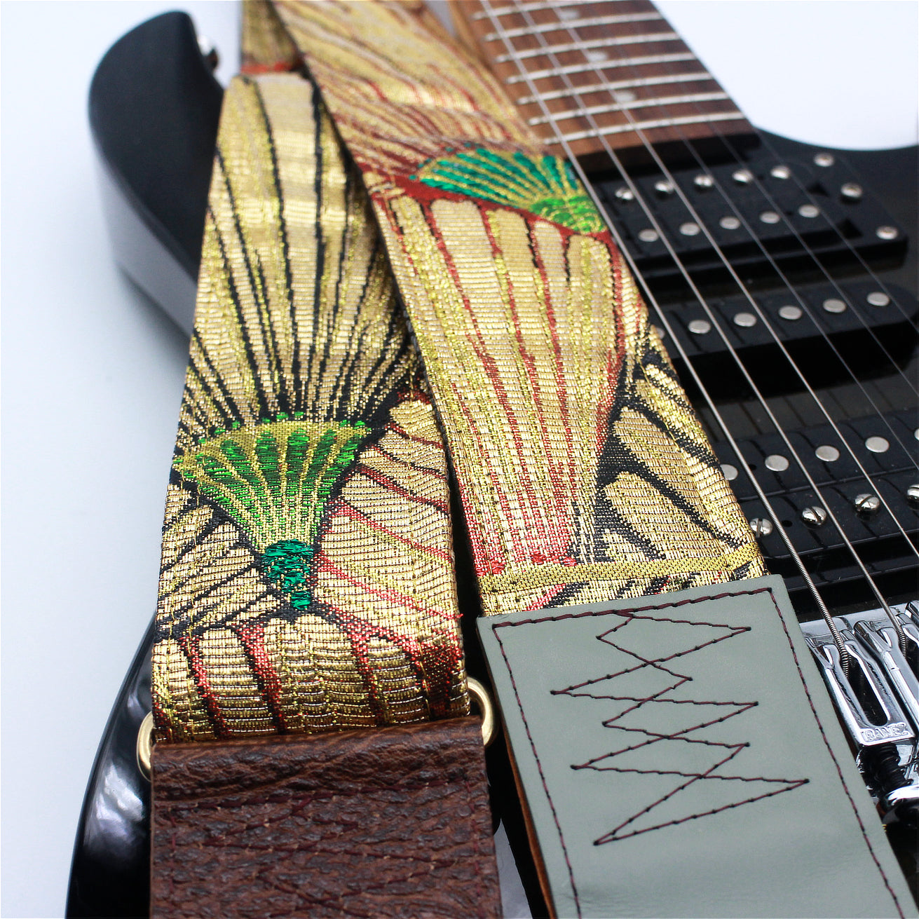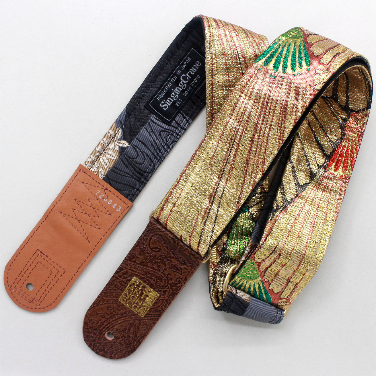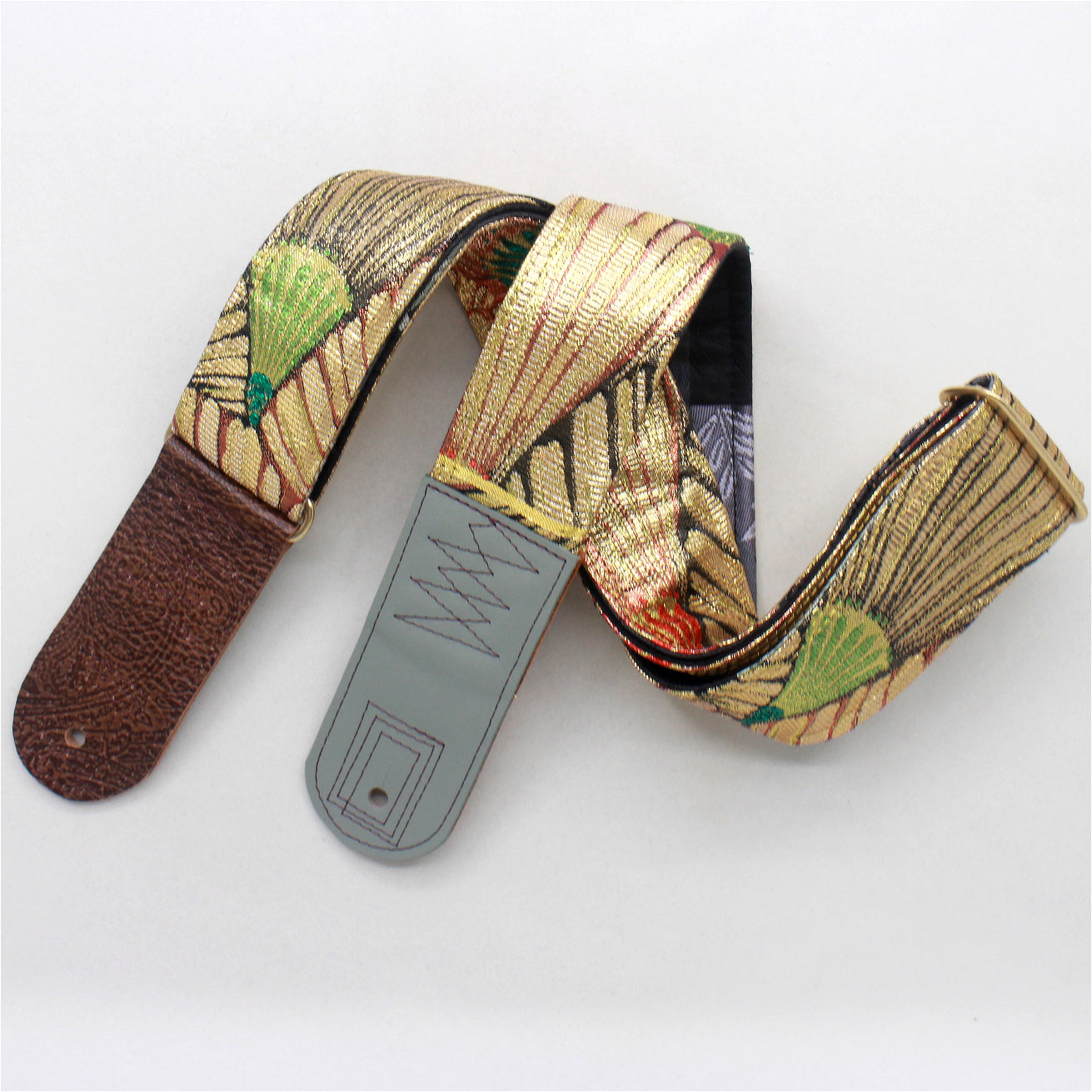 Unique and beautiful guitar strap [SC725043] - hand made in Japan from recycled silk woven kimono obi, leather and brass