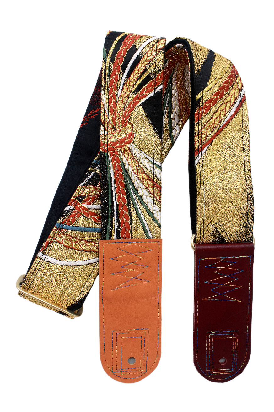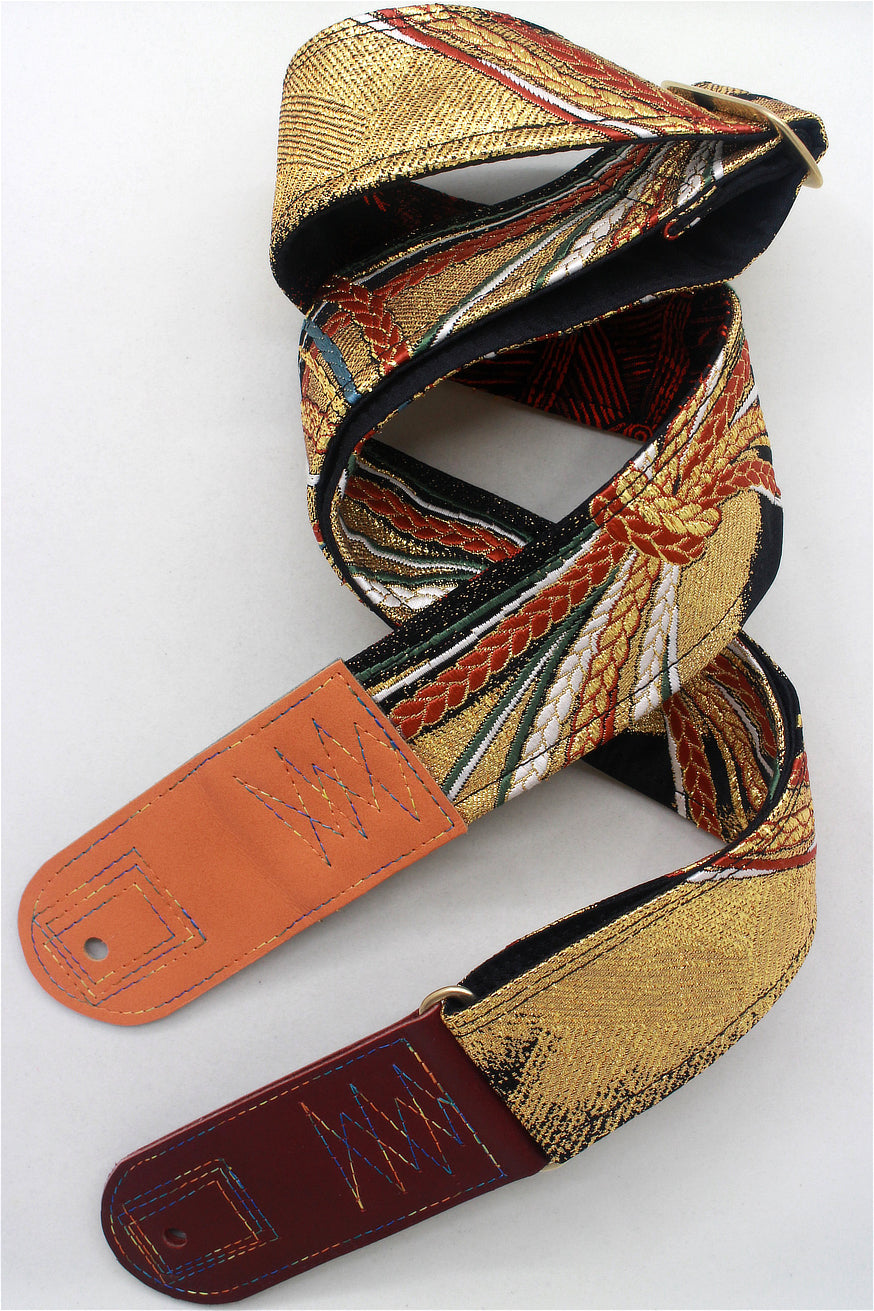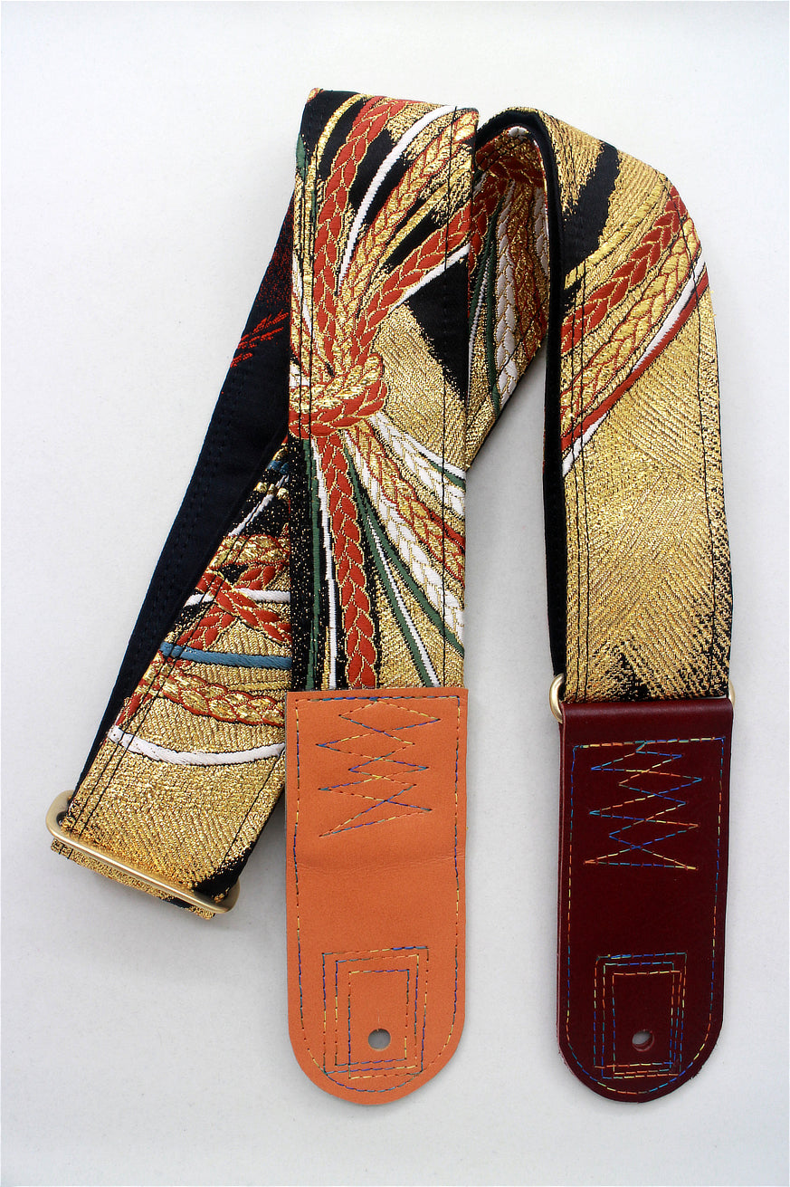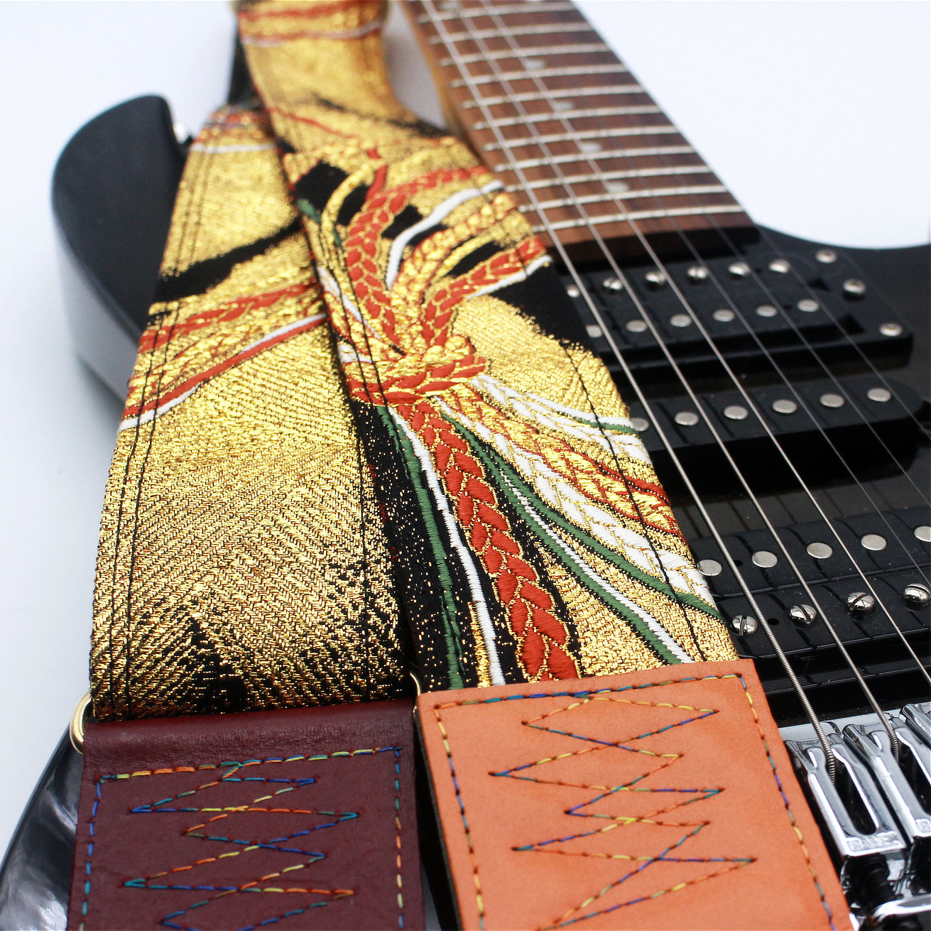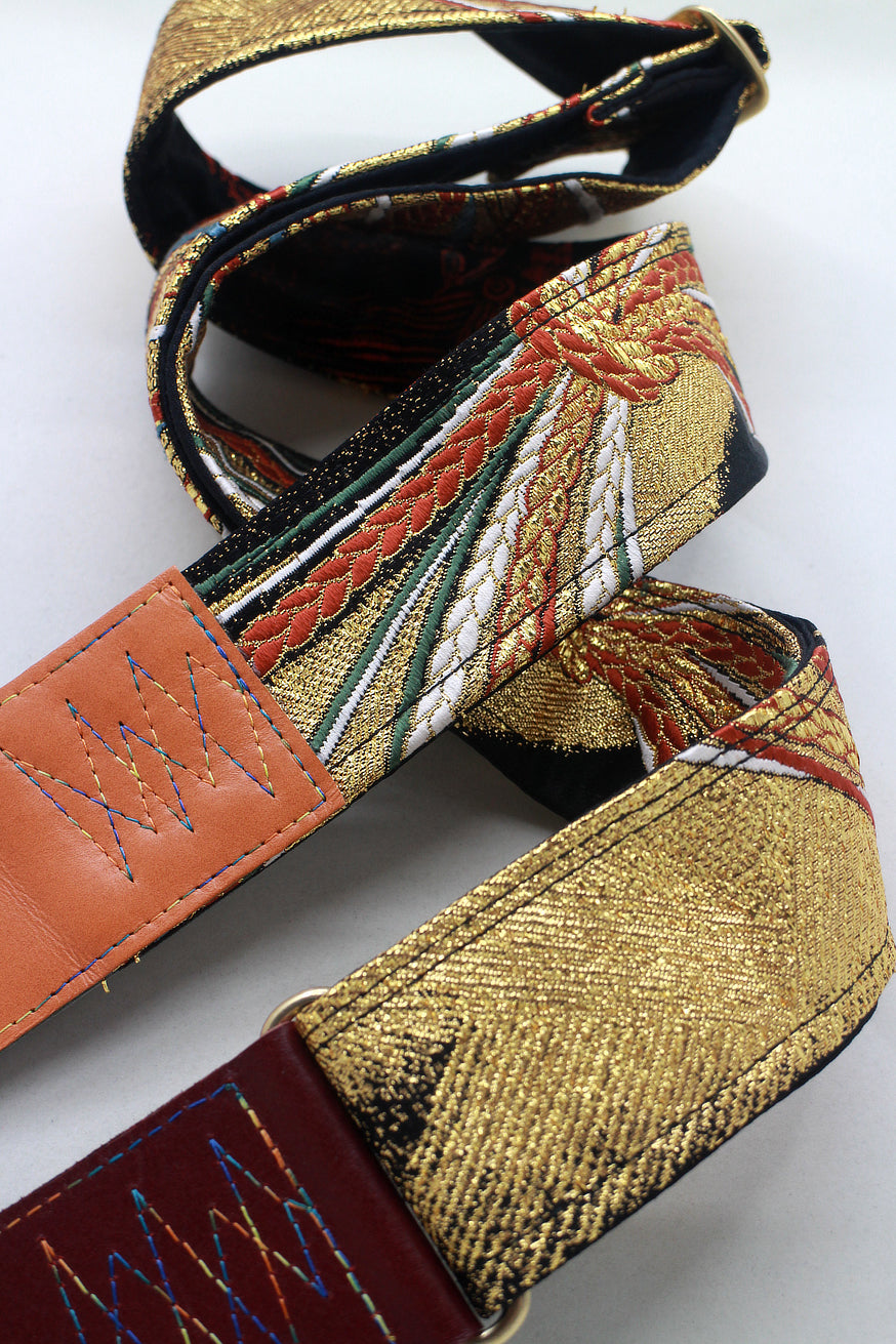 Unique and beautiful guitar strap [SC725052] - hand made in Japan from recycled silk woven kimono obi, leather and brass