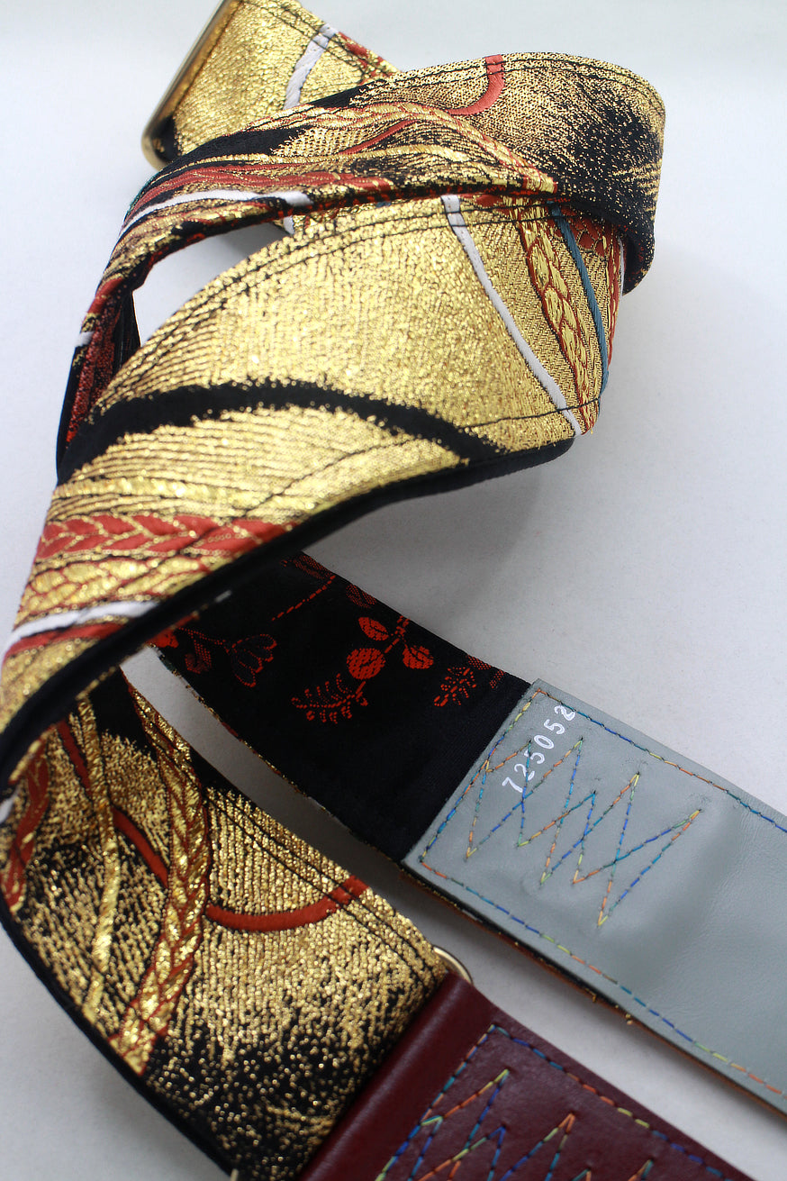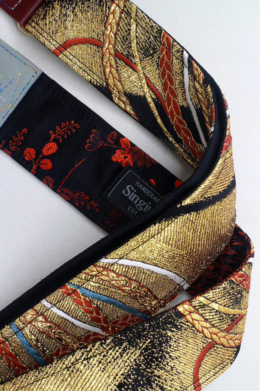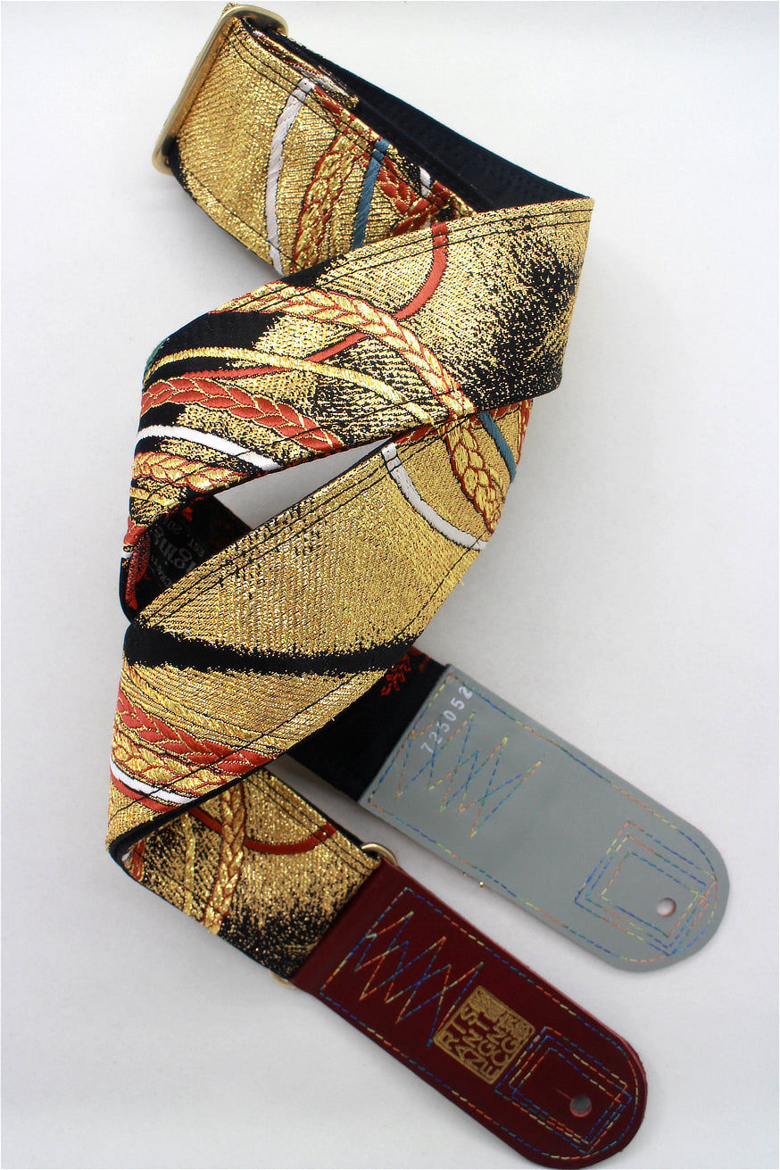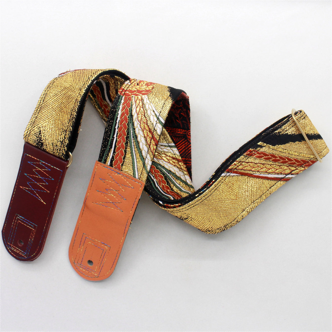 Unique and beautiful guitar strap [SC725052] - hand made in Japan from recycled silk woven kimono obi, leather and brass