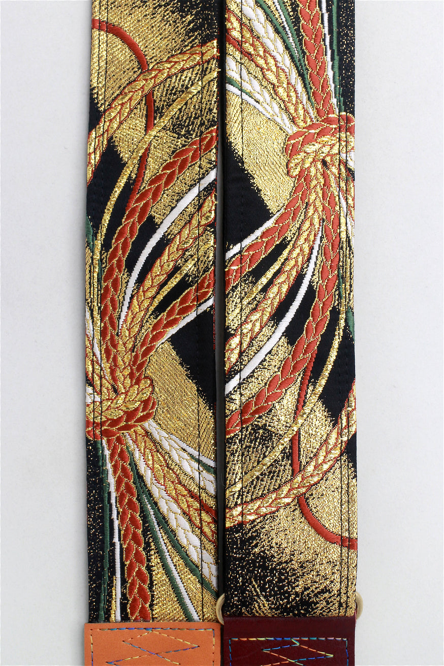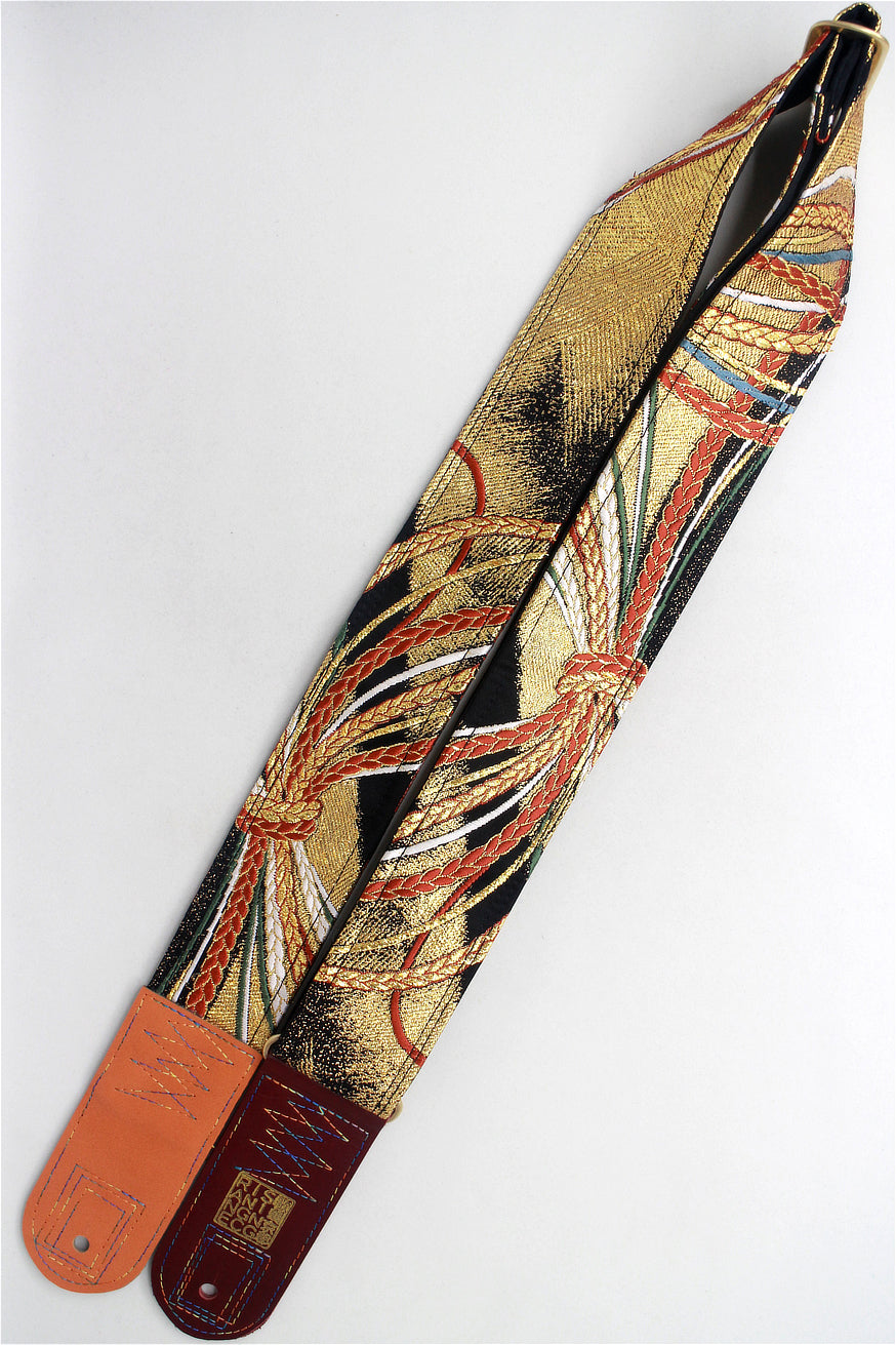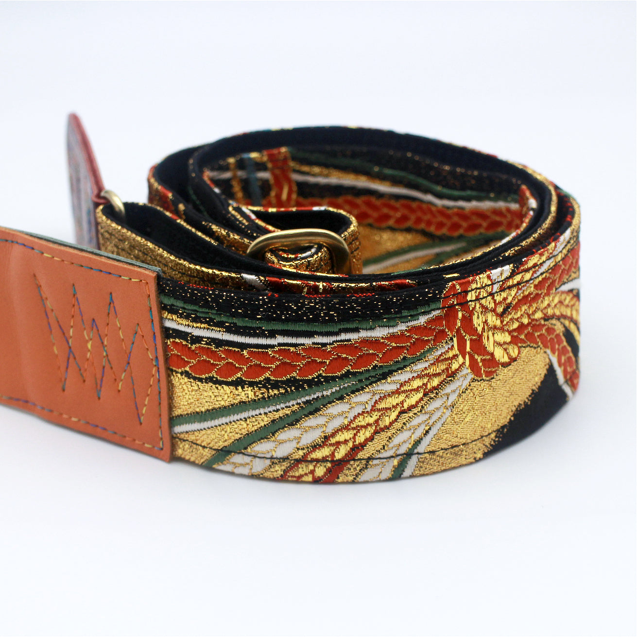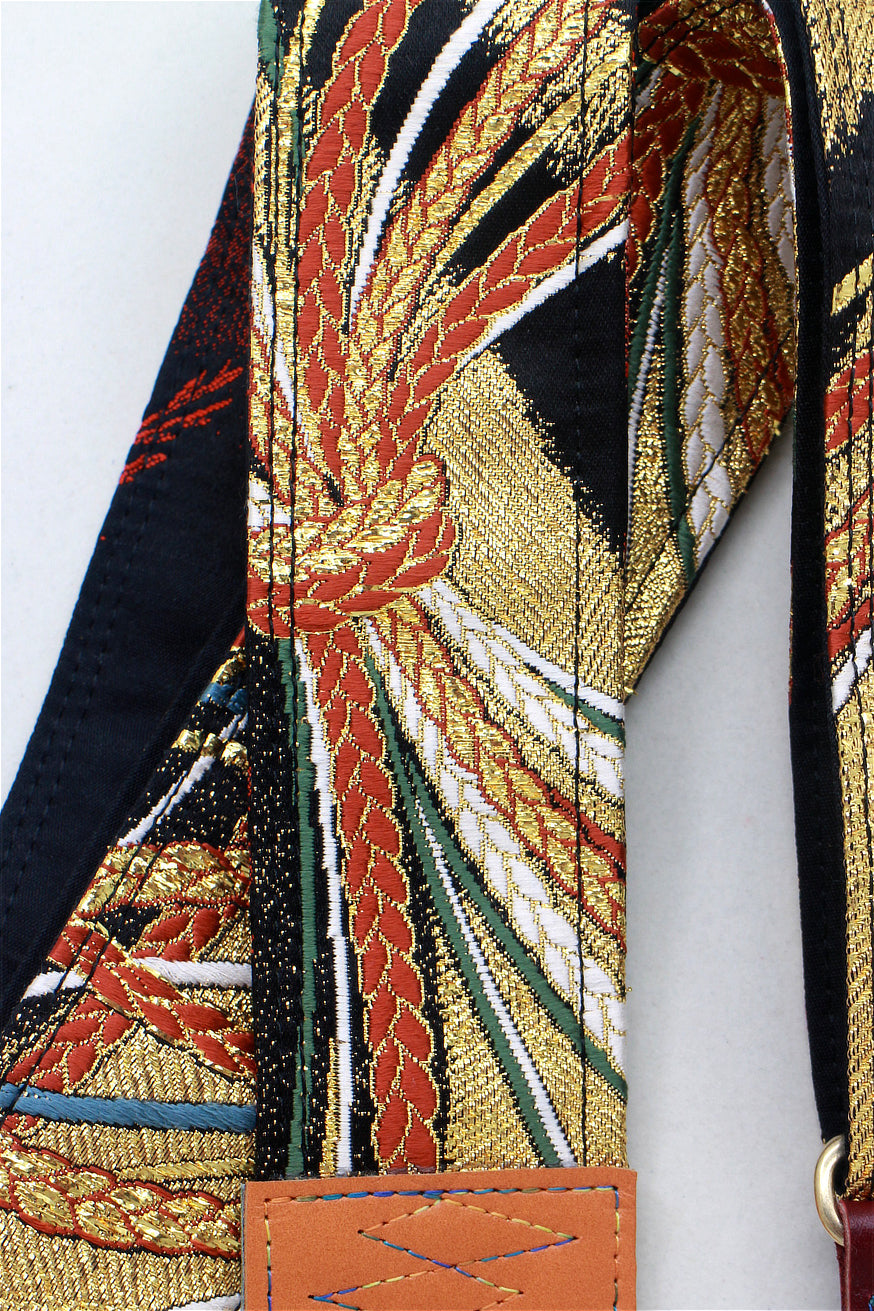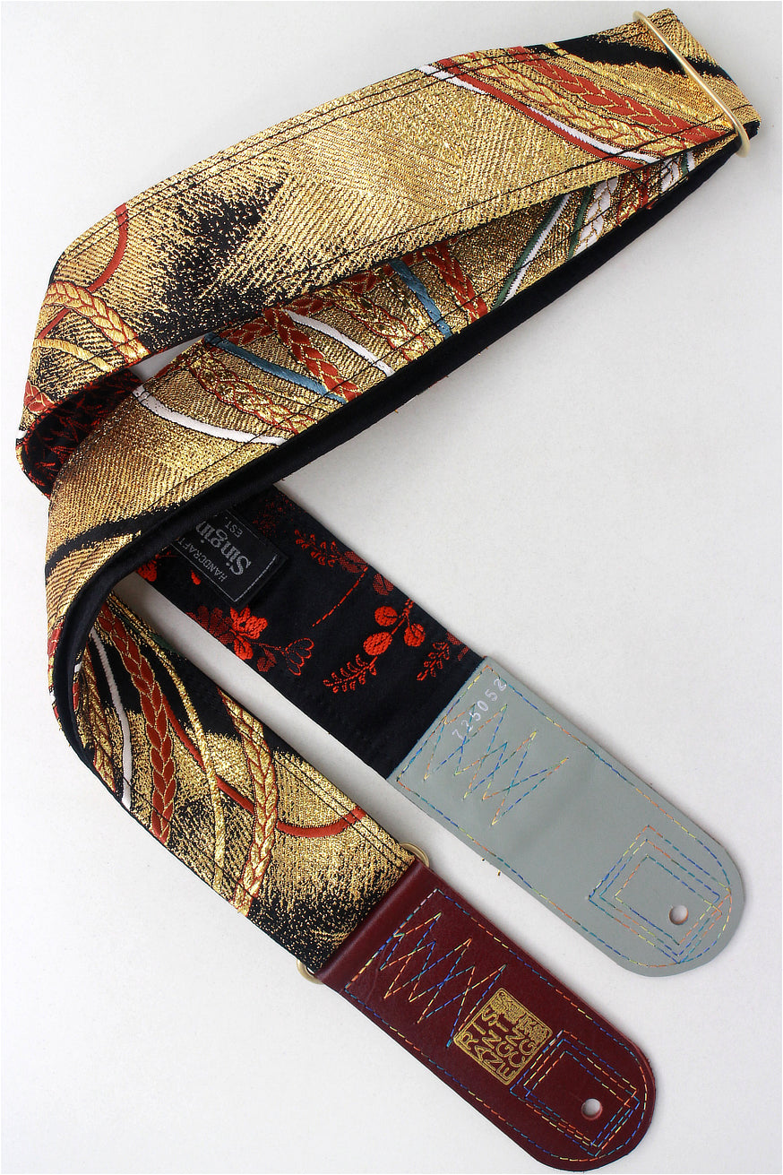 Unique and beautiful guitar strap [SC725052] - hand made in Japan from recycled silk woven kimono obi, leather and brass
