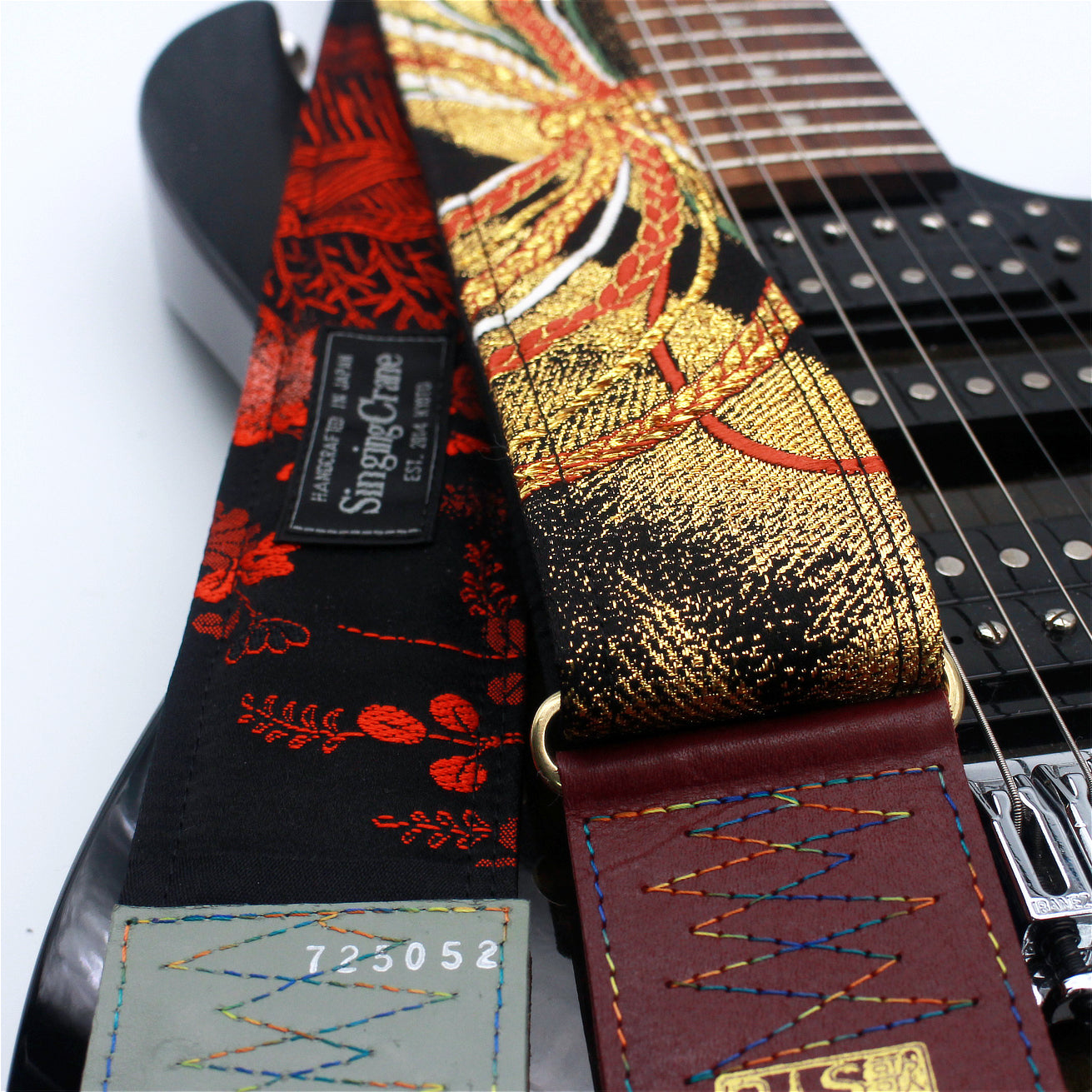 Brand new Singing Crane handmade silk kimono obi guitar strap