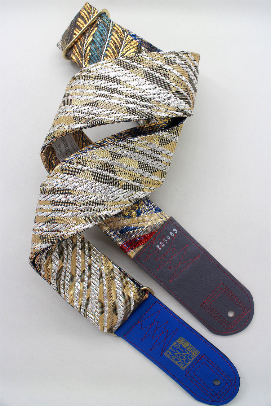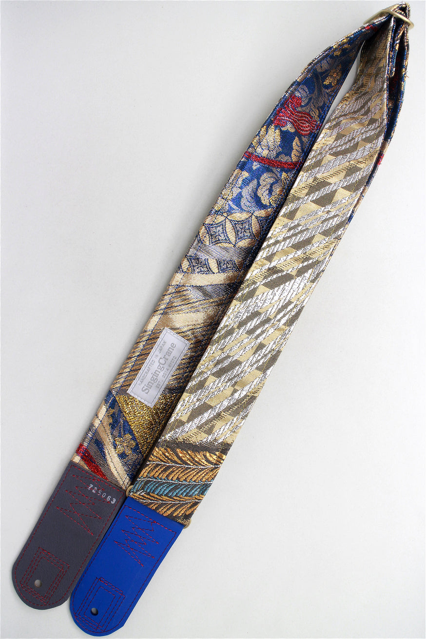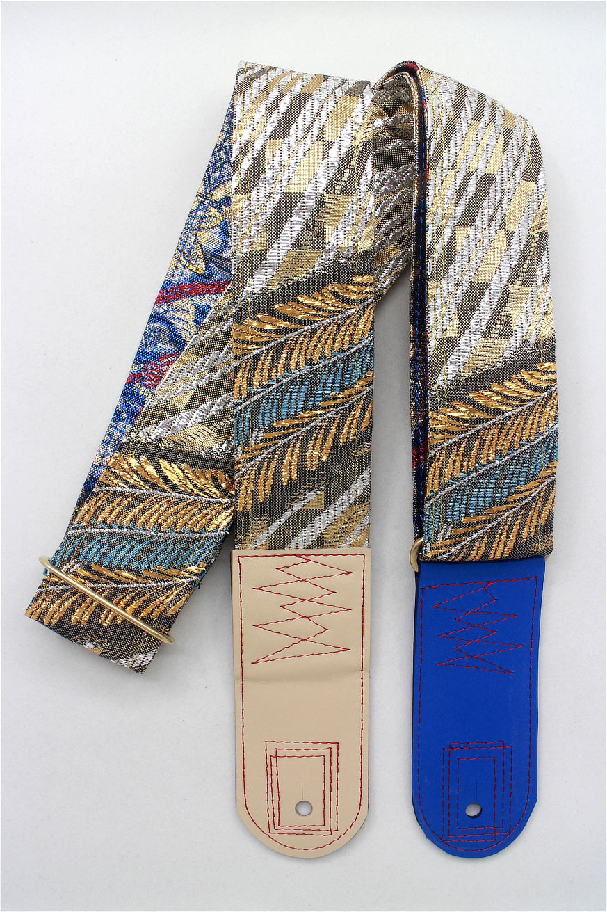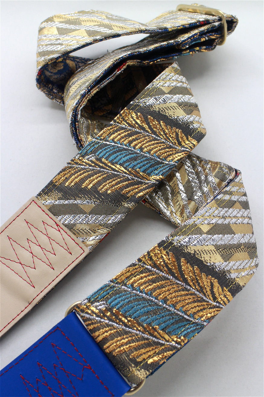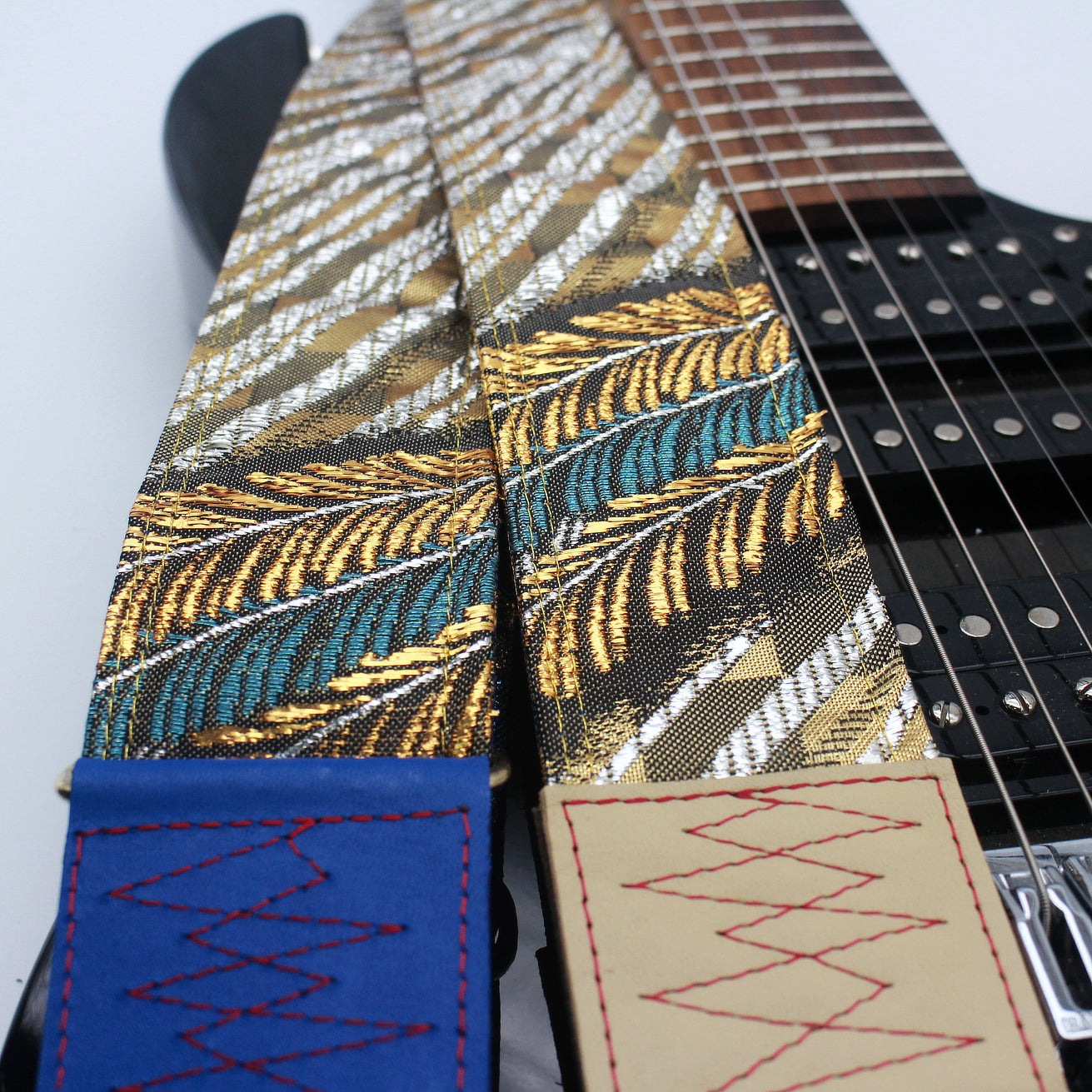 Unique and beautiful guitar strap [SC725063] - hand made in Japan from recycled silk woven kimono obi, leather and brass