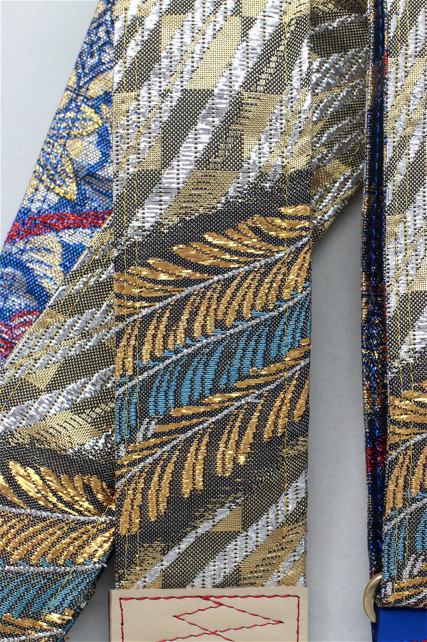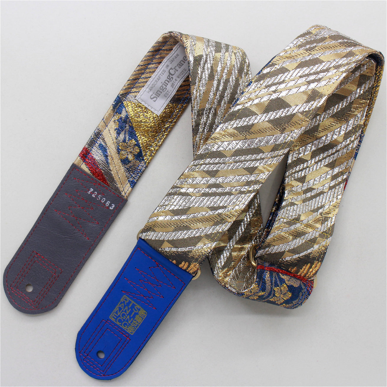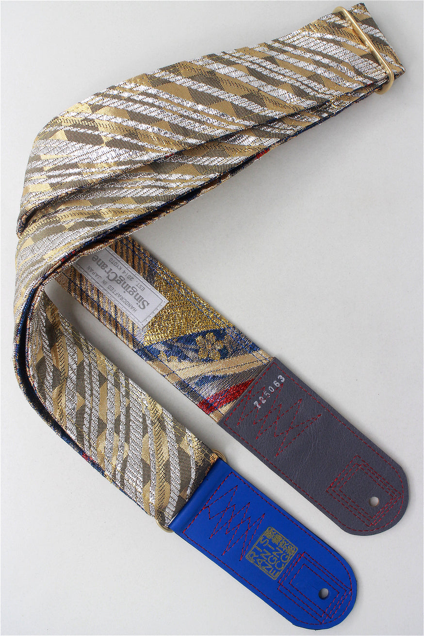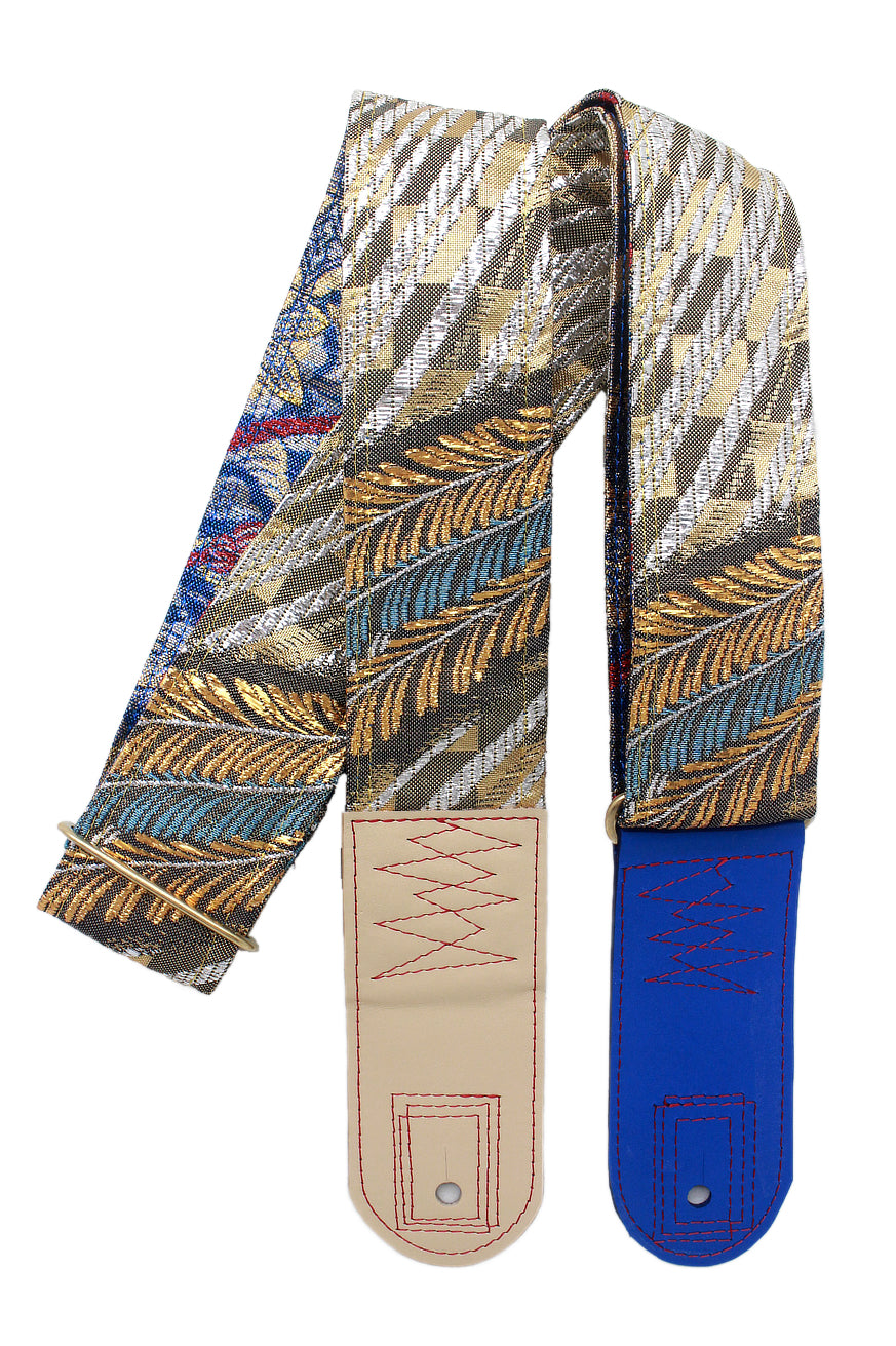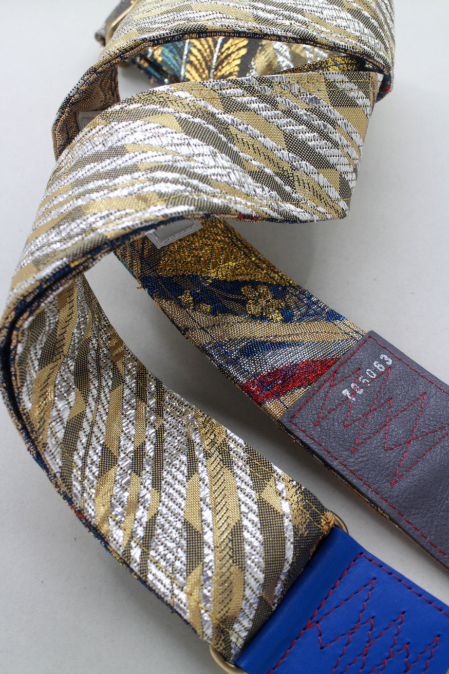 Unique and beautiful guitar strap [SC725063] - hand made in Japan from recycled silk woven kimono obi, leather and brass