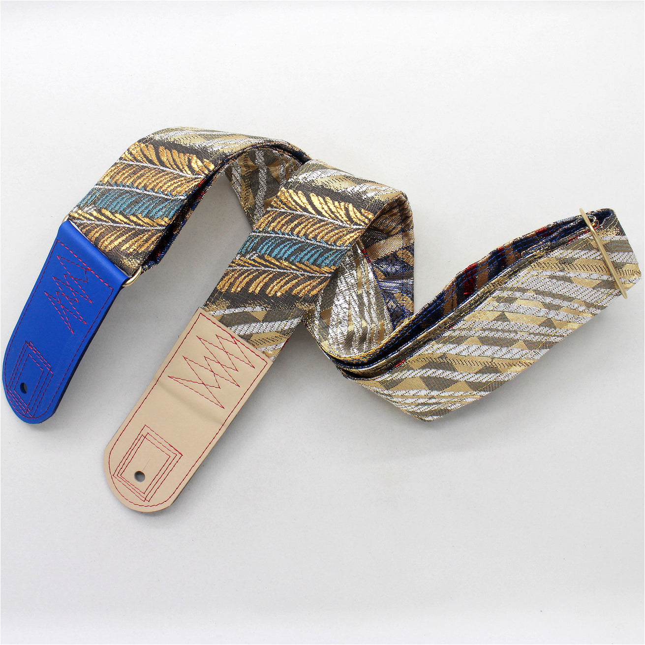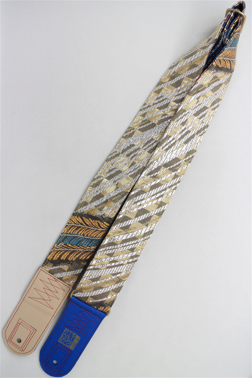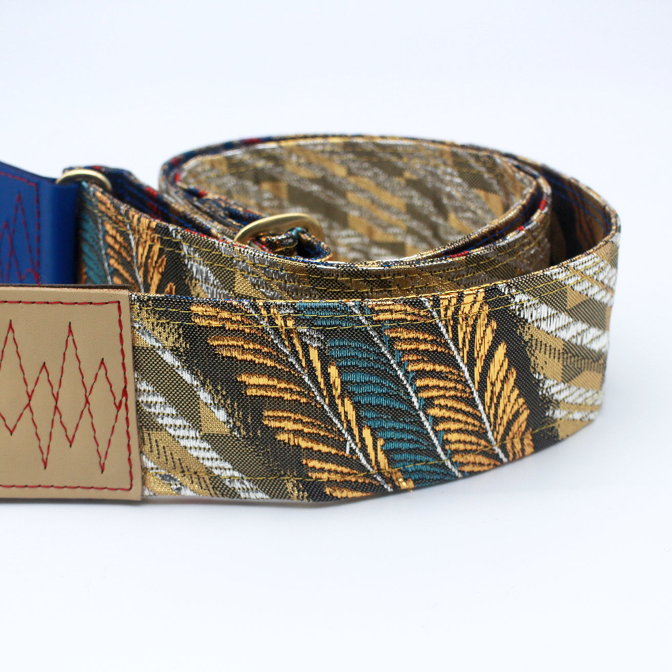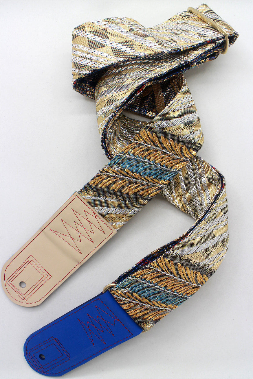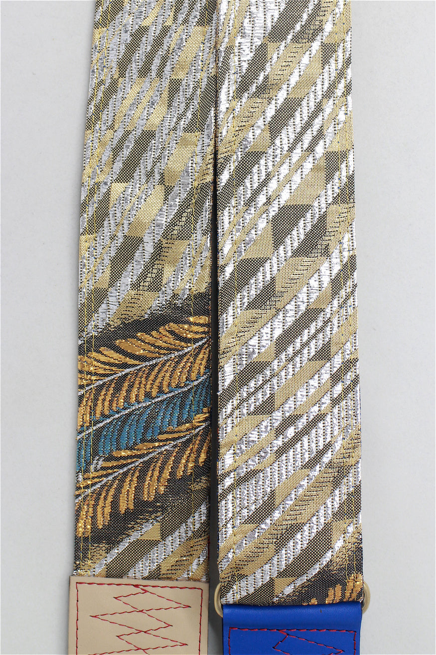 Unique and beautiful guitar strap [SC725063] - hand made in Japan from recycled silk woven kimono obi, leather and brass