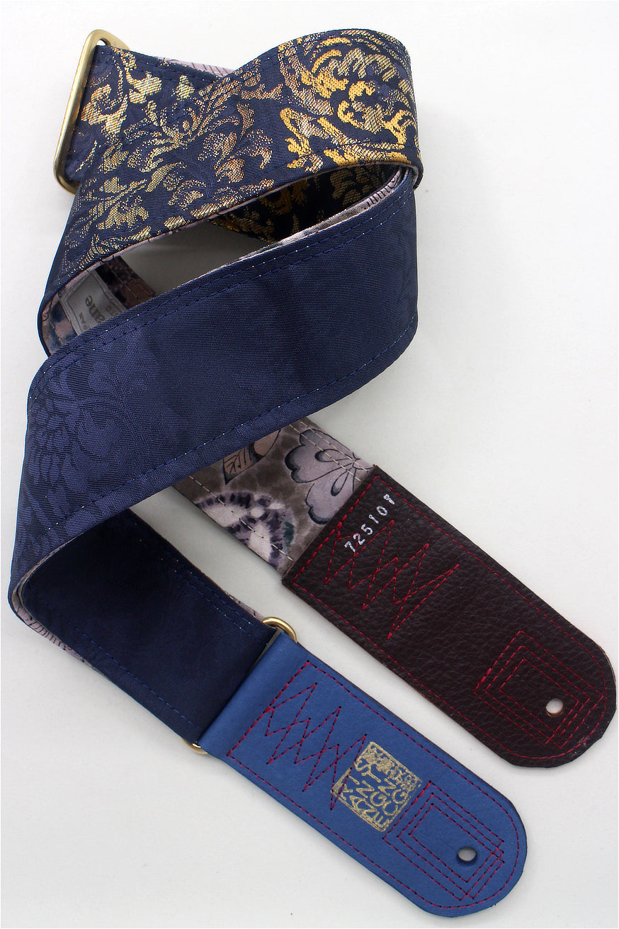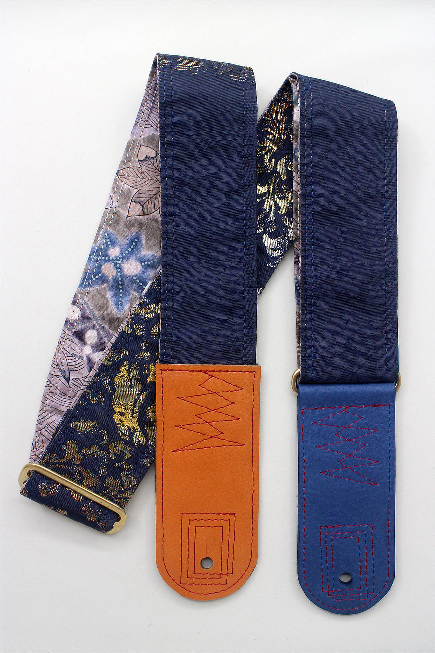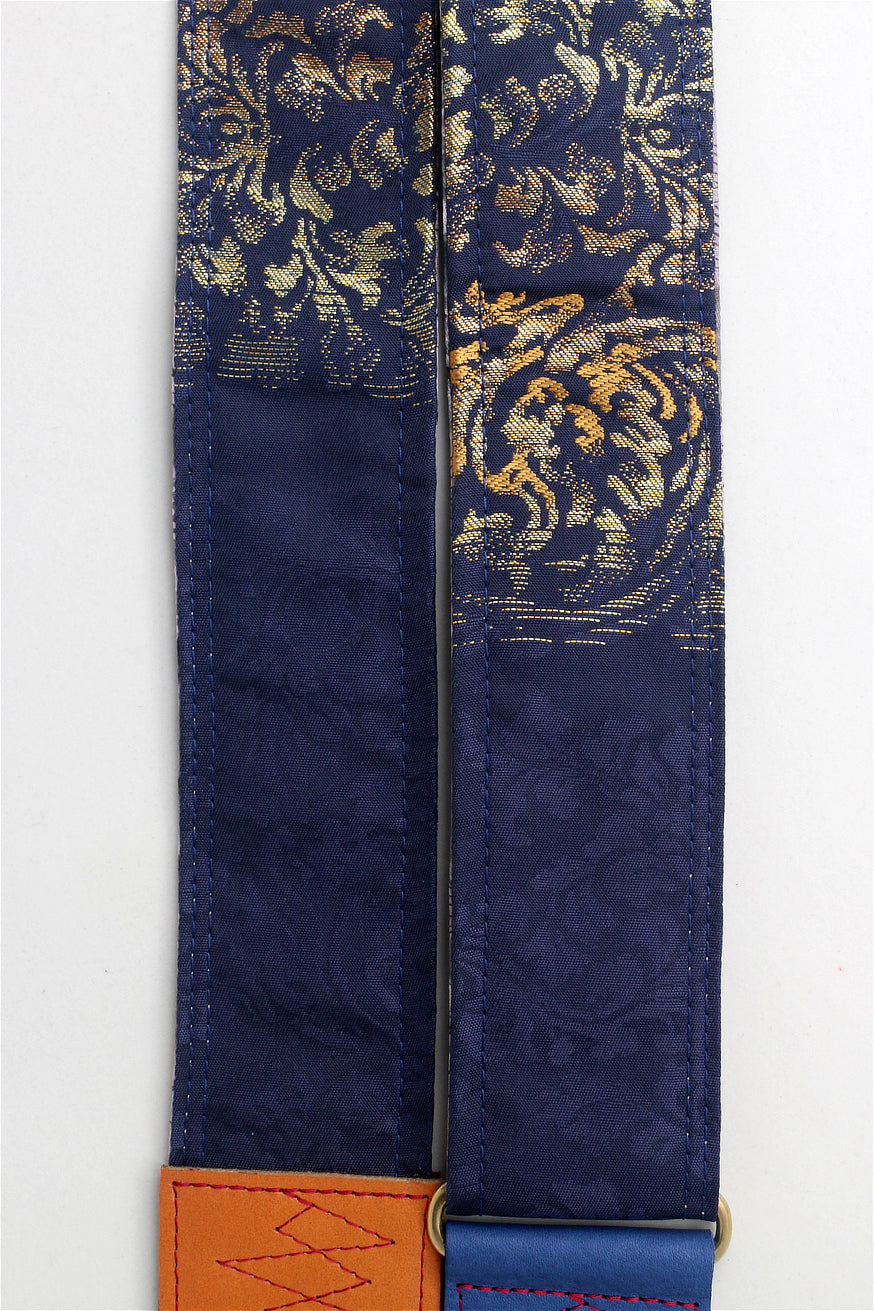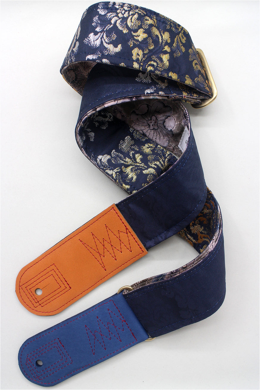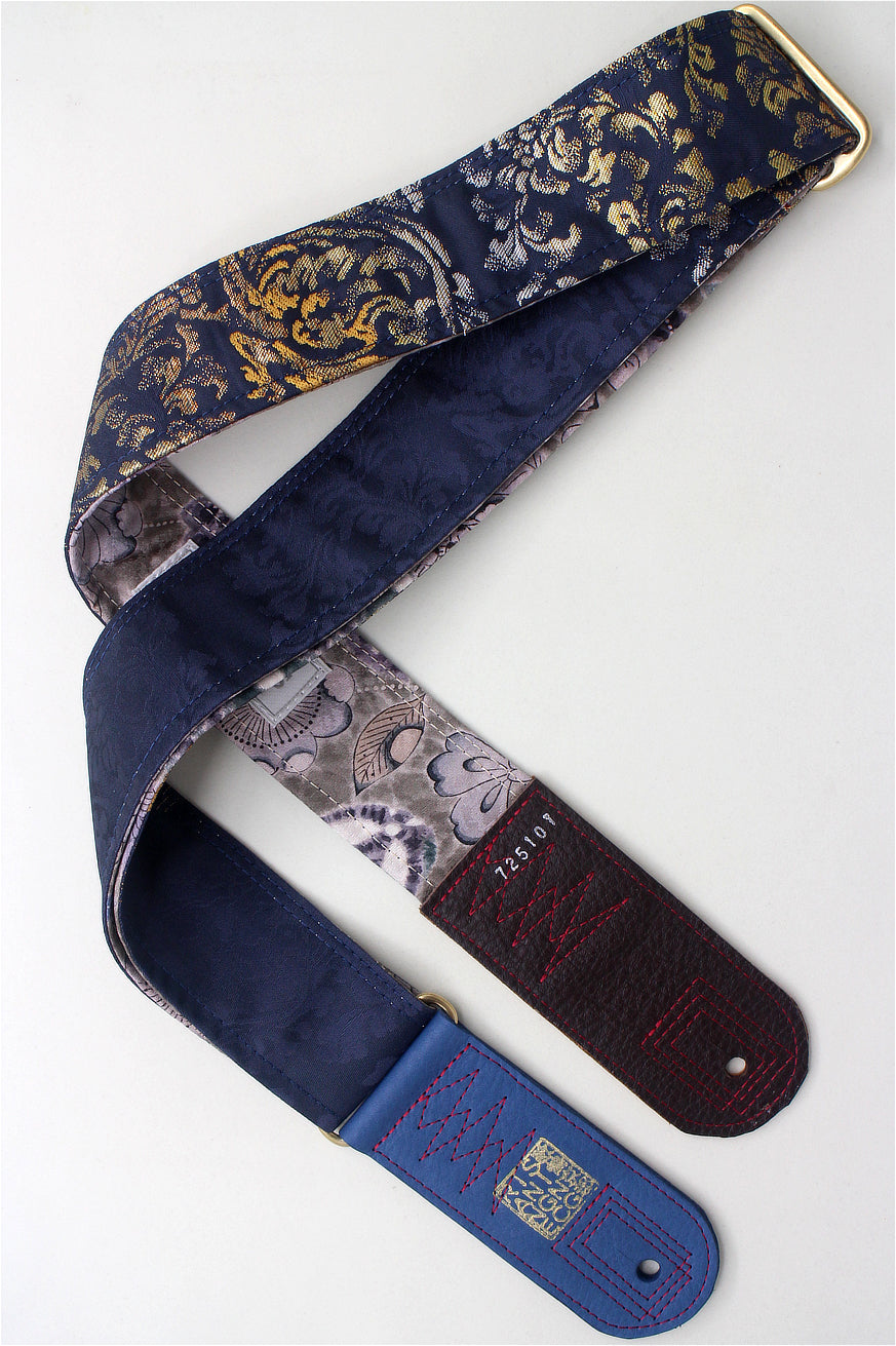Unique and beautiful guitar strap [SC725101] - hand made in Japan from recycled silk woven kimono obi, leather and brass