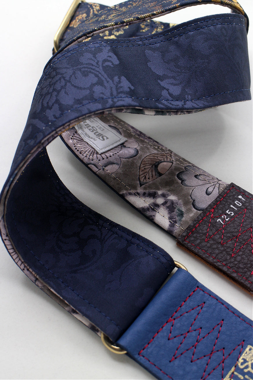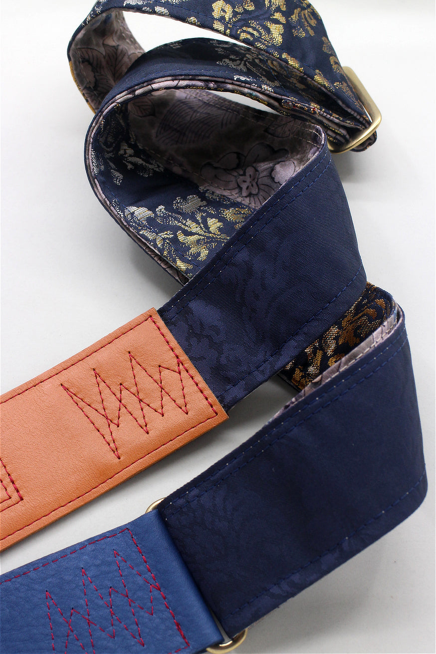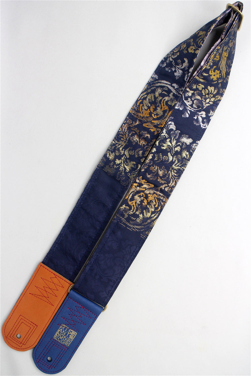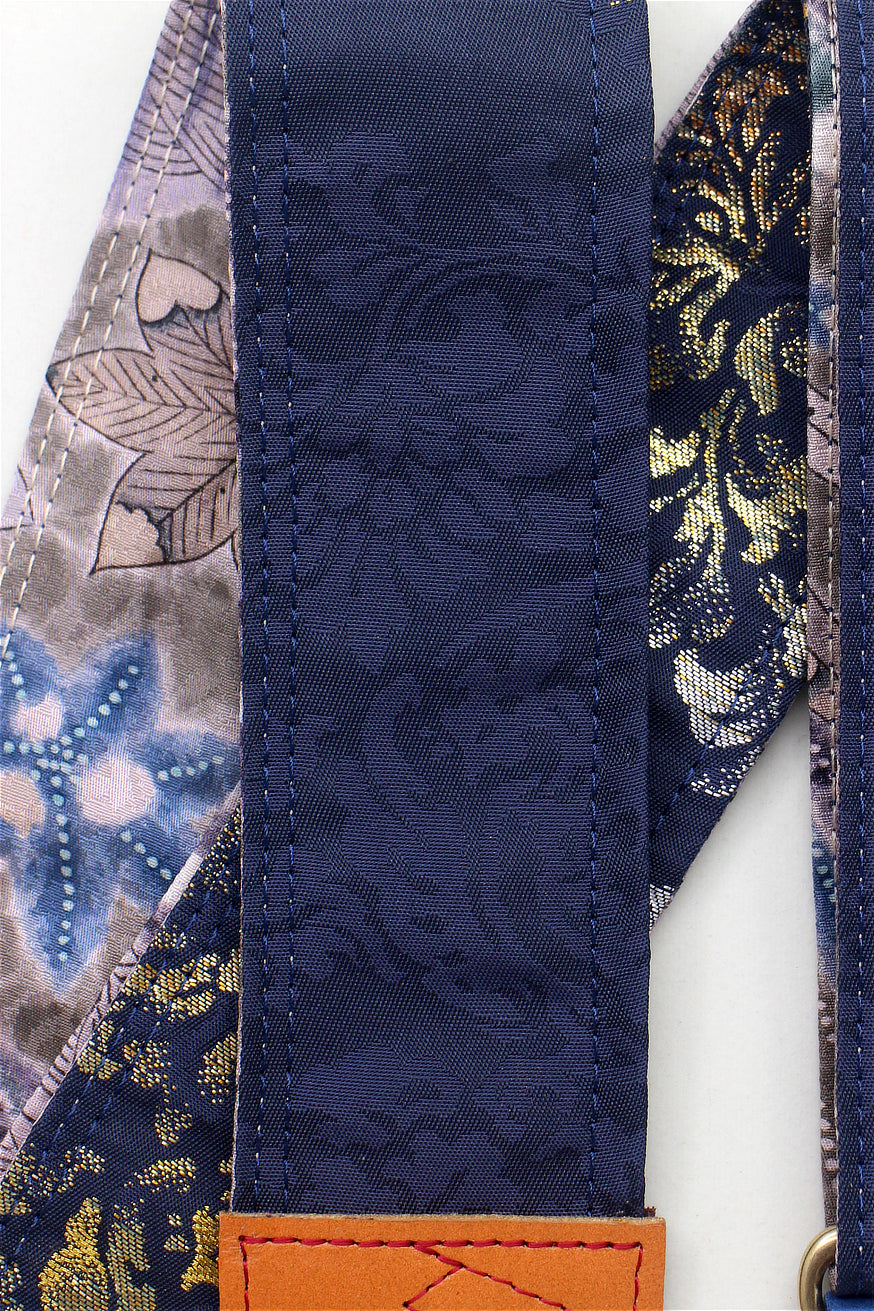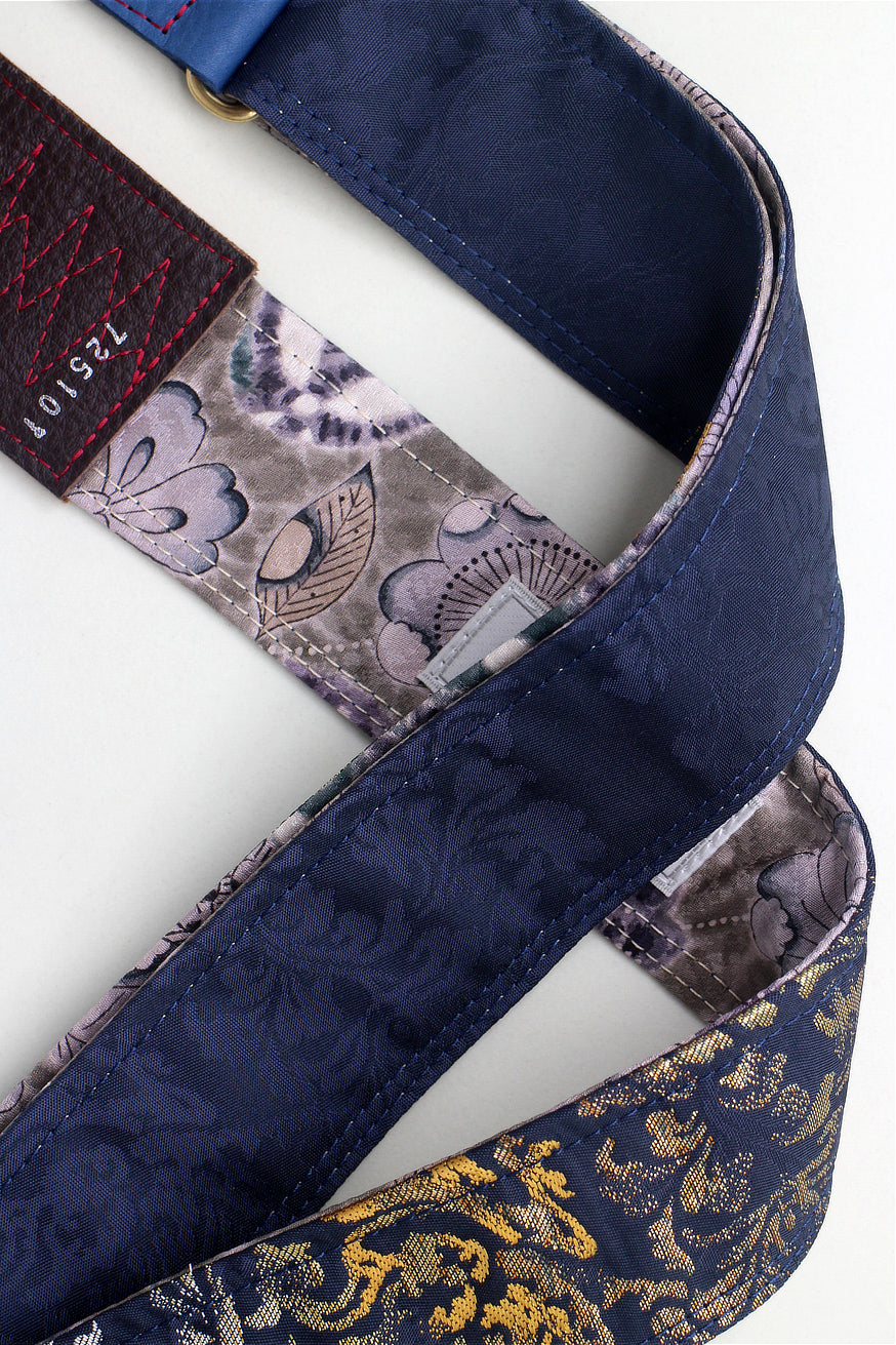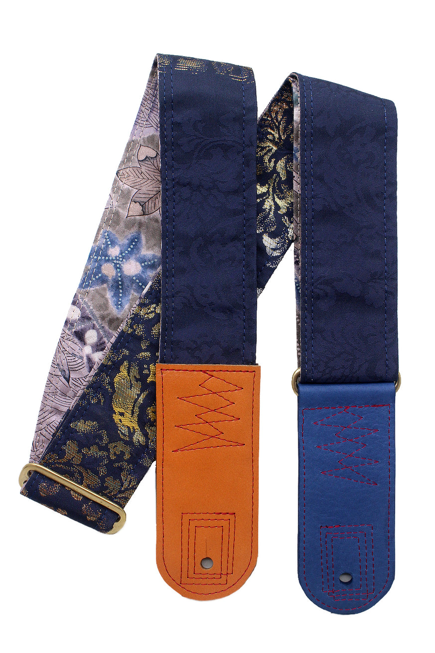 Unique and beautiful guitar strap [SC725101] - hand made in Japan from recycled silk woven kimono obi, leather and brass