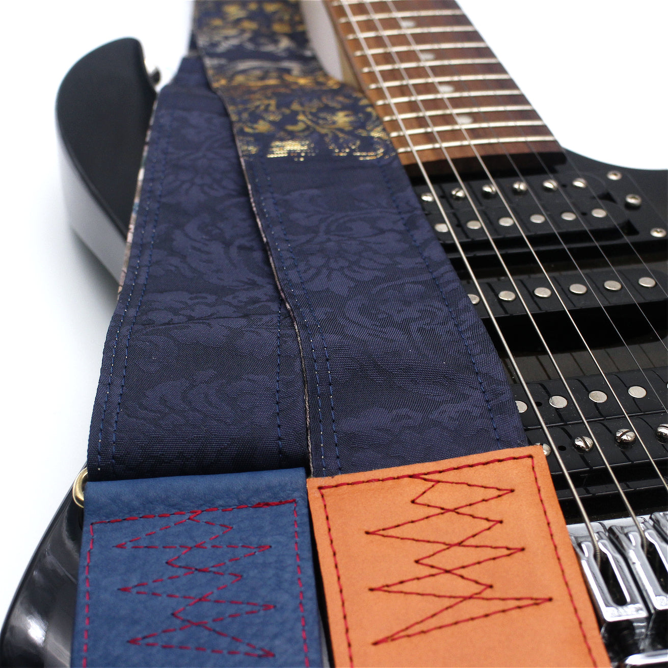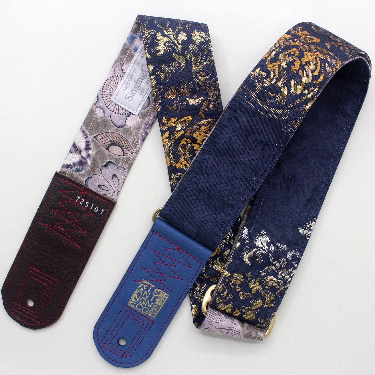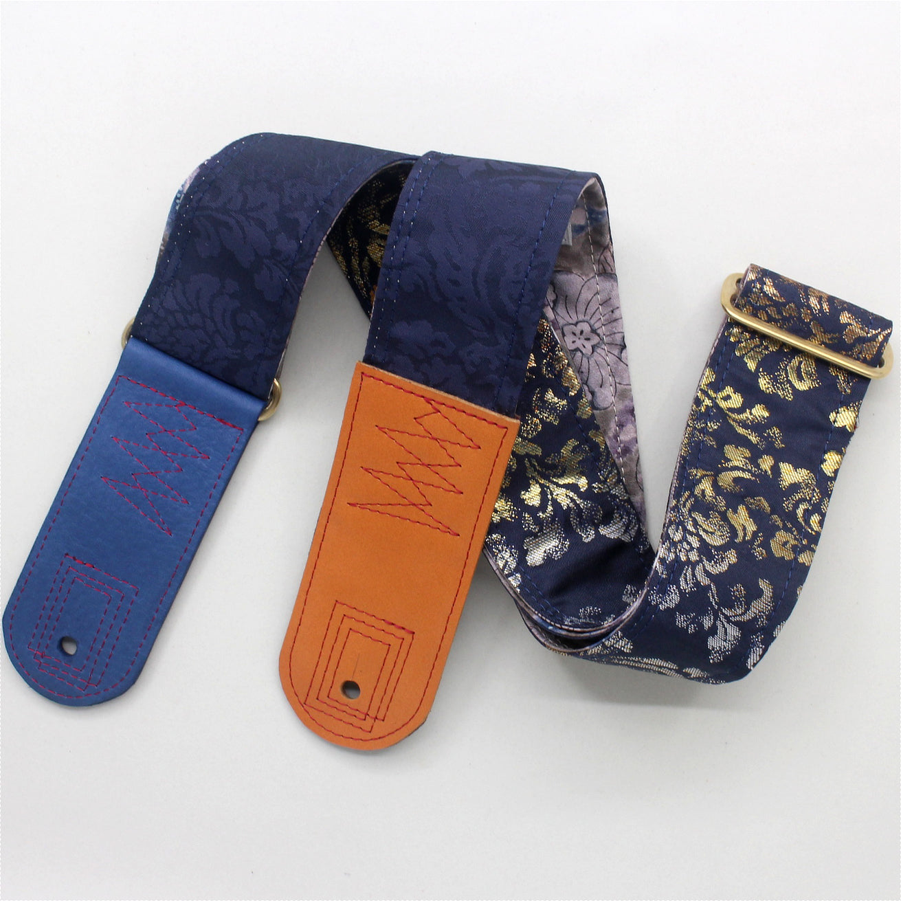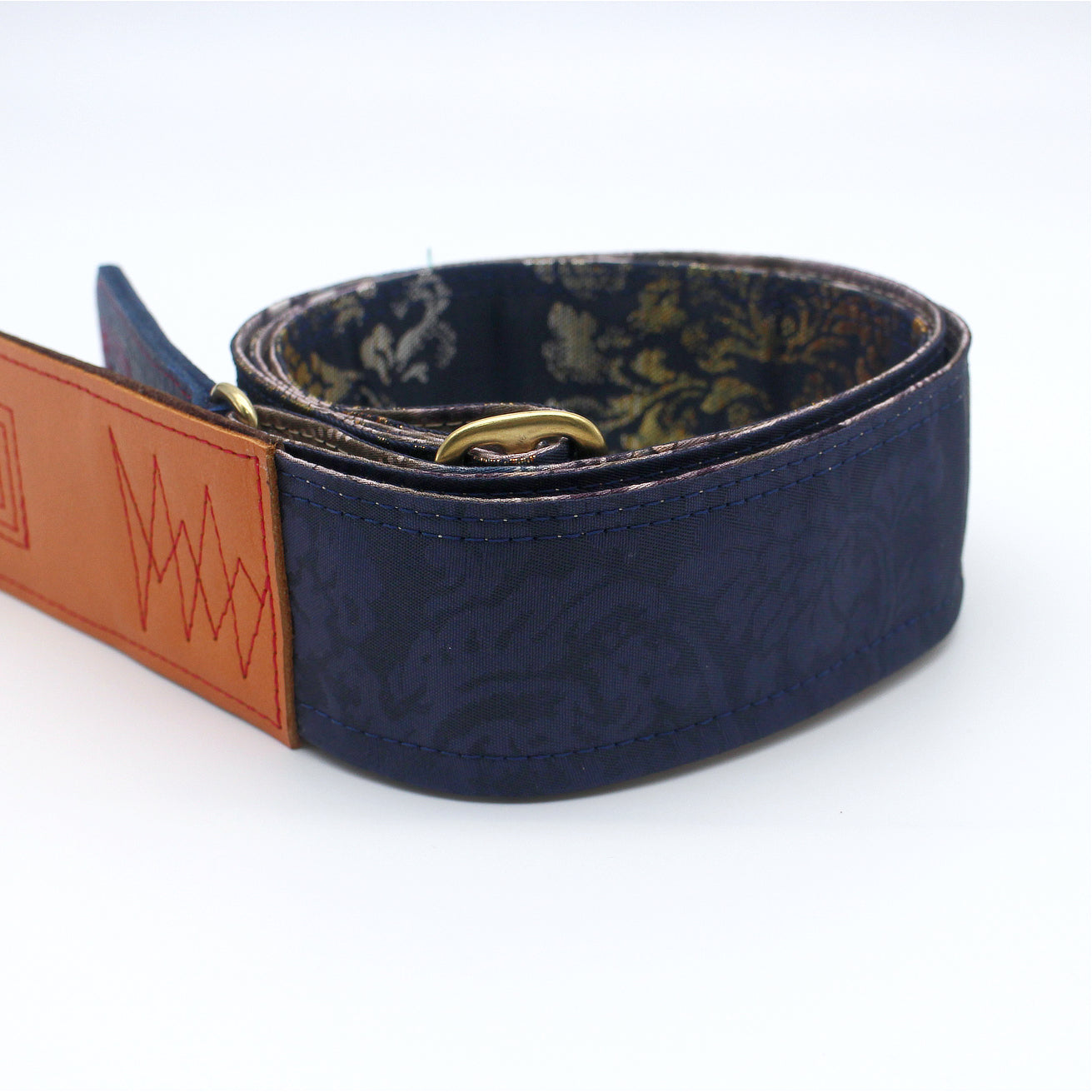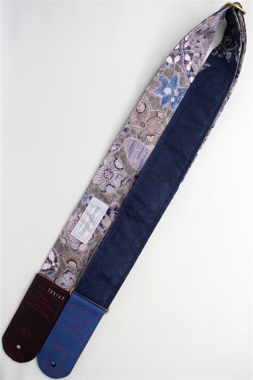 Unique and beautiful guitar strap [SC725101] - hand made in Japan from recycled silk woven kimono obi, leather and brass