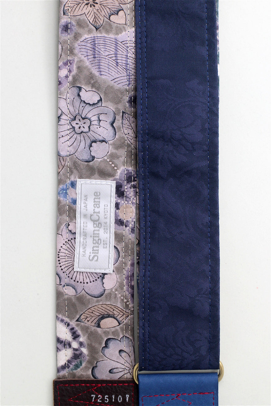 Every Singing Crane strap is one-of-a-kind, one of three variations from the same Obi on the front, and this strap has a taupe gray colour reverse, with hand picked matching leathers and stitching.