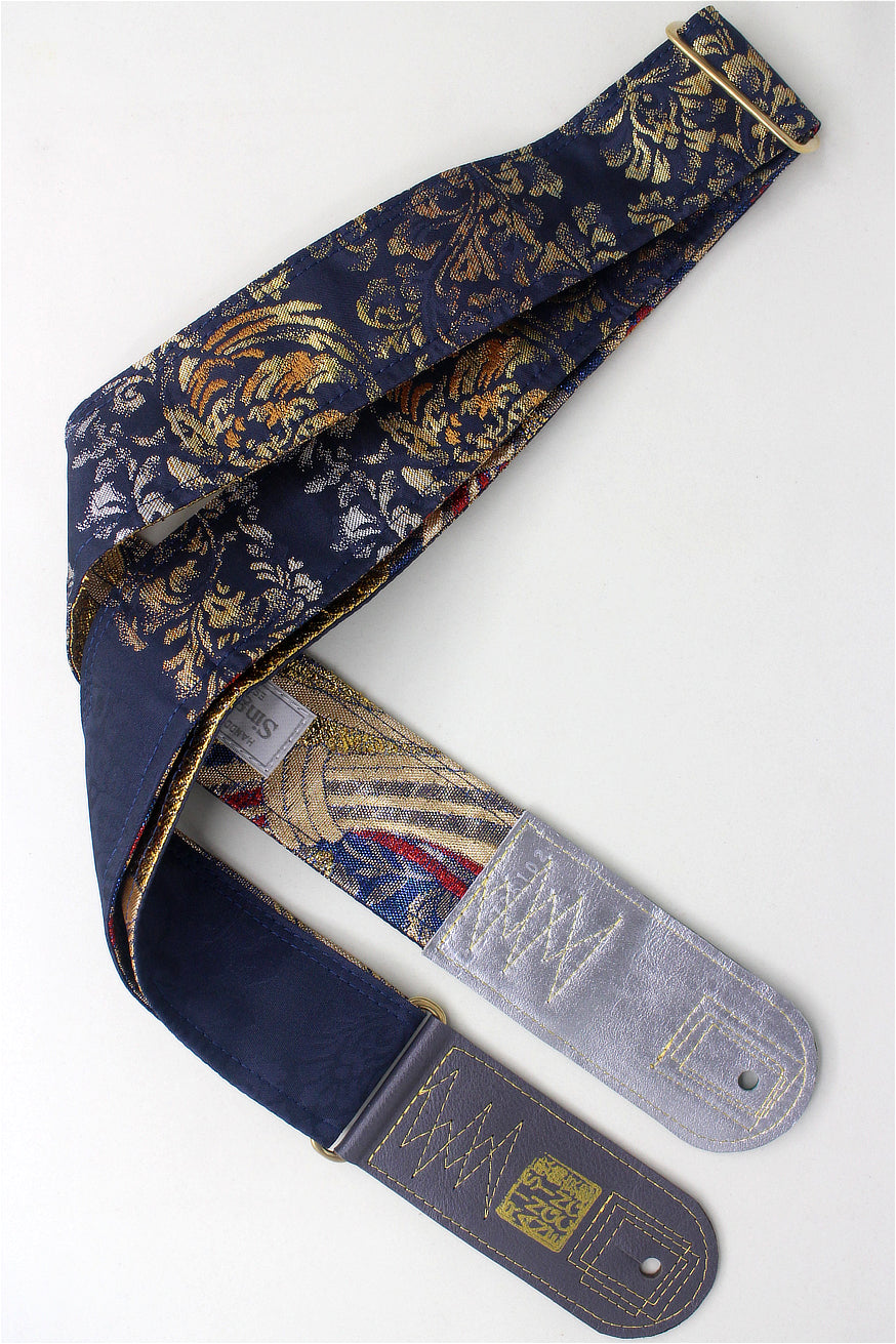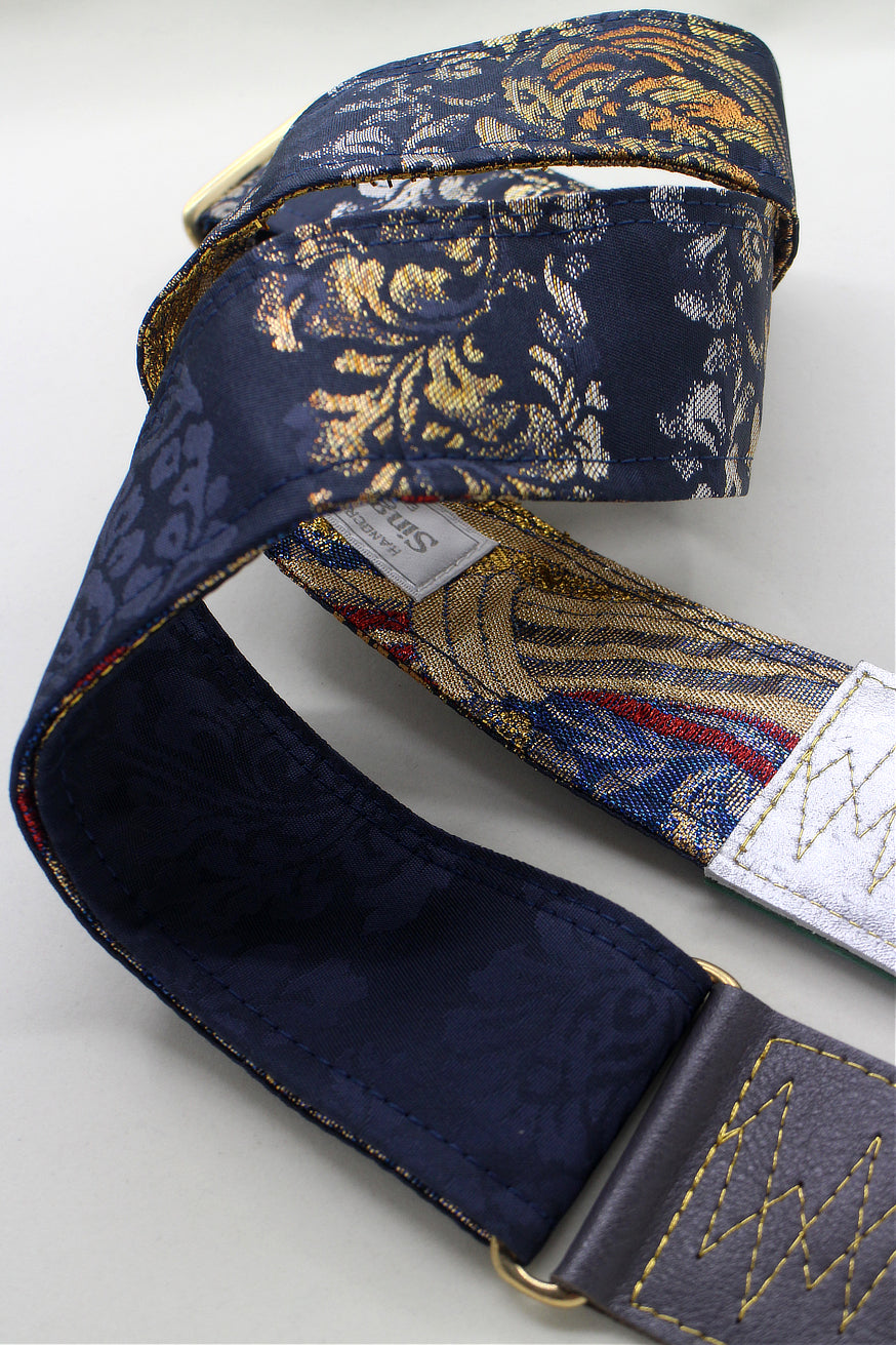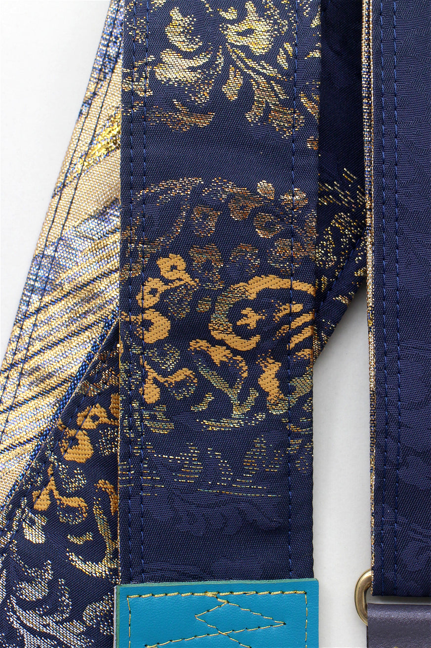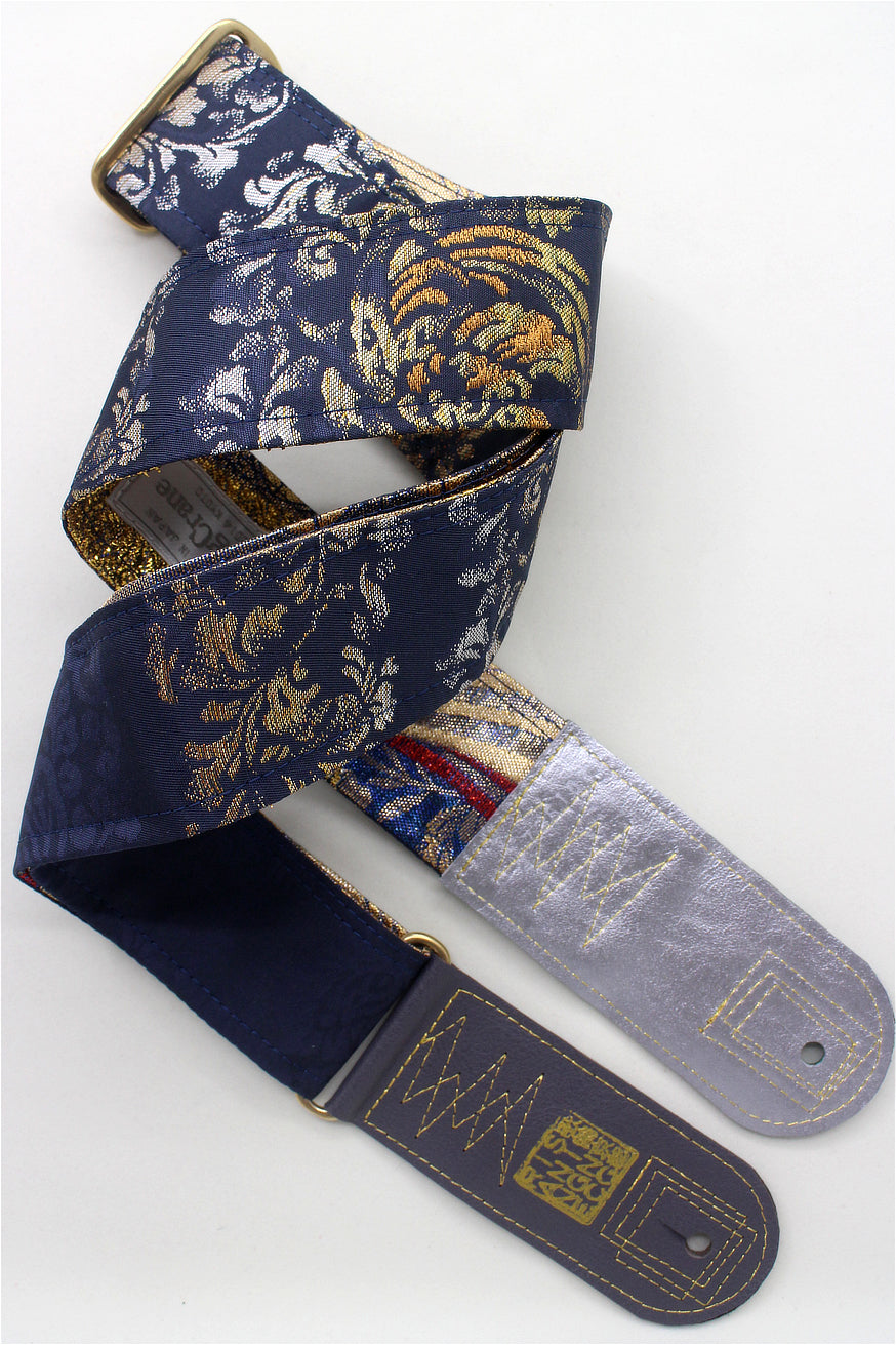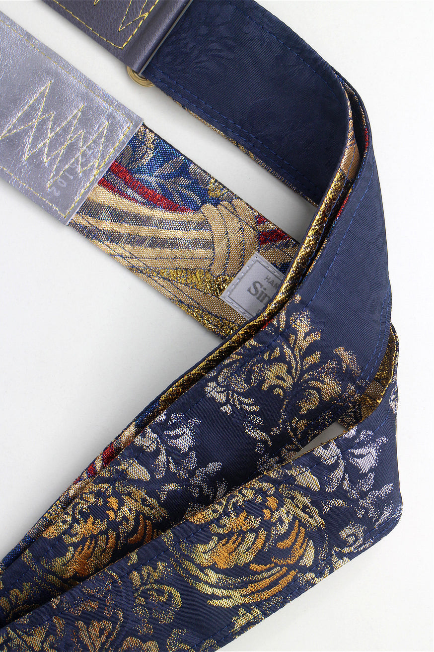 Unique and beautiful guitar strap [SC725102] - hand made in Japan from recycled silk woven kimono obi, leather and brass