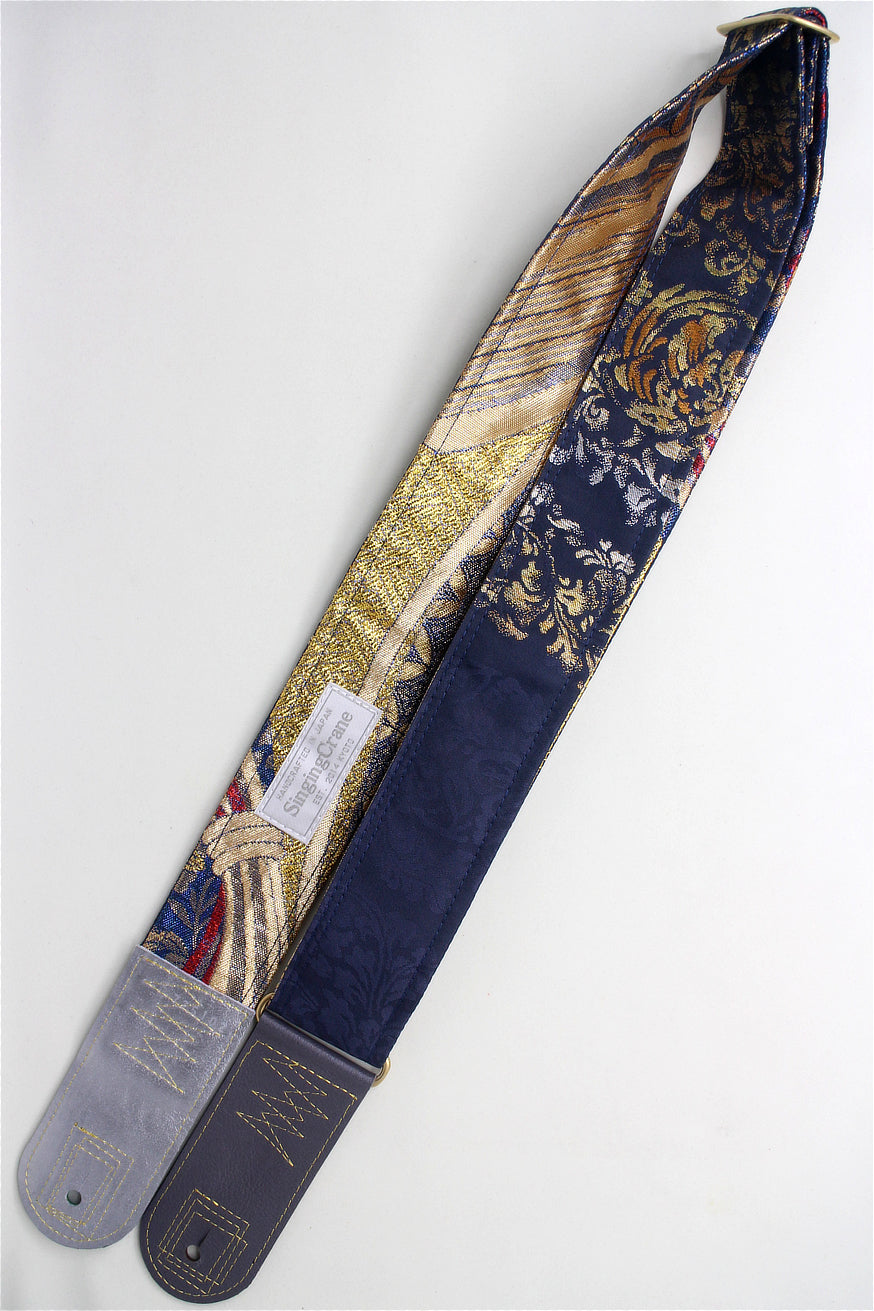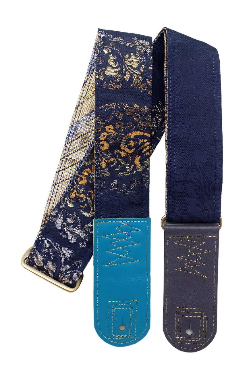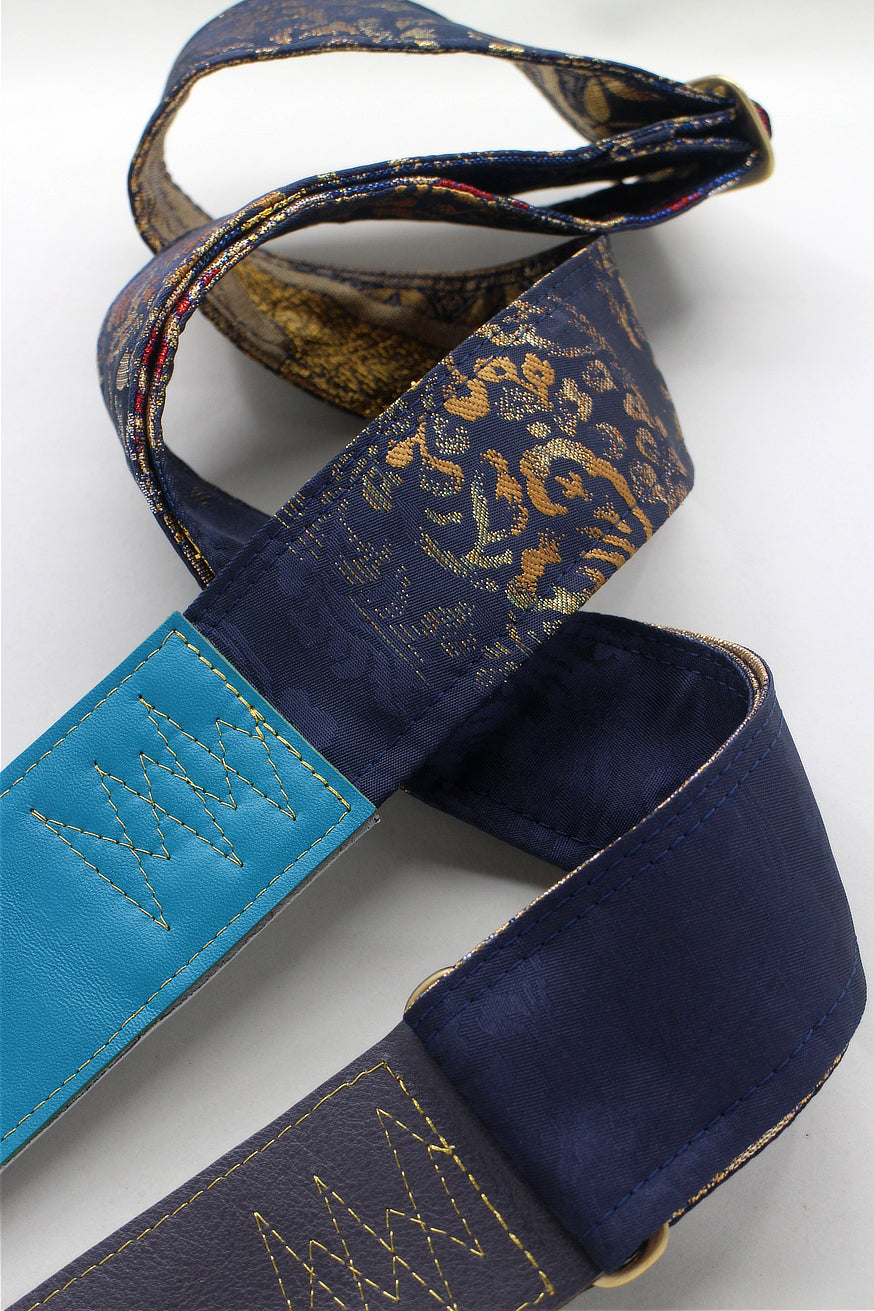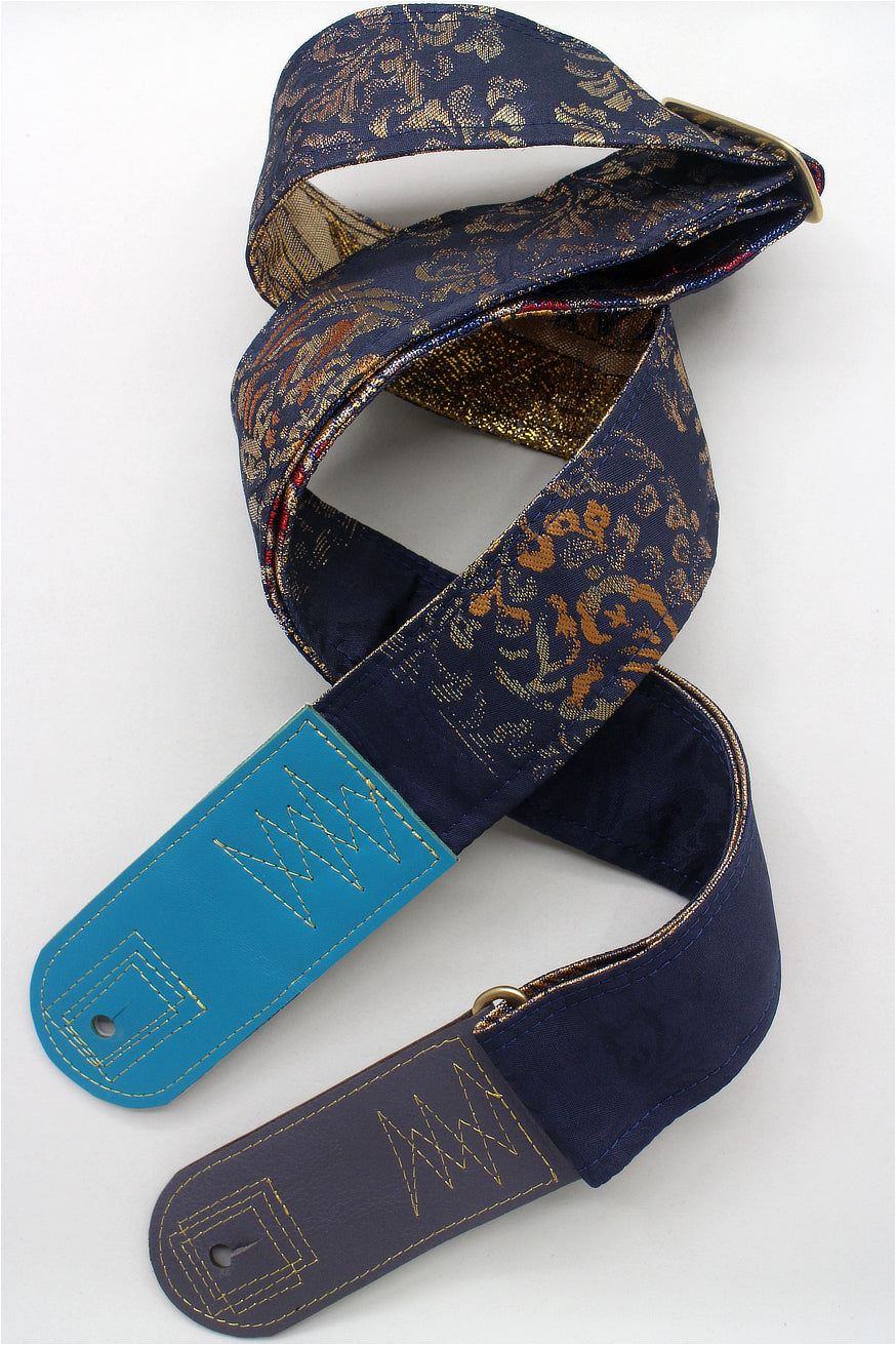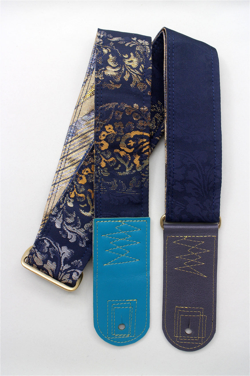 Unique and beautiful guitar strap [SC725102] - hand made in Japan from recycled silk woven kimono obi, leather and brass