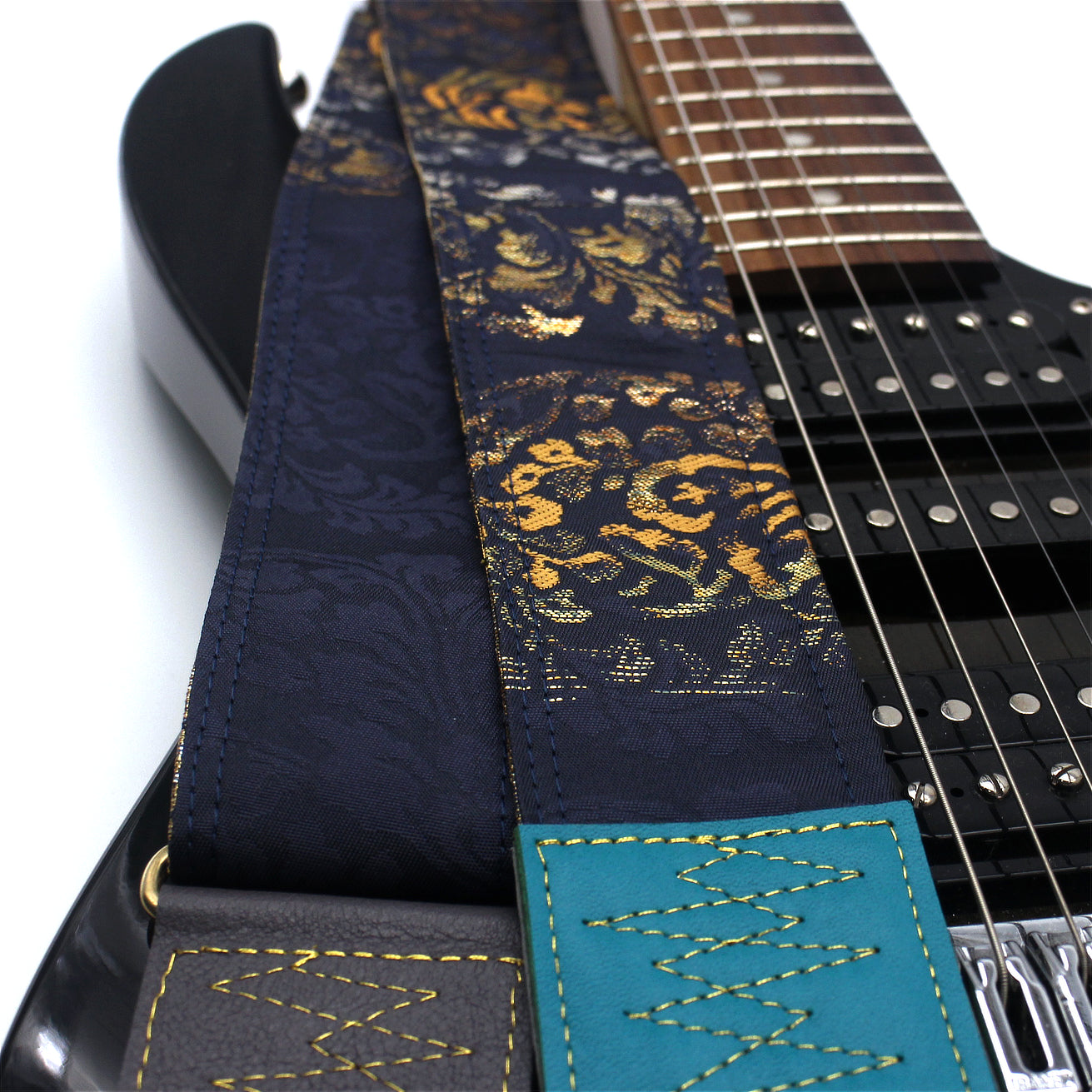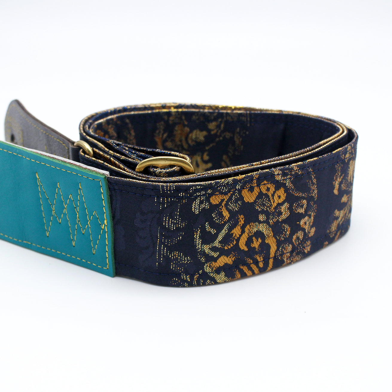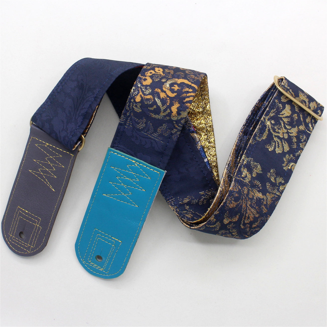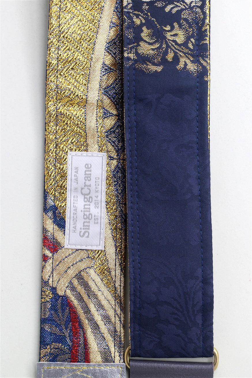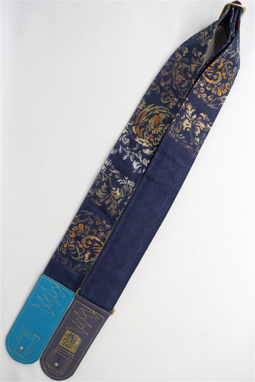 Unique and beautiful guitar strap [SC725102] - hand made in Japan from recycled silk woven kimono obi, leather and brass