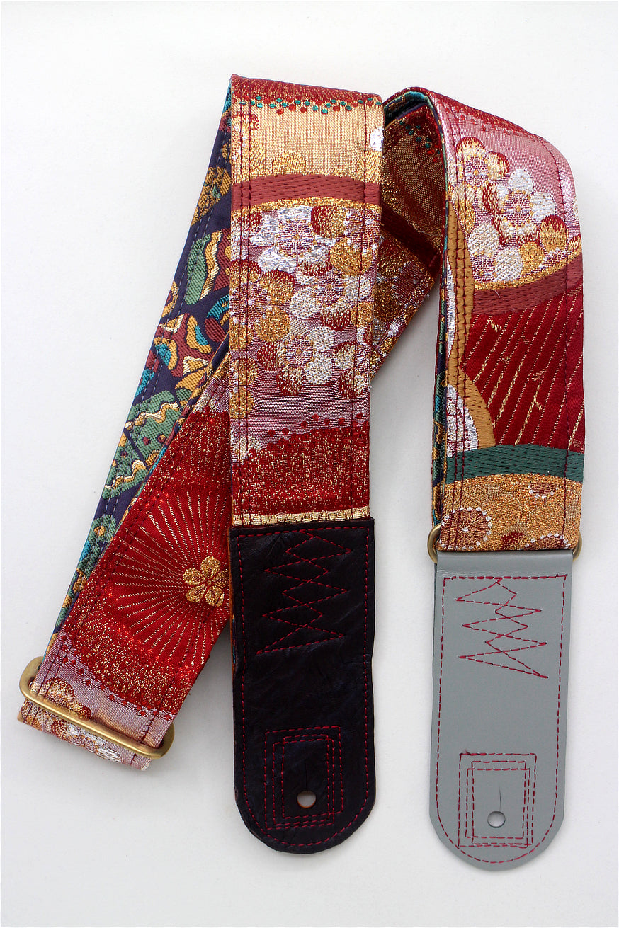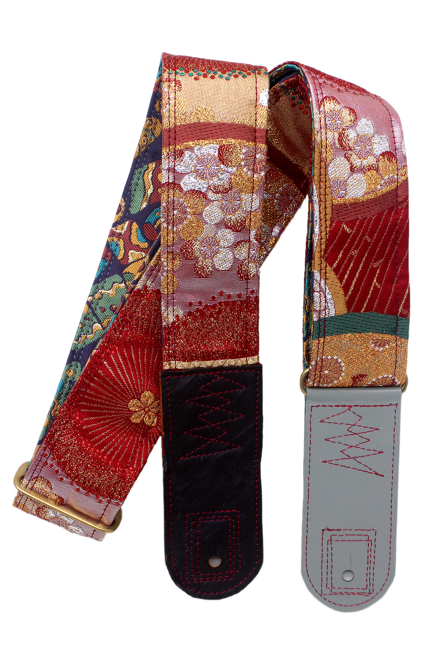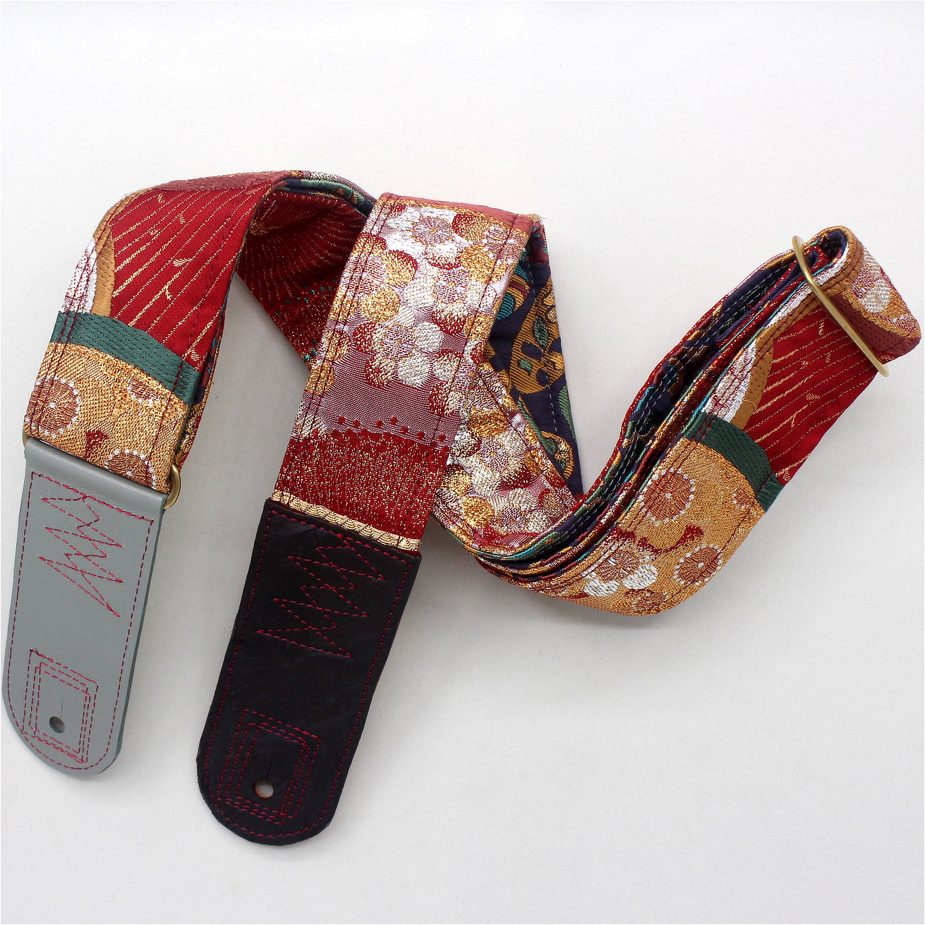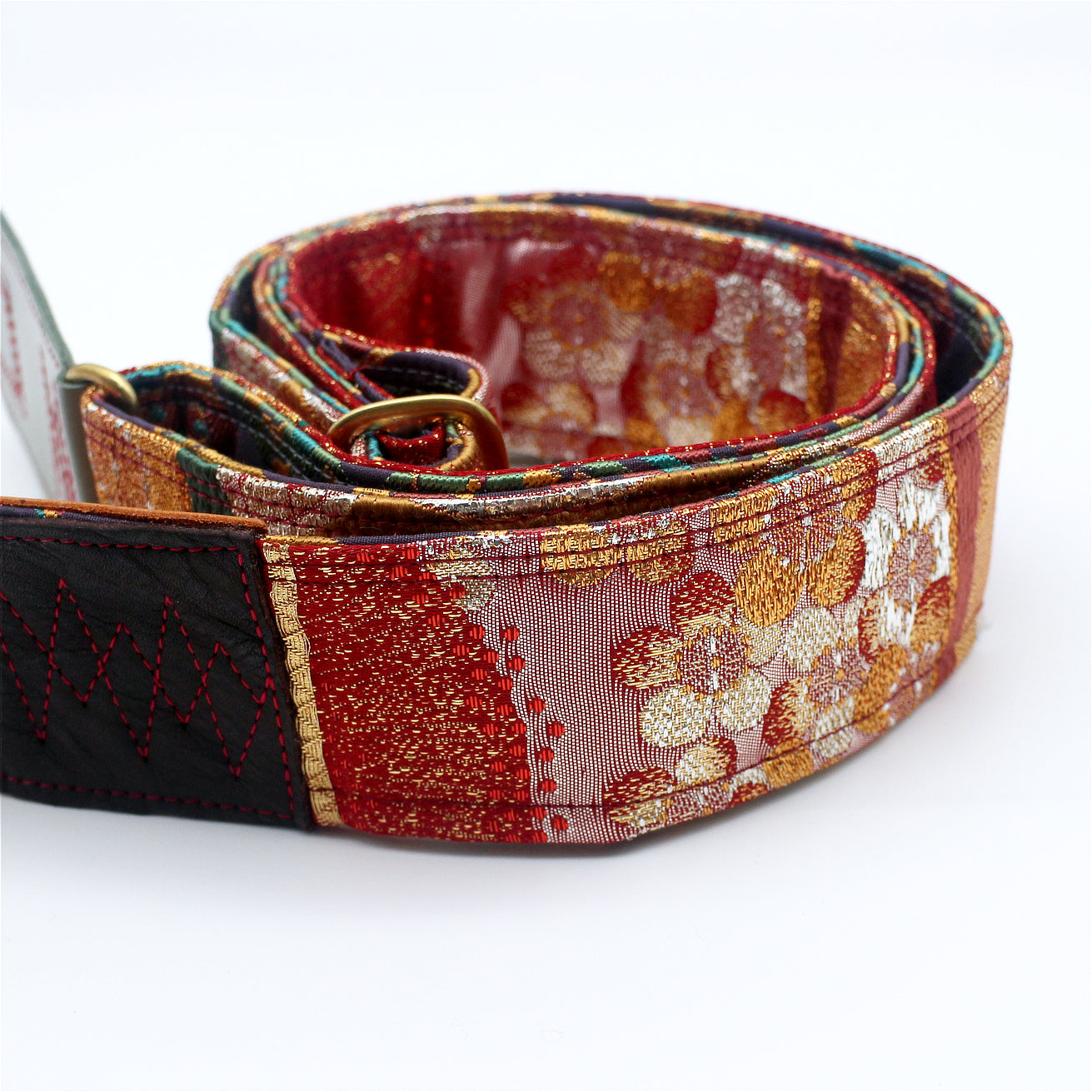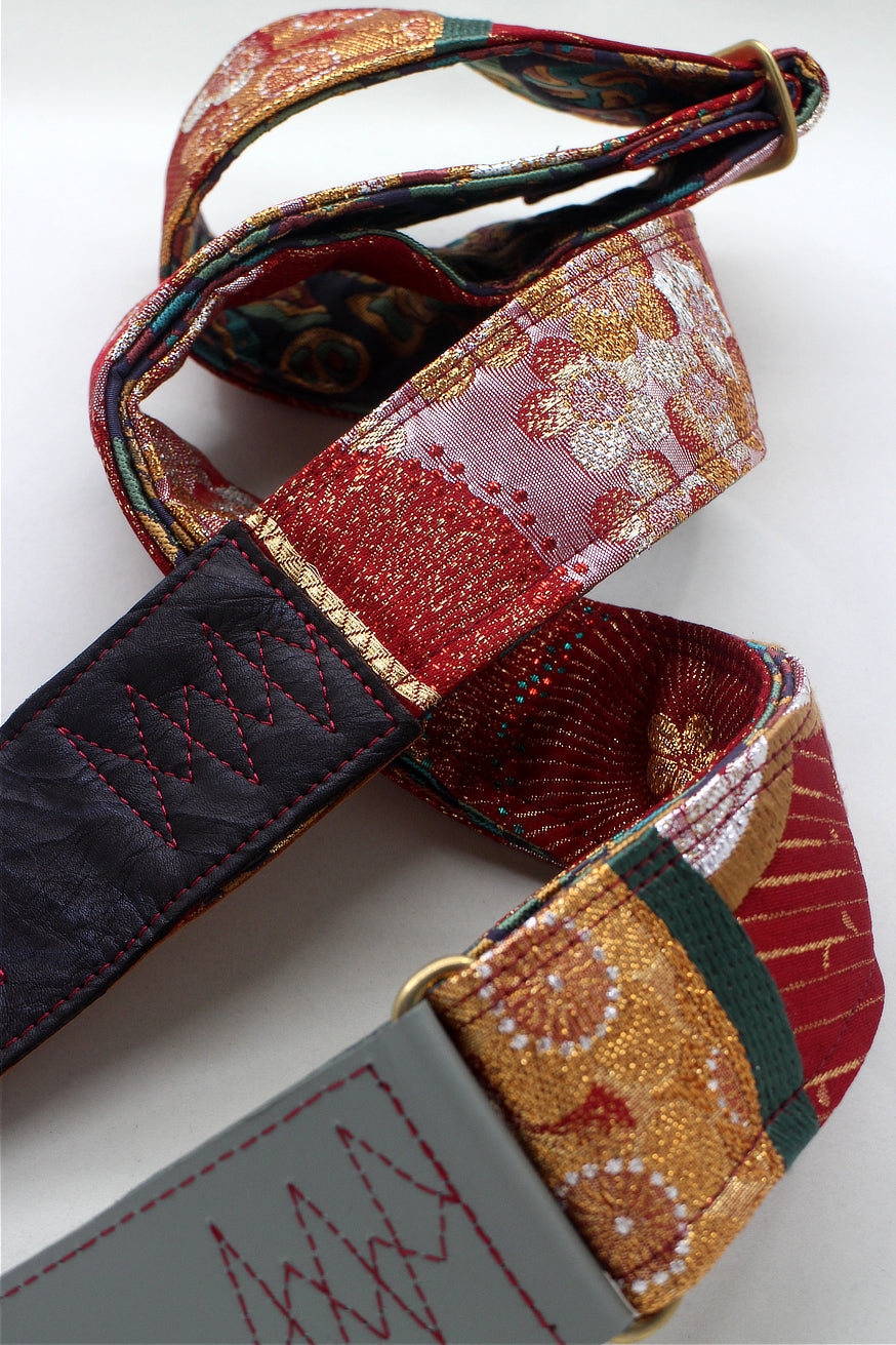 Unique and beautiful guitar strap [SC725142] - hand made in Japan from recycled silk woven kimono obi, leather and brass