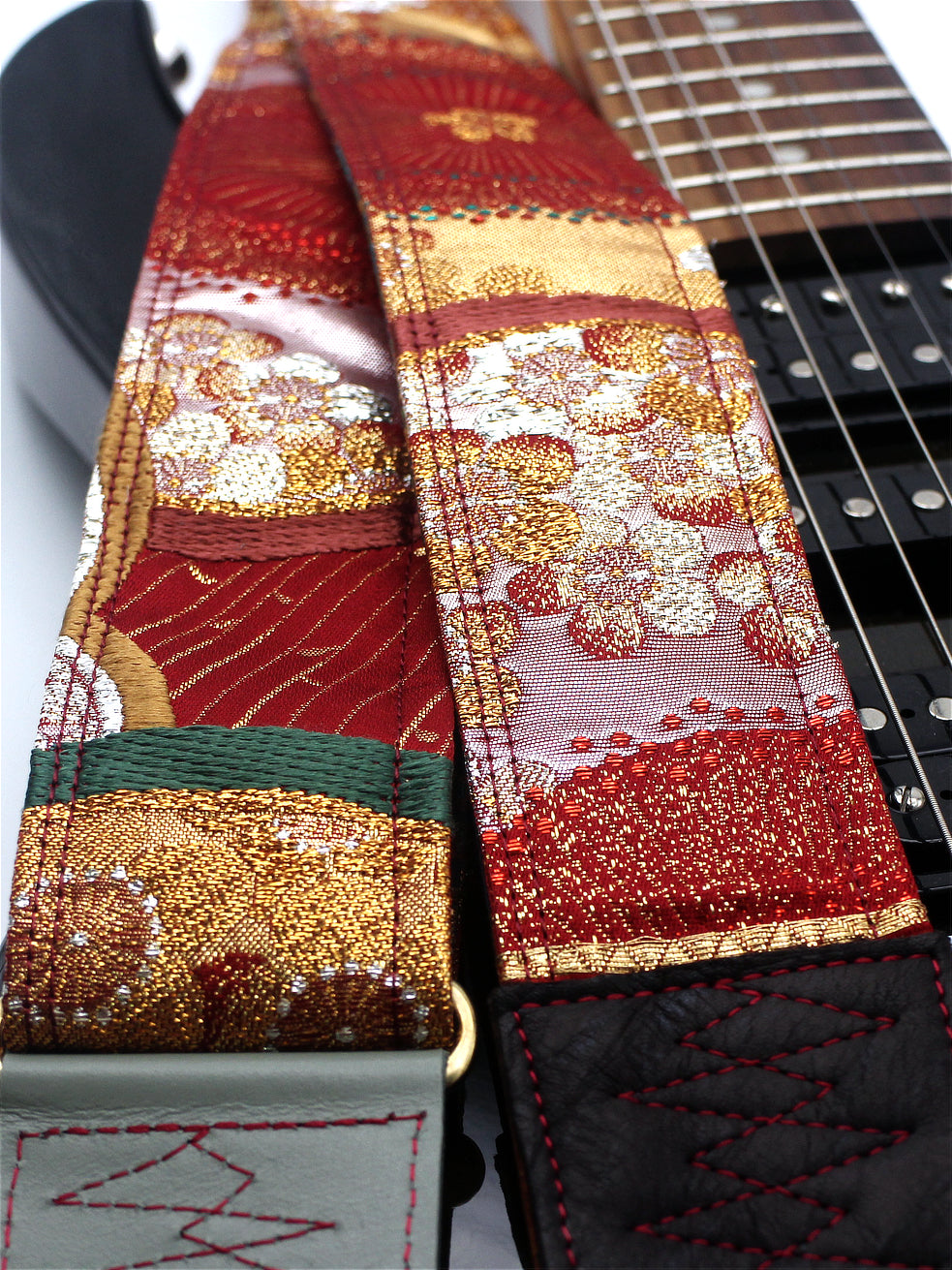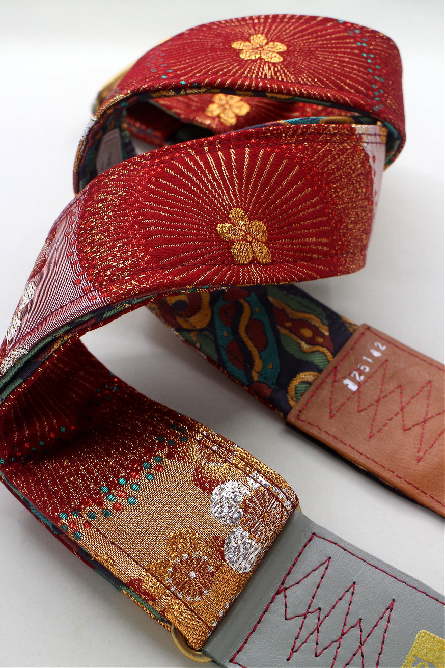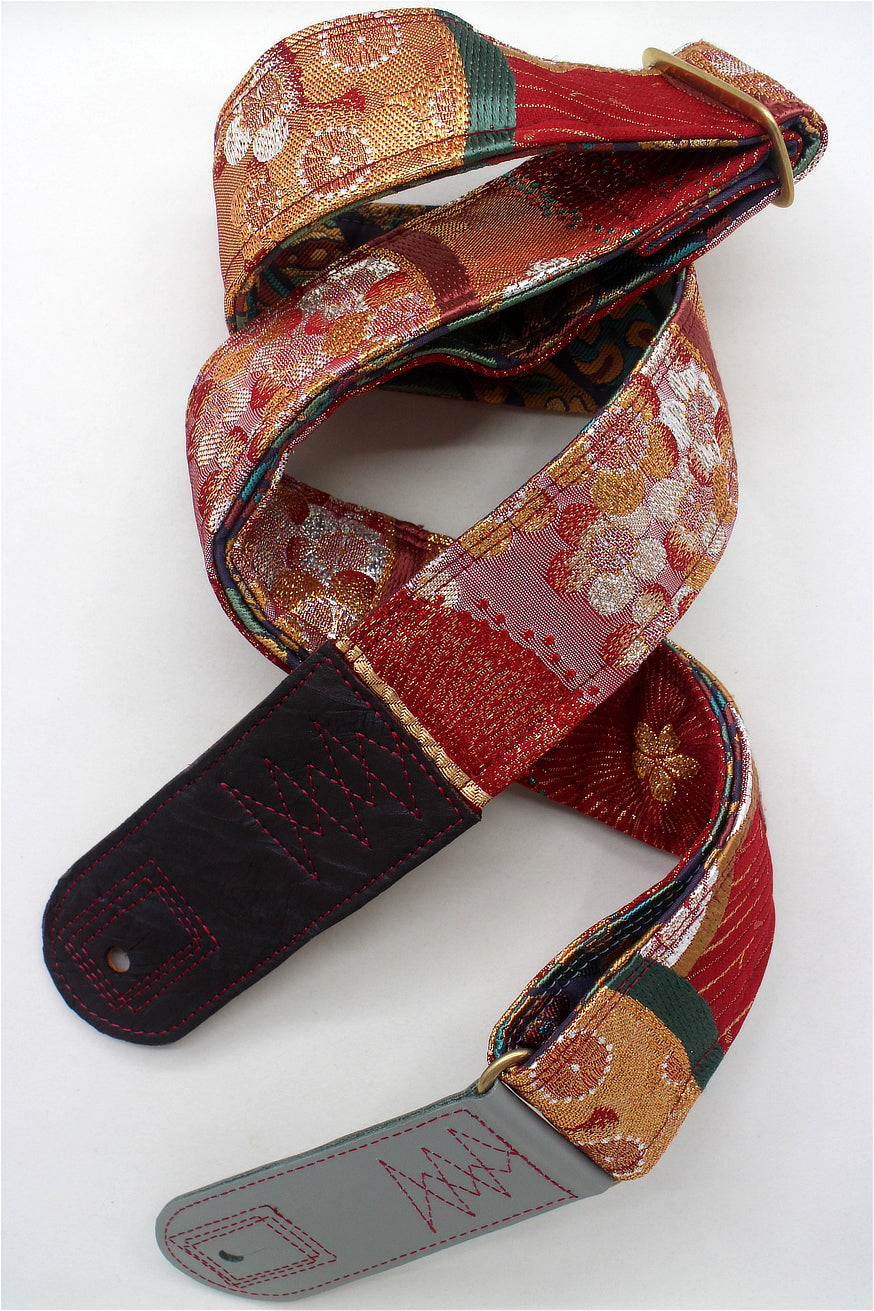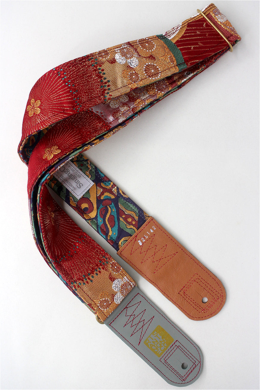 Unique and beautiful guitar strap [SC725142] - hand made in Japan from recycled silk woven kimono obi, leather and brass
