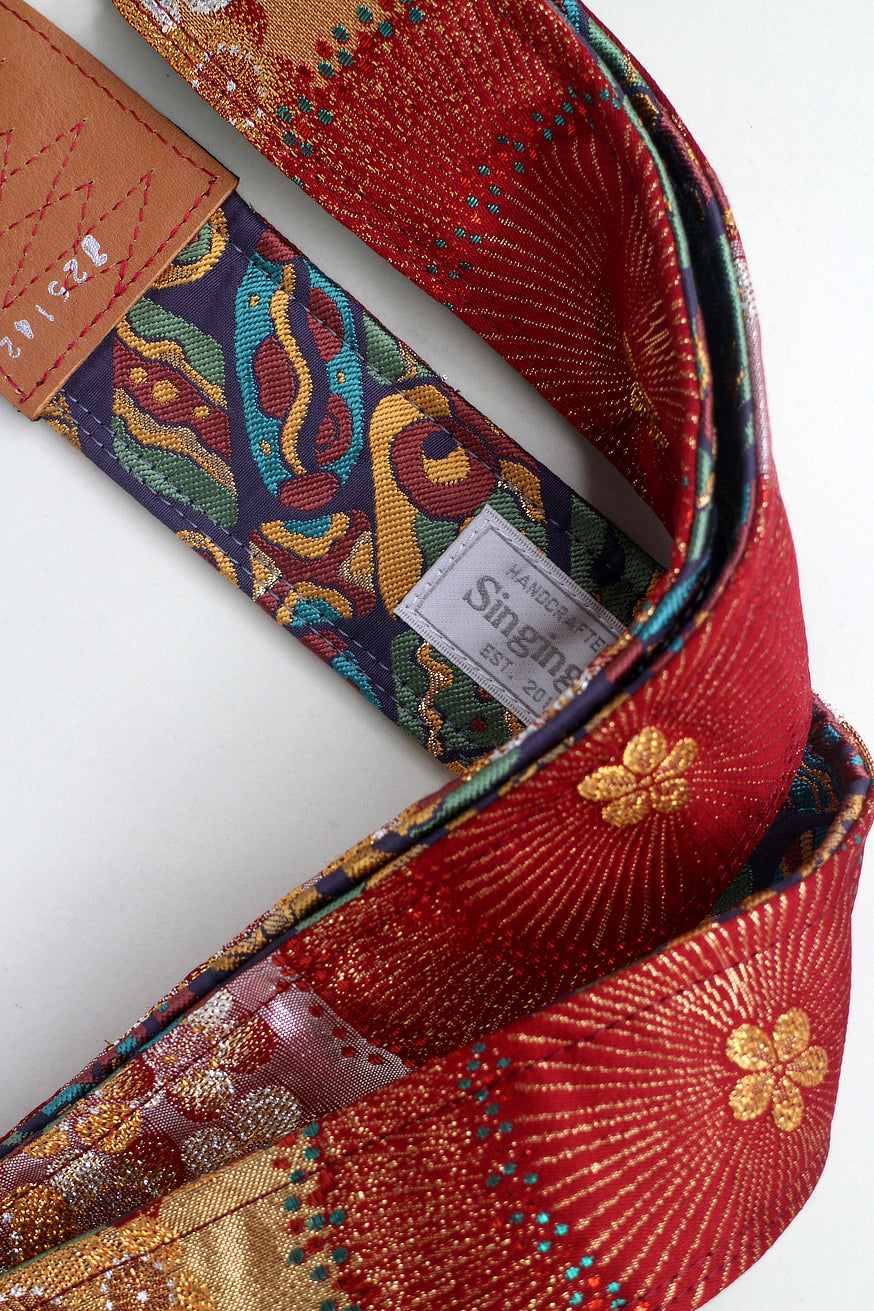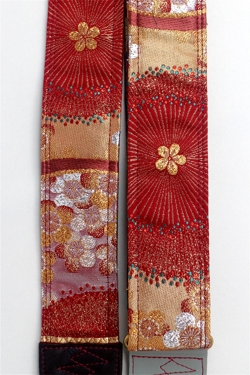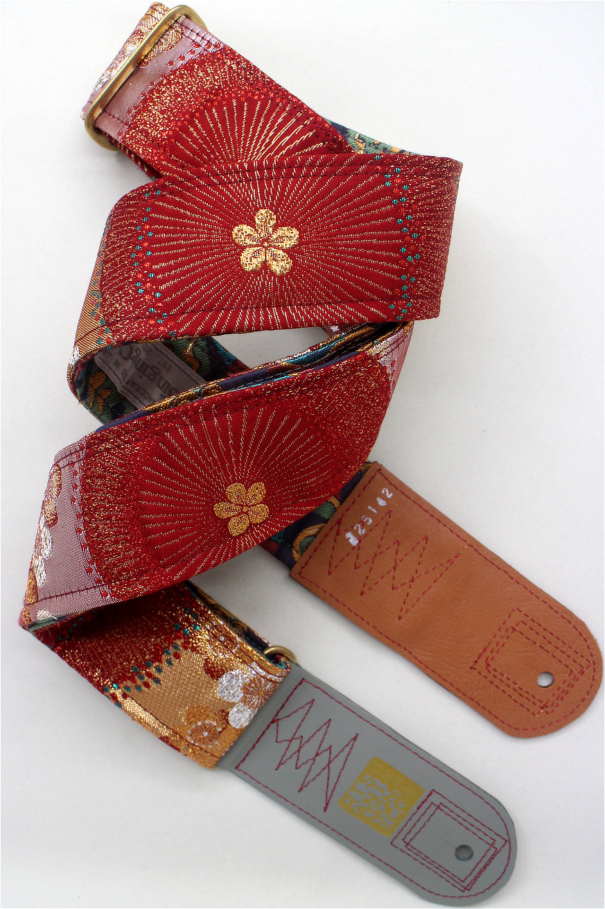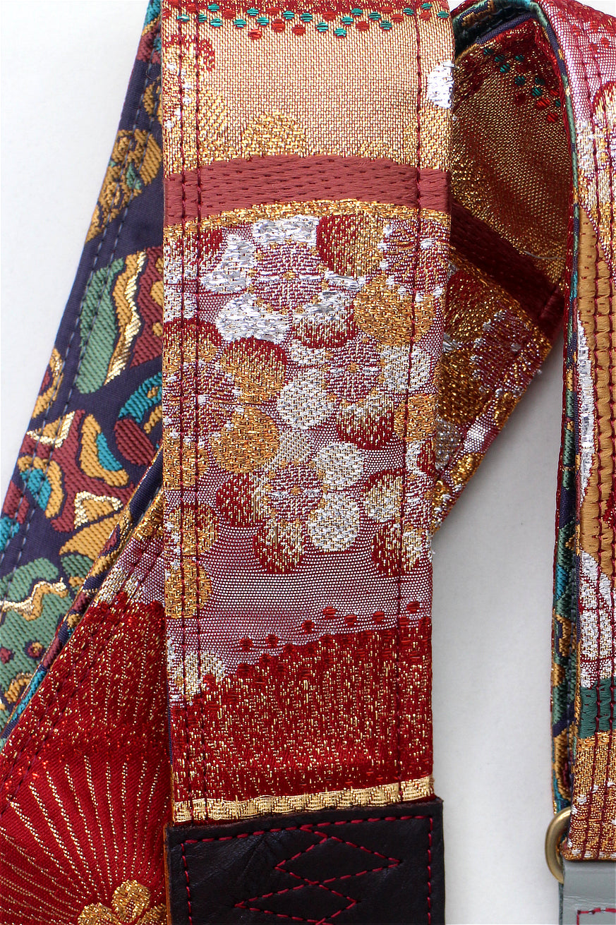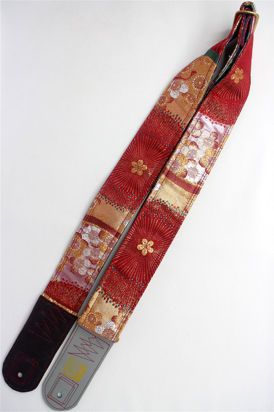 Unique and beautiful guitar strap [SC725142] - hand made in Japan from recycled silk woven kimono obi, leather and brass