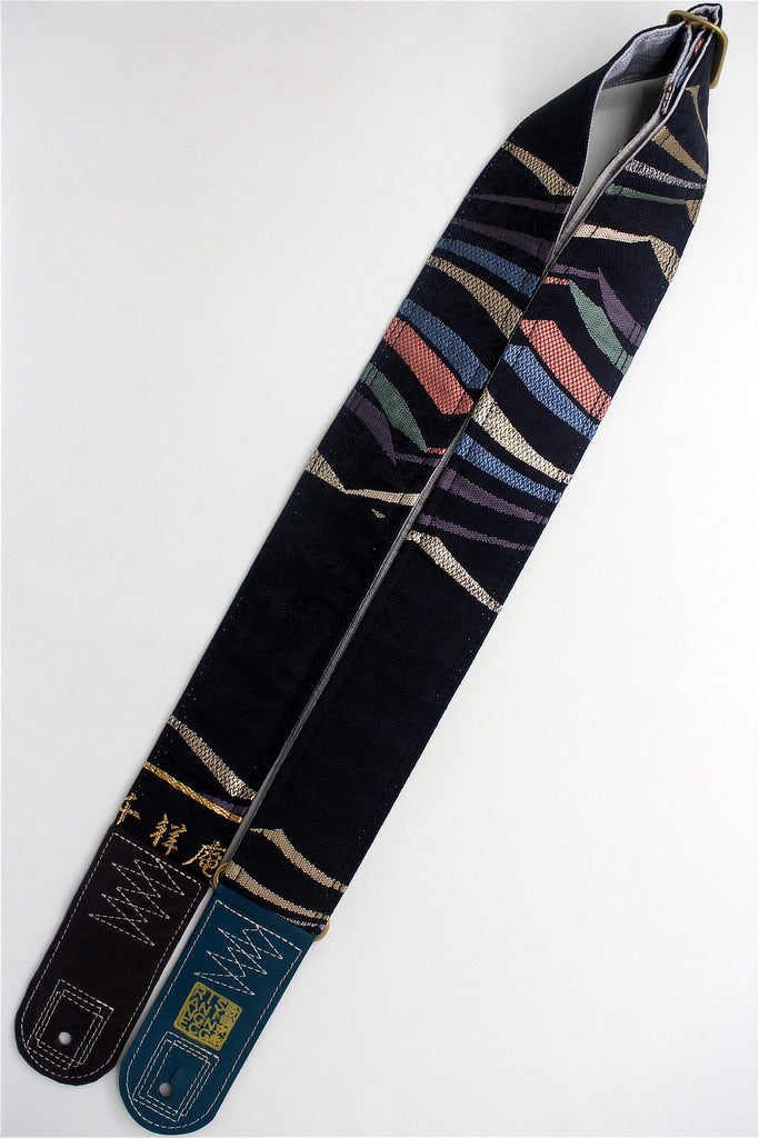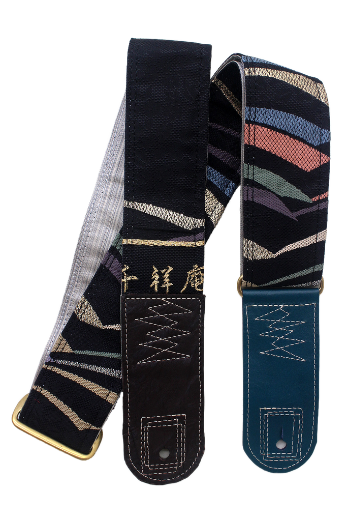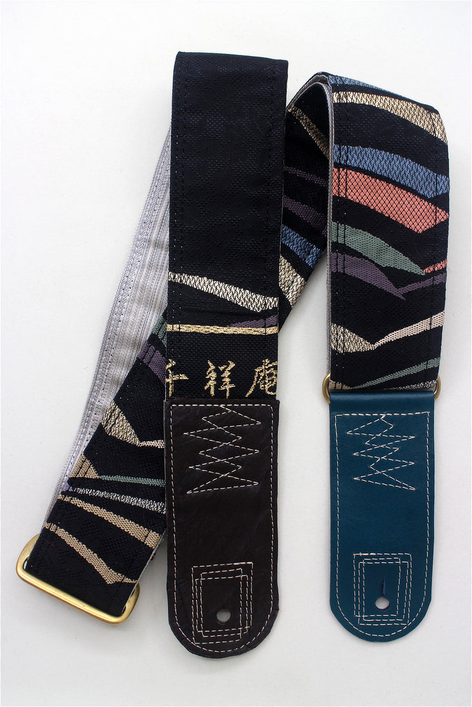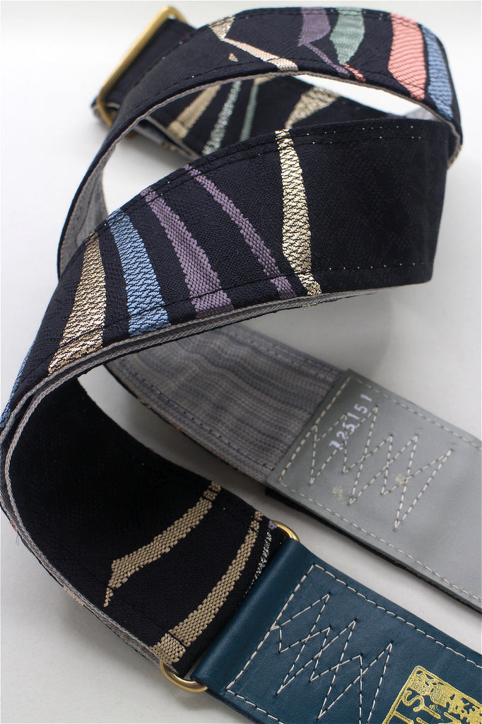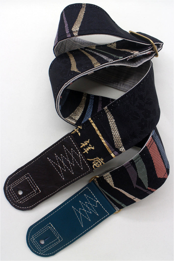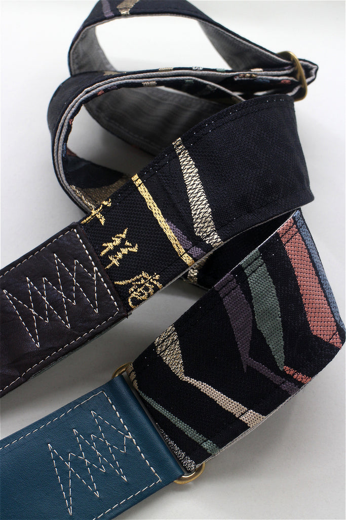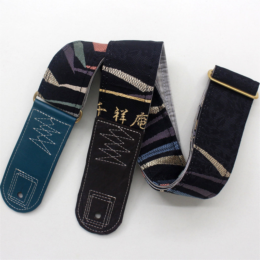 Unique and beautiful guitar strap [SC725151] - hand made in Japan from recycled silk woven kimono obi, leather and brass