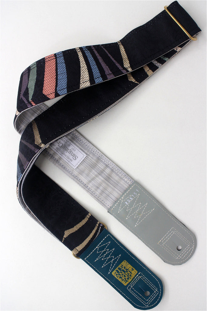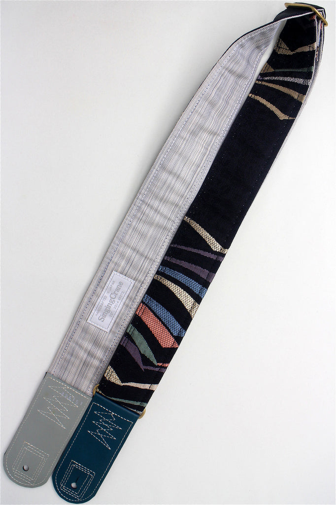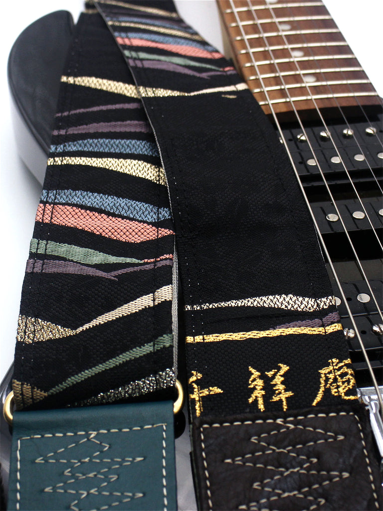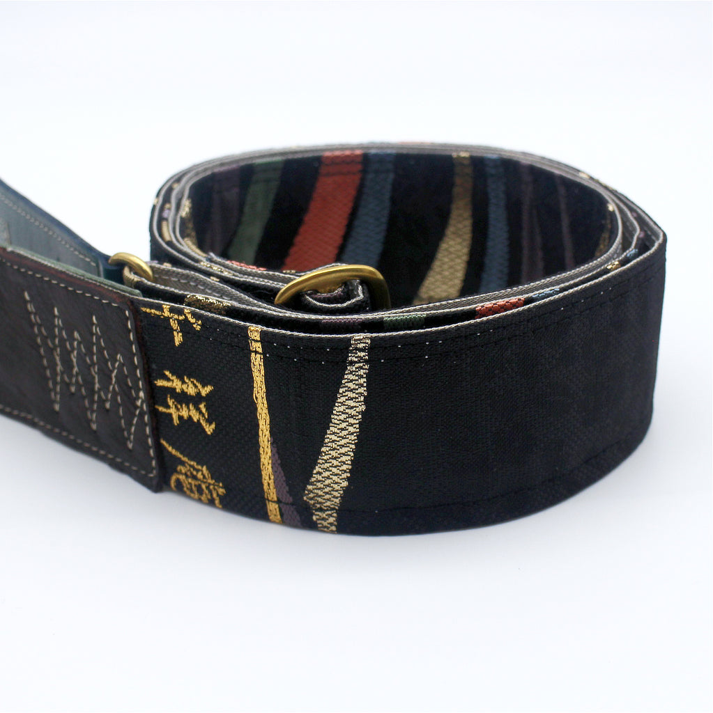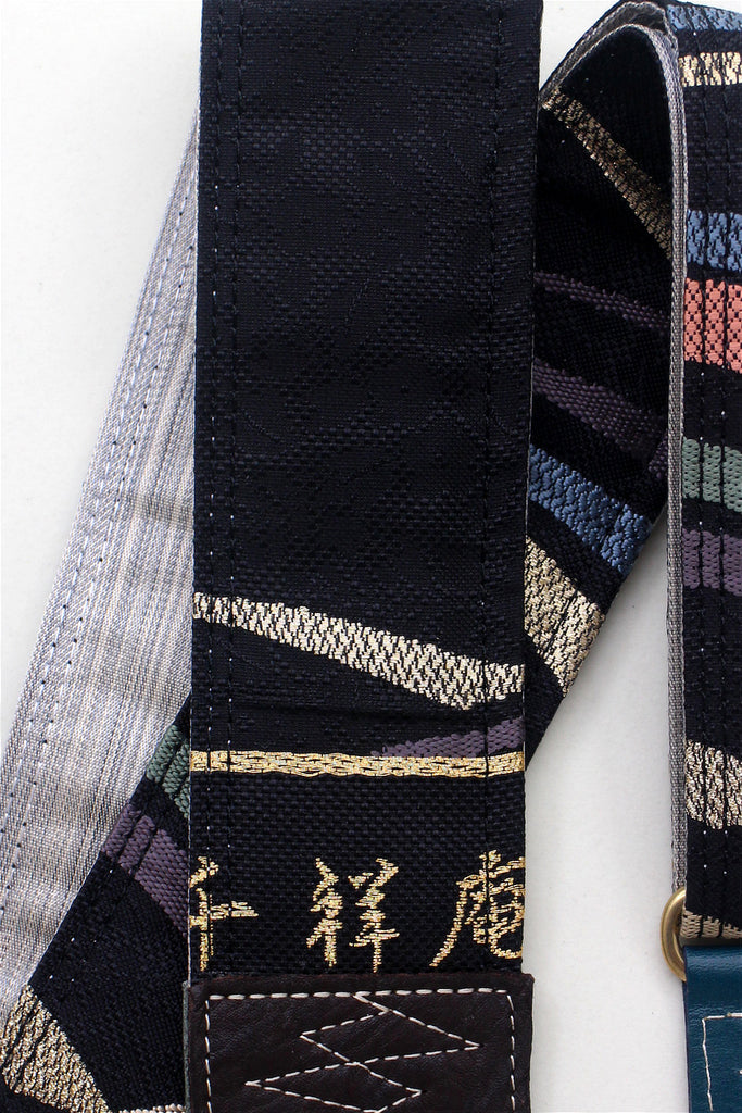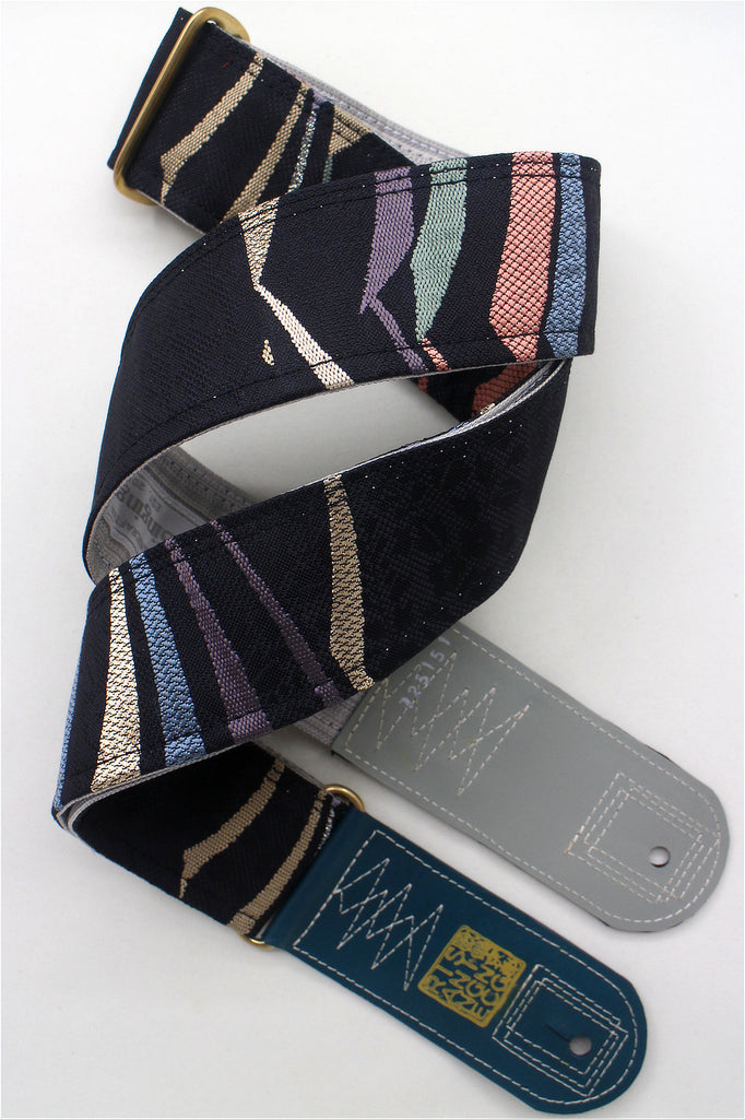 Unique and beautiful guitar strap [SC725151] - hand made in Japan from recycled silk woven kimono obi, leather and brass