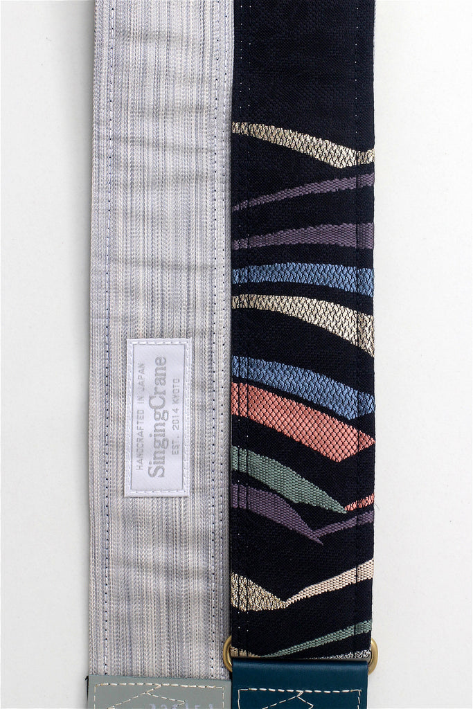 Every Singing Crane strap is one-of-a-kind, one of three variations from the same Obi on the front, and this strap has a grey colour reverse, with hand picked matching leathers and stitching.