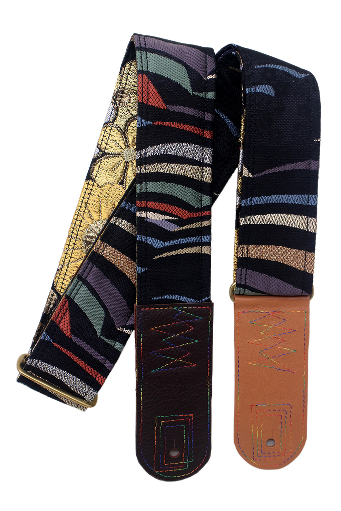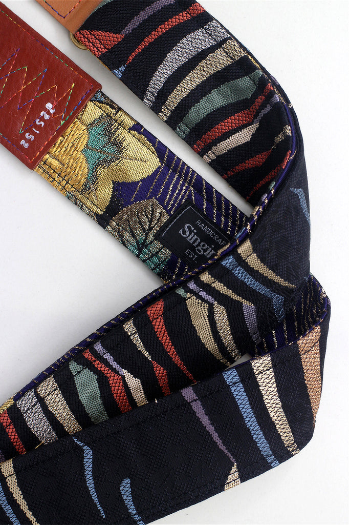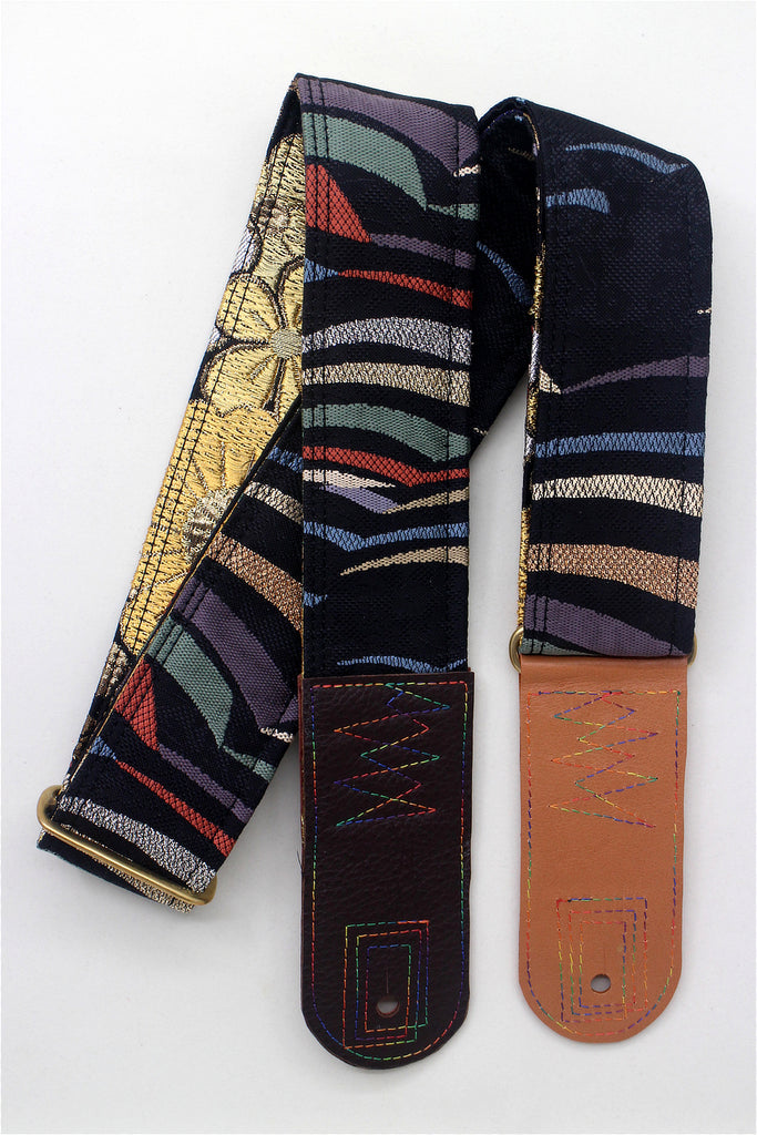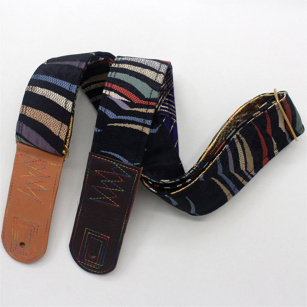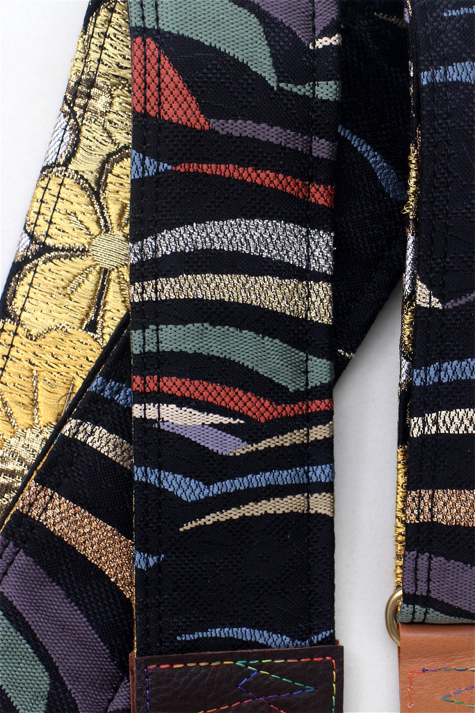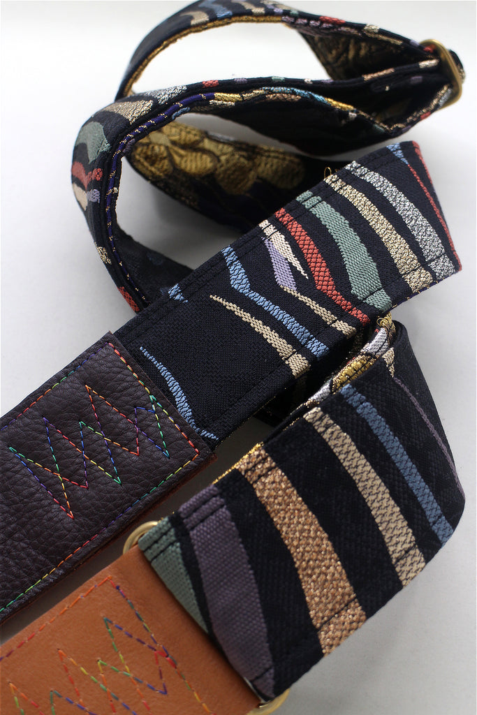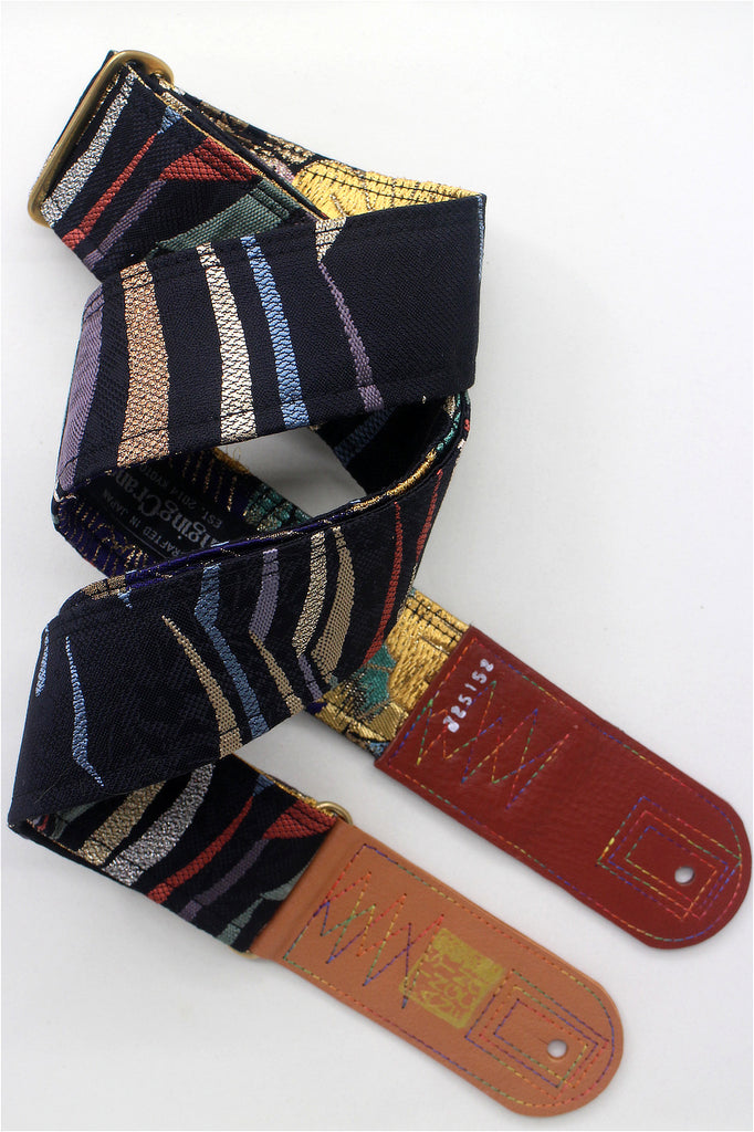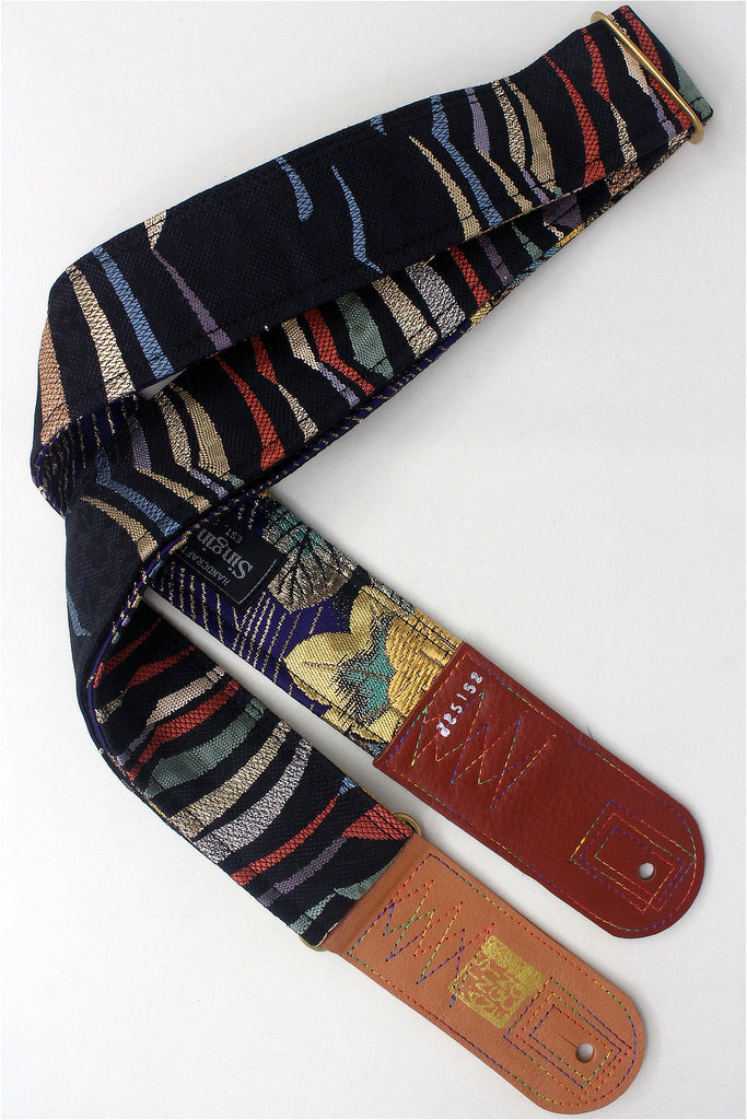Unique and beautiful guitar strap [SC725152] - hand made in Japan from recycled silk woven kimono obi, leather and brass