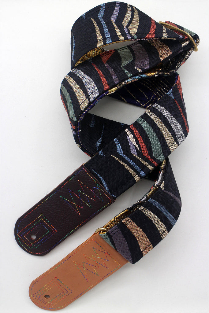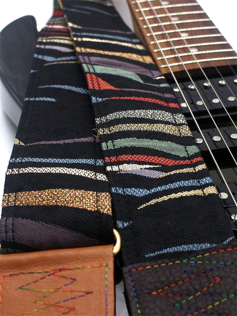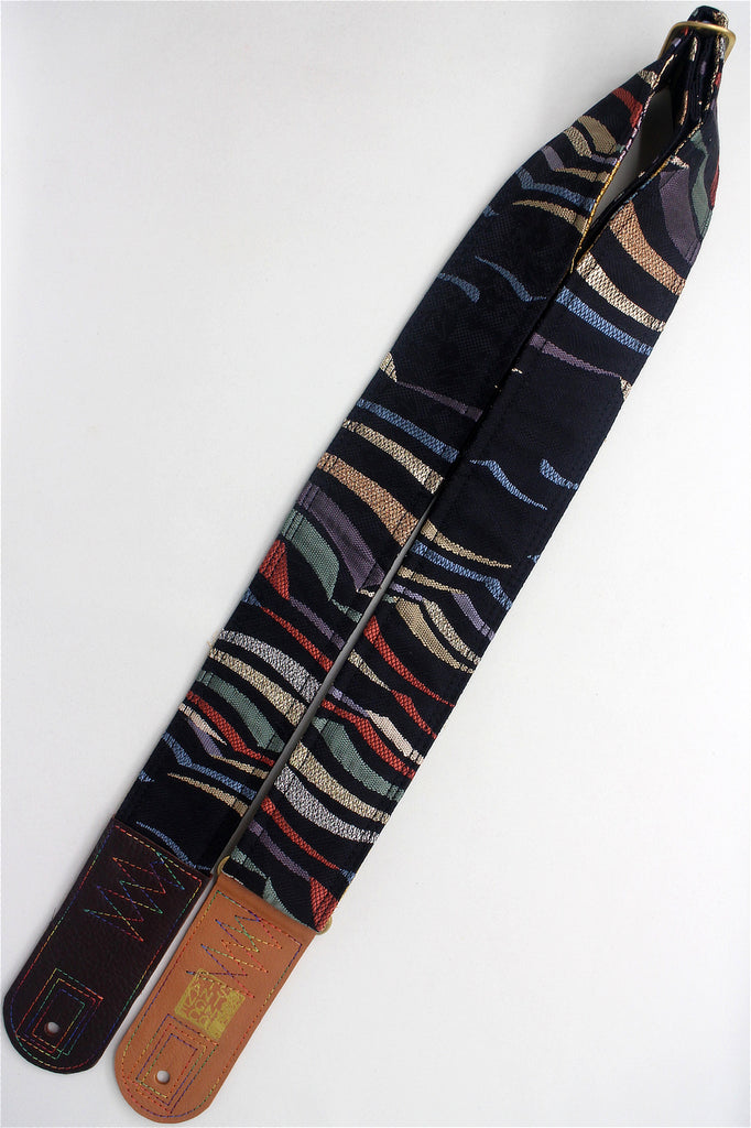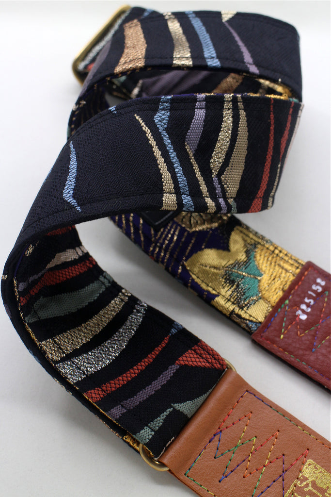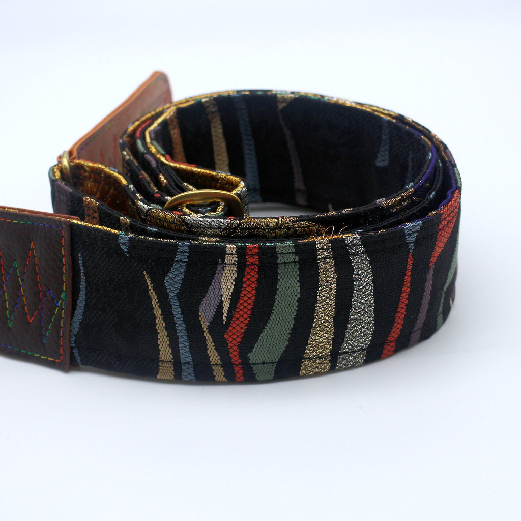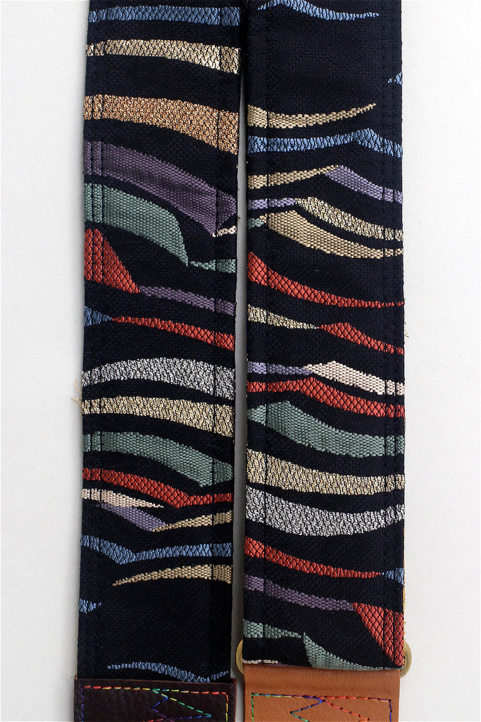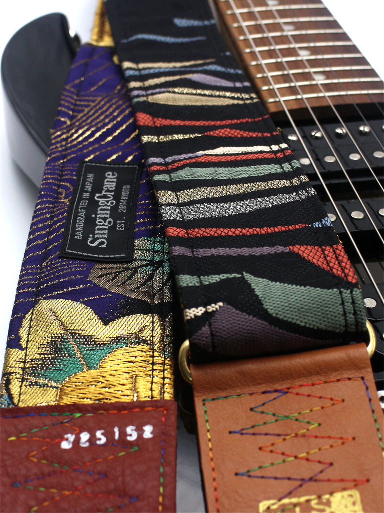Unique and beautiful guitar strap [SC725152] - hand made in Japan from recycled silk woven kimono obi, leather and brass