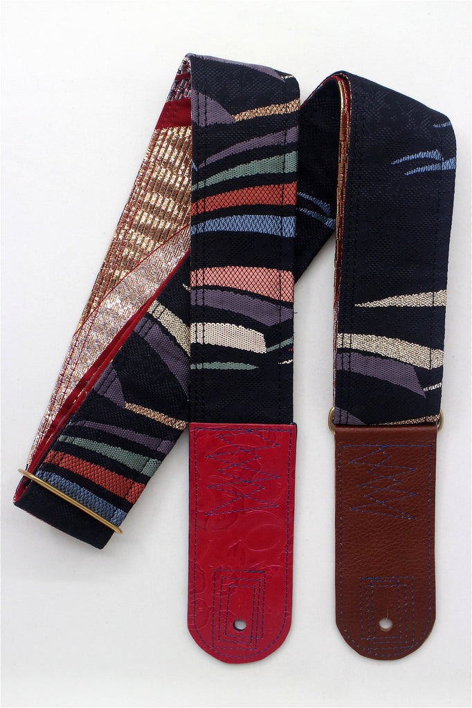 Unique and beautiful guitar strap [SC725153] - hand made in Japan from recycled silk woven kimono obi, leather and brass