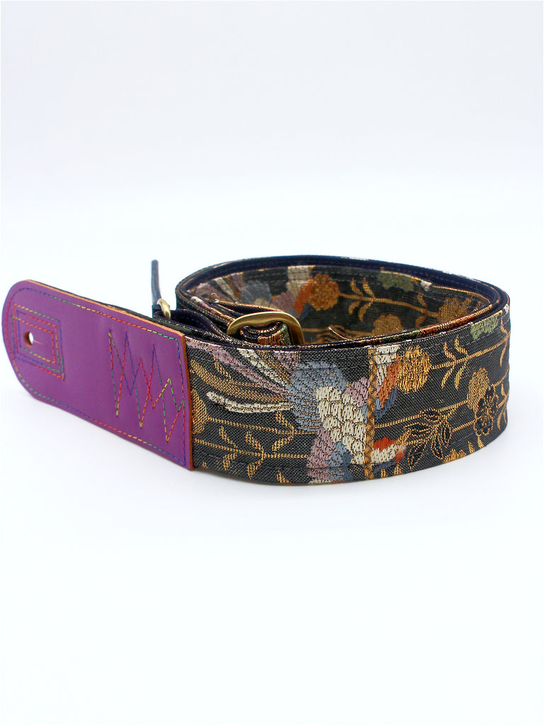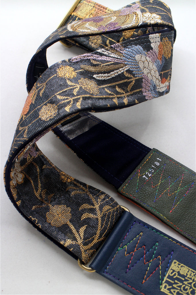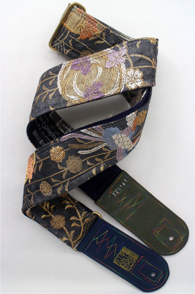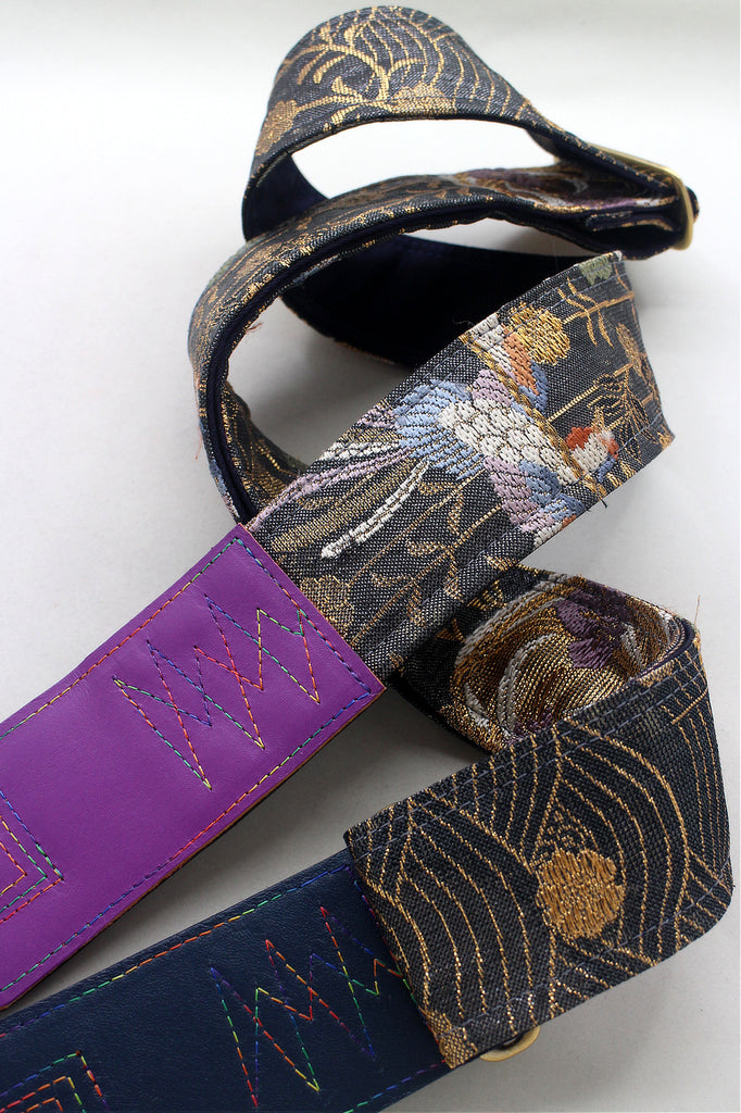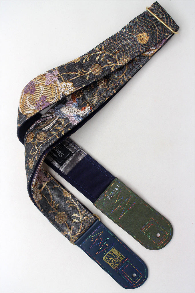 Unique and beautiful guitar strap [SC725181] - hand made in Japan from recycled silk woven kimono obi, leather and brass