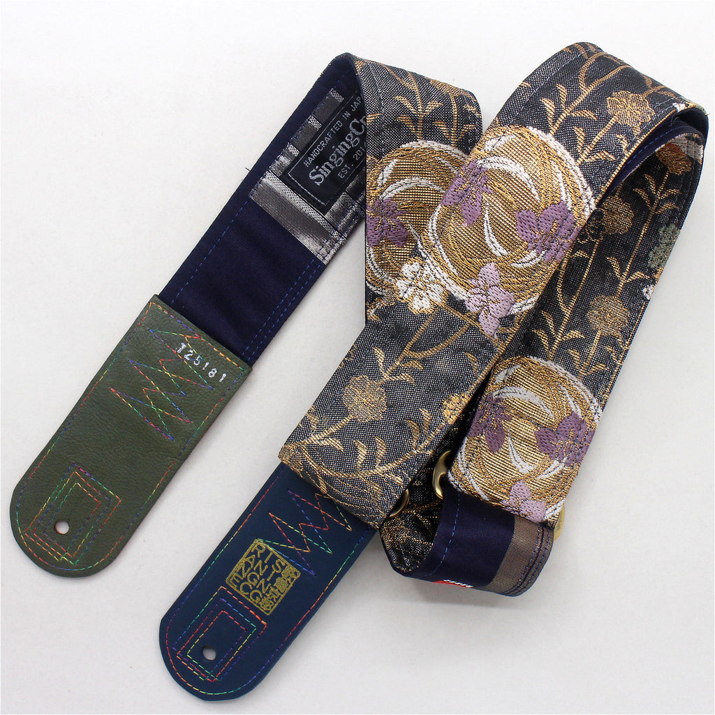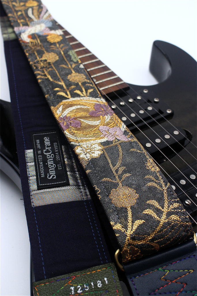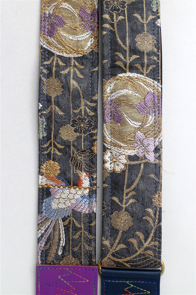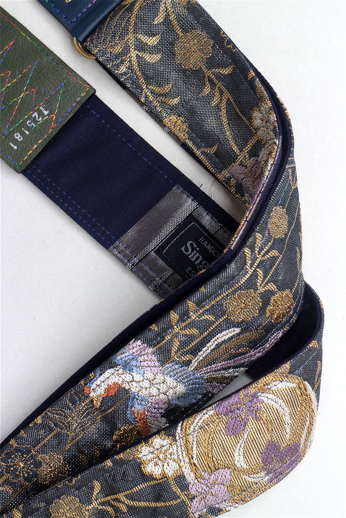 Unique and beautiful guitar strap [SC725181] - hand made in Japan from recycled silk woven kimono obi, leather and brass
