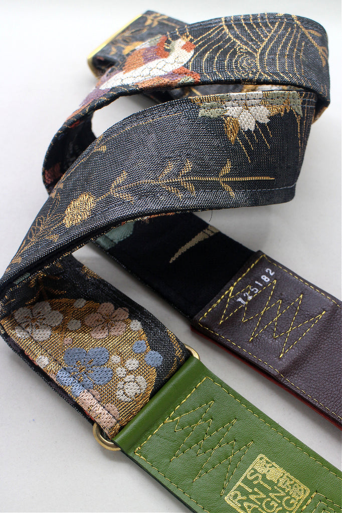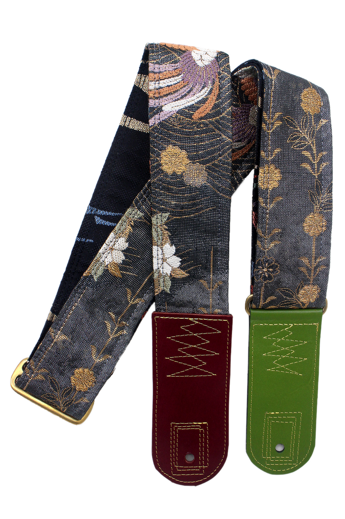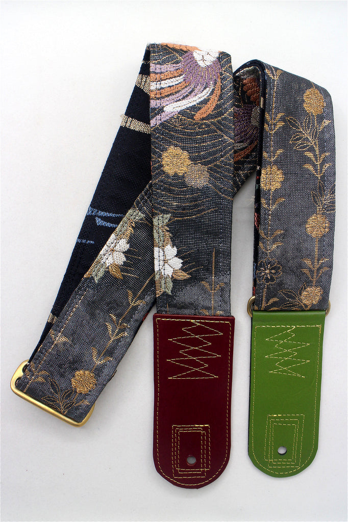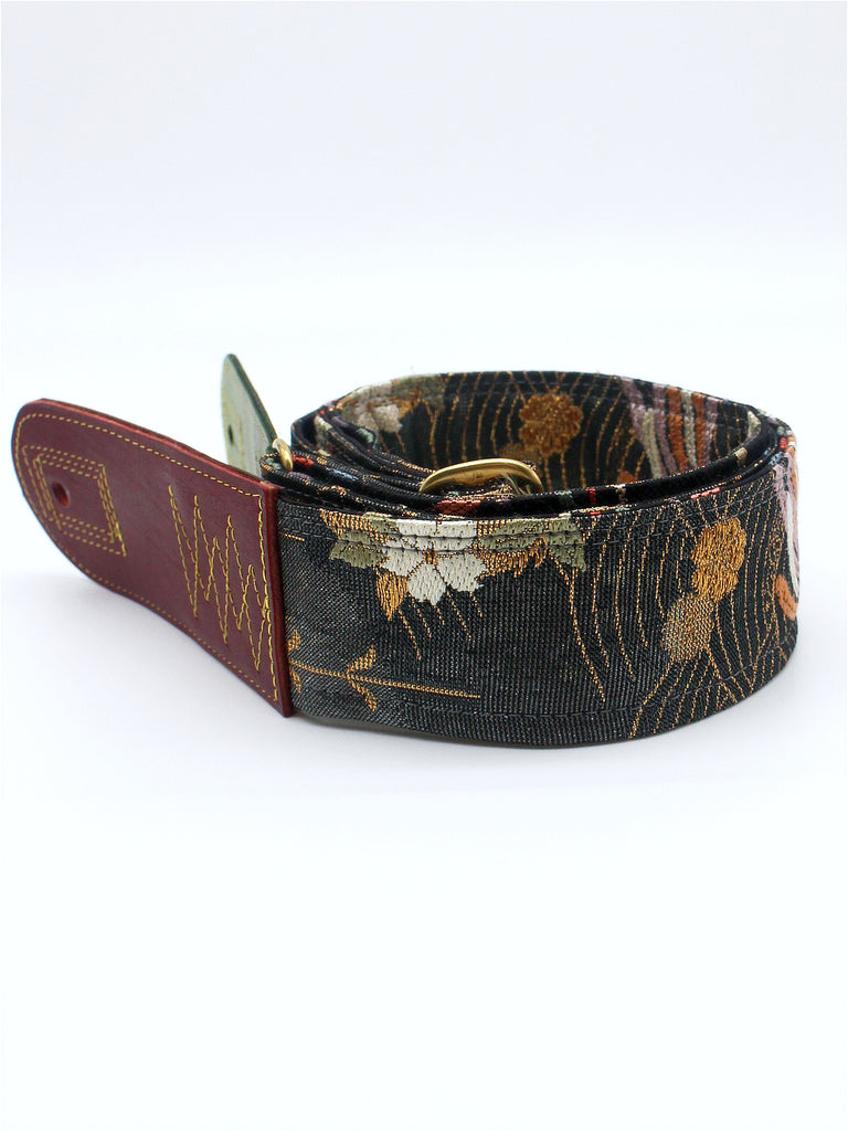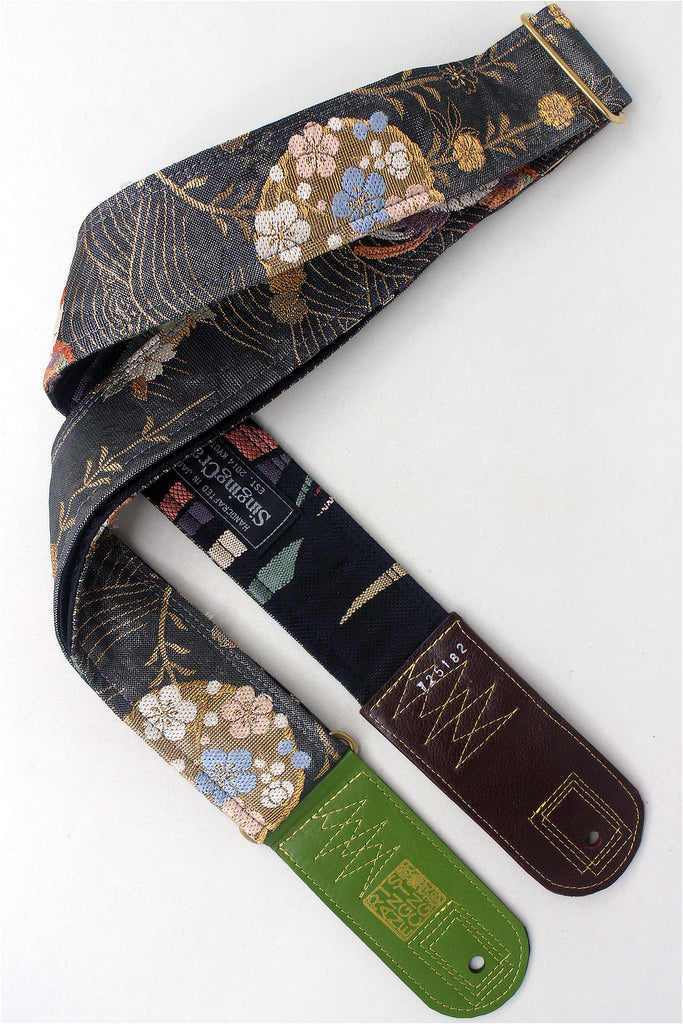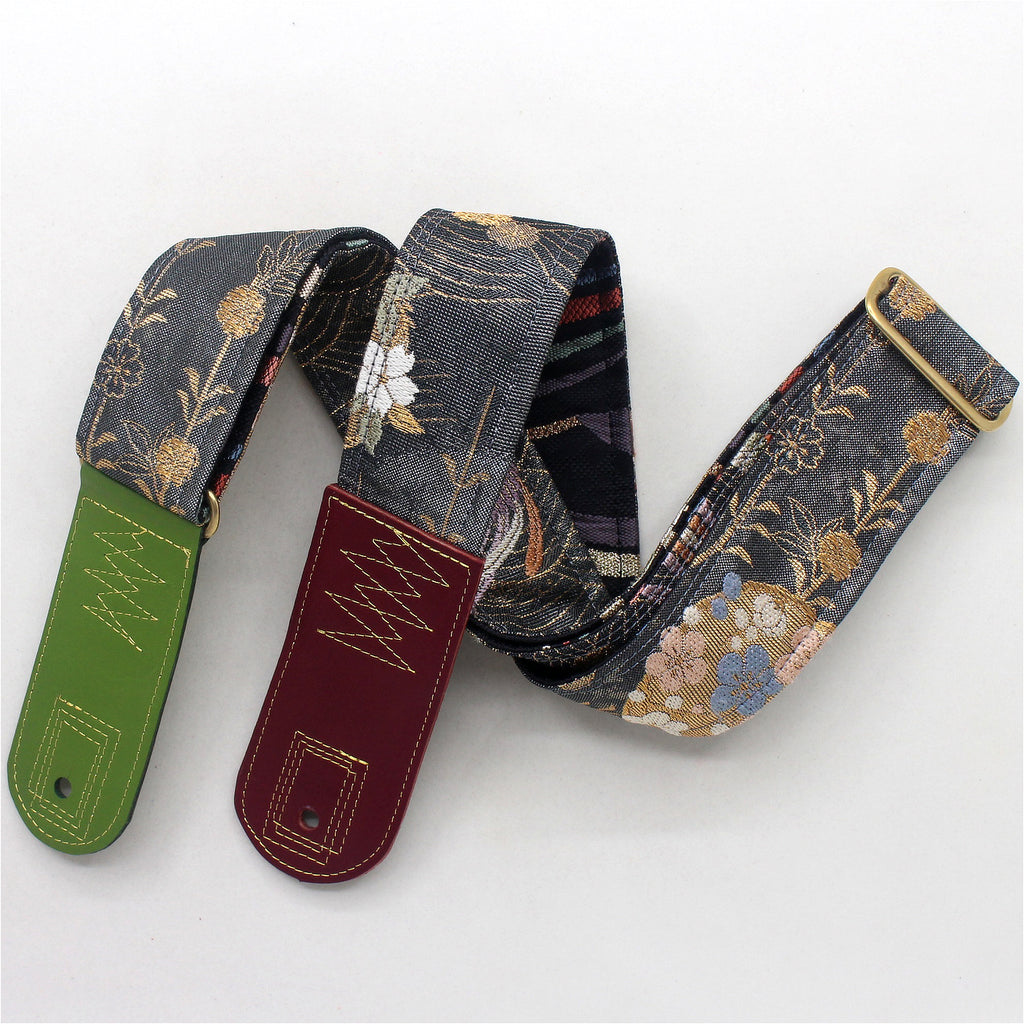 Unique and beautiful guitar strap [SC725182] - hand made in Japan from recycled silk woven kimono obi, leather and brass