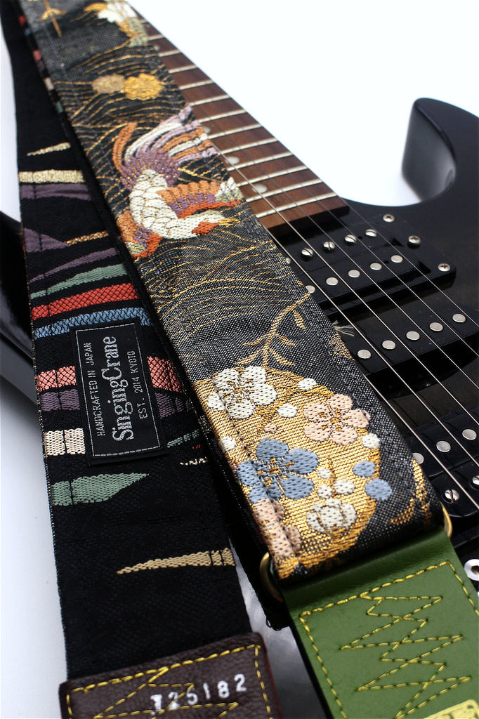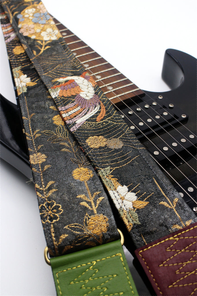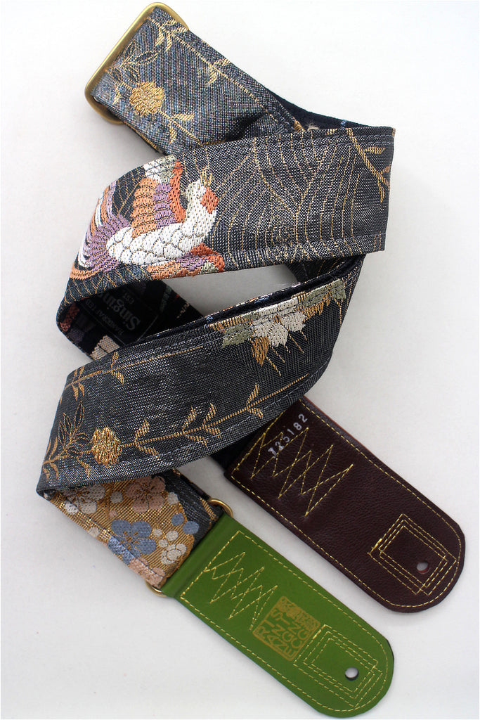 Brand new Singing Crane handmade silk kimono obi guitar strap