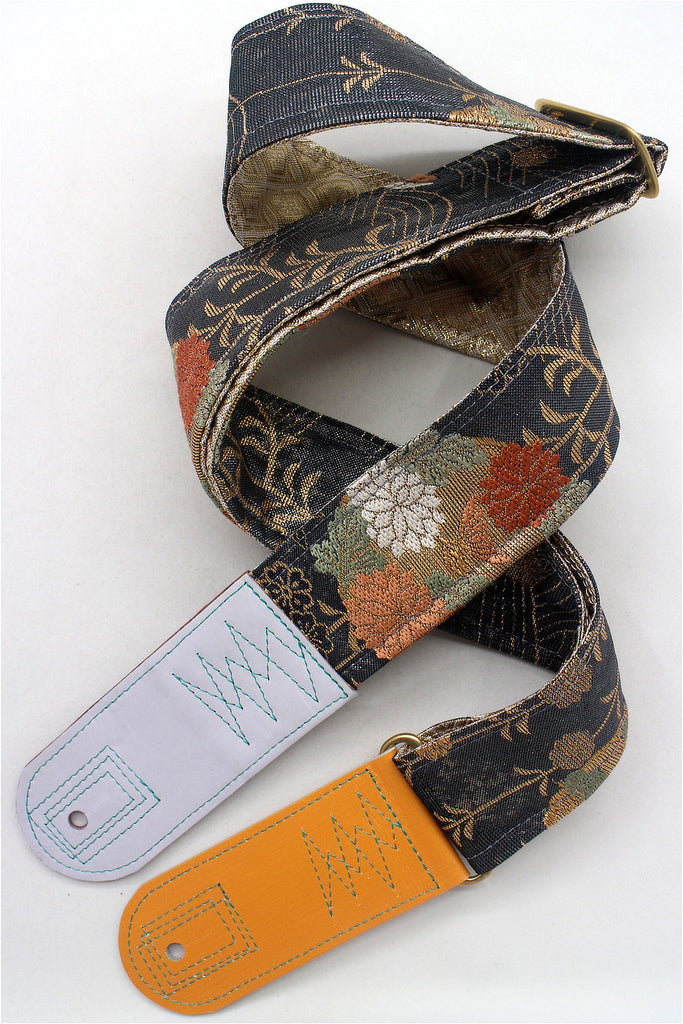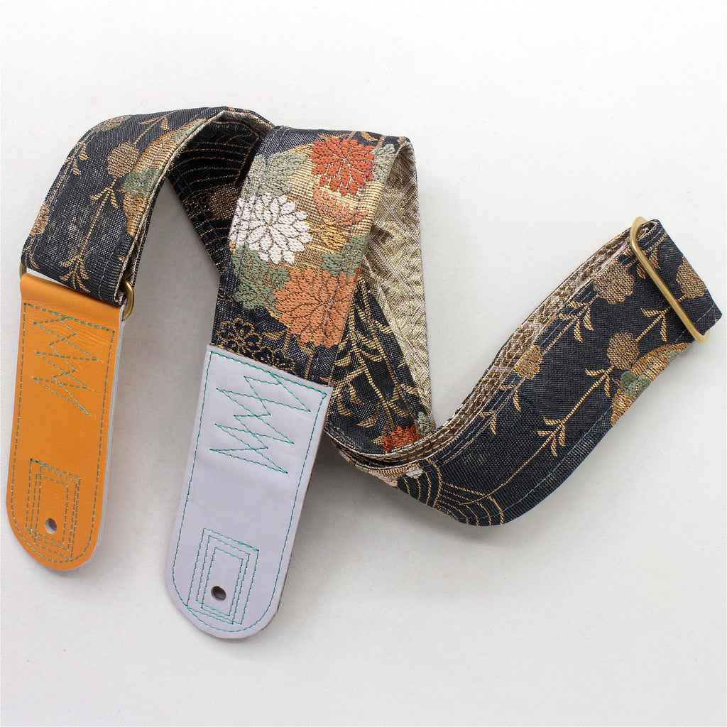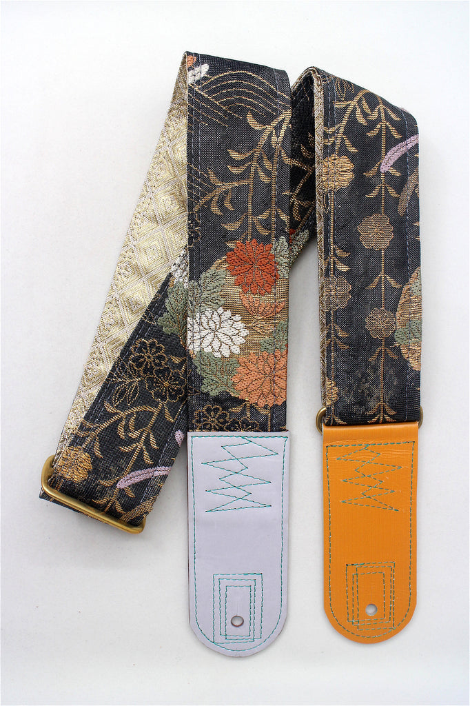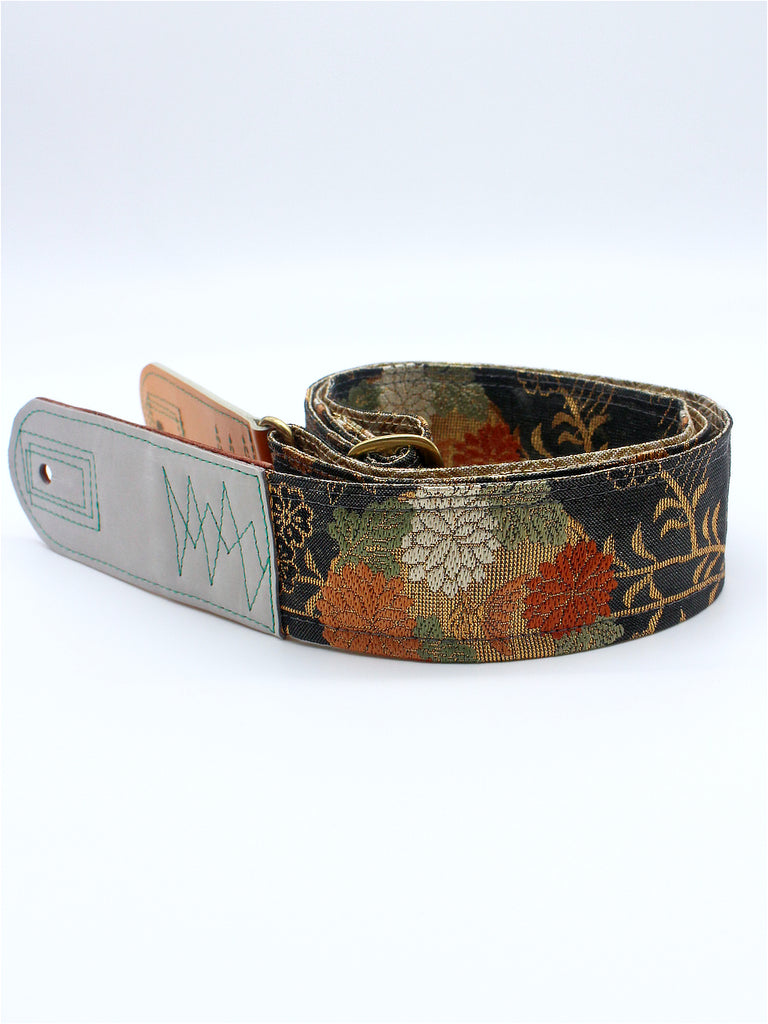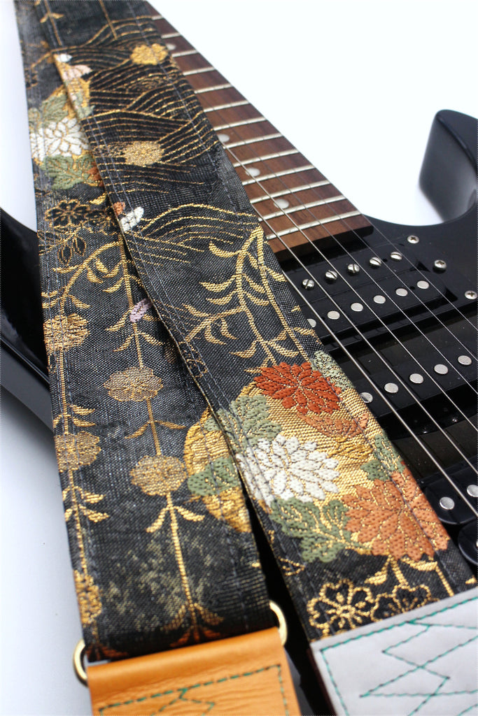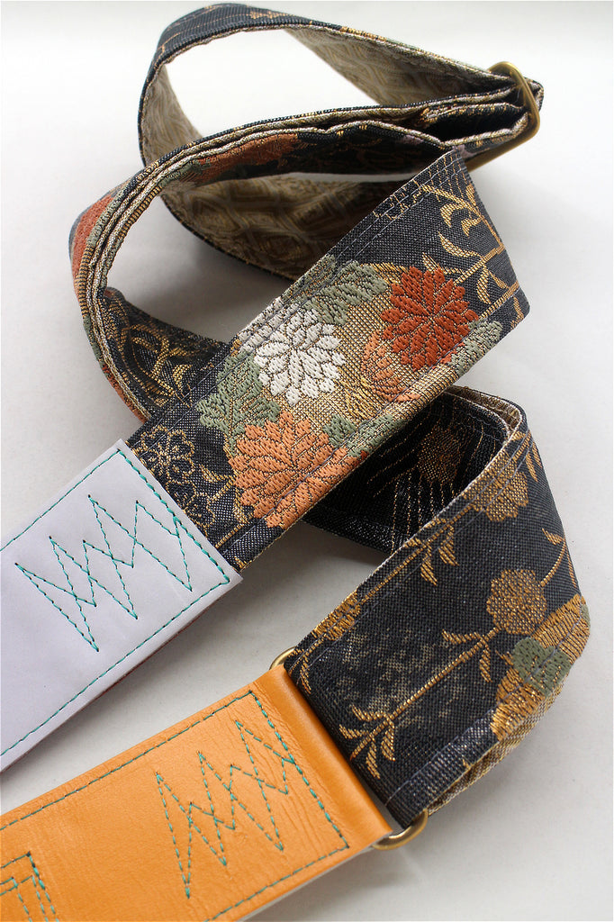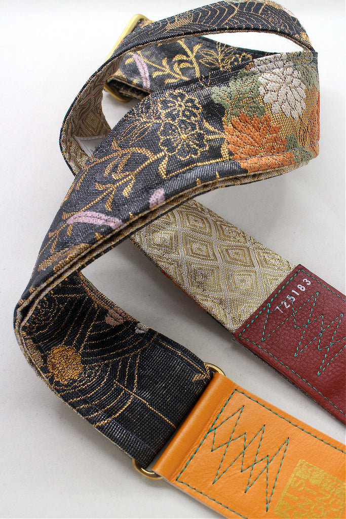 Unique and beautiful guitar strap [SC725183] - hand made in Japan from recycled silk woven kimono obi, leather and brass
