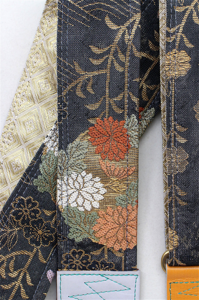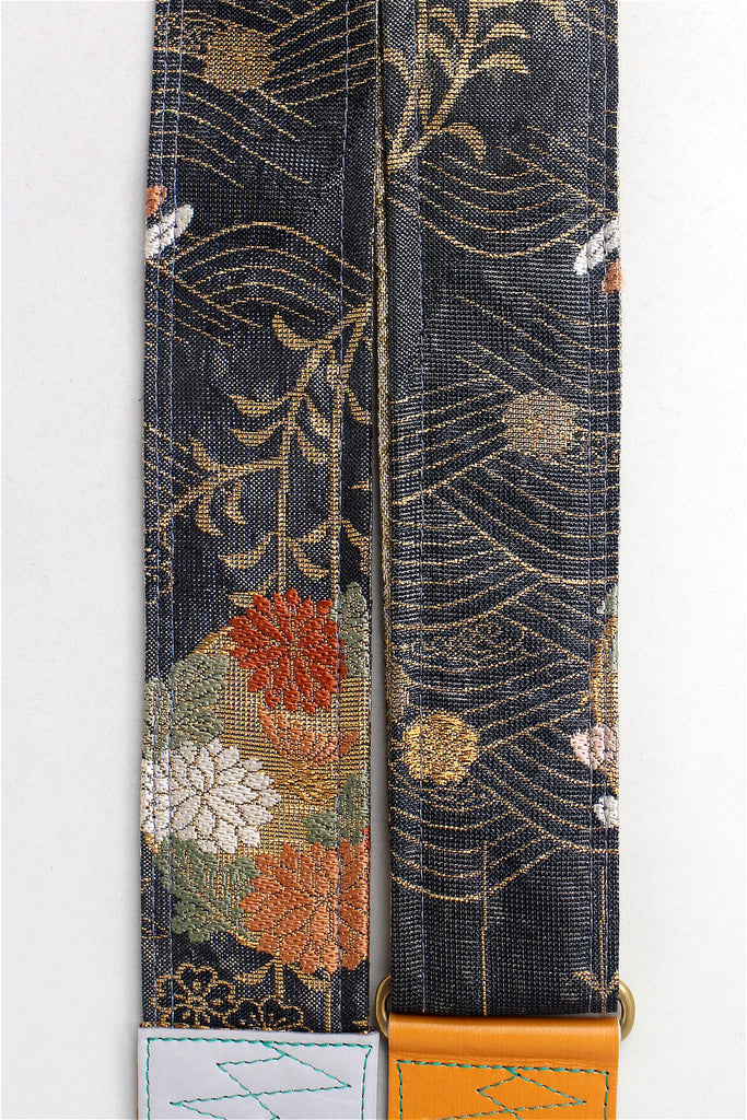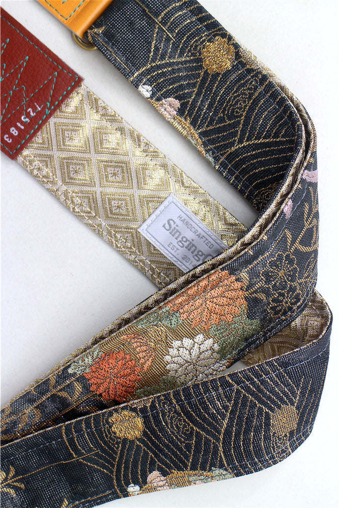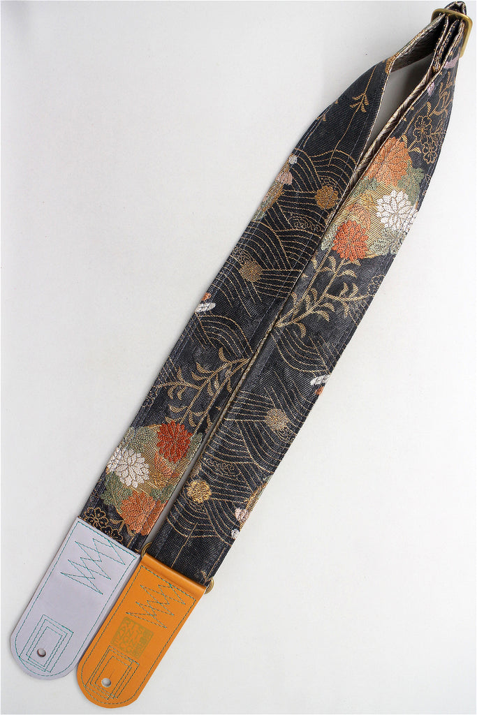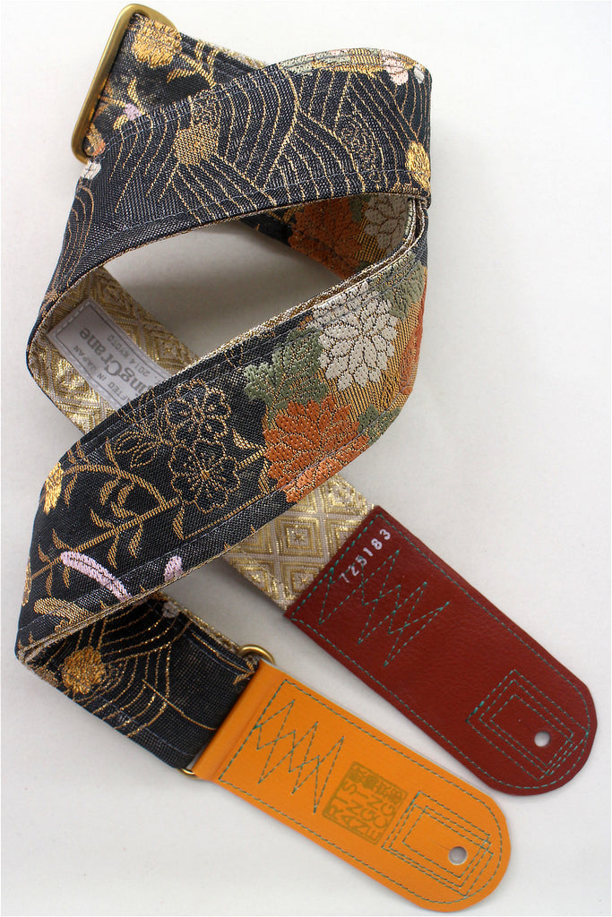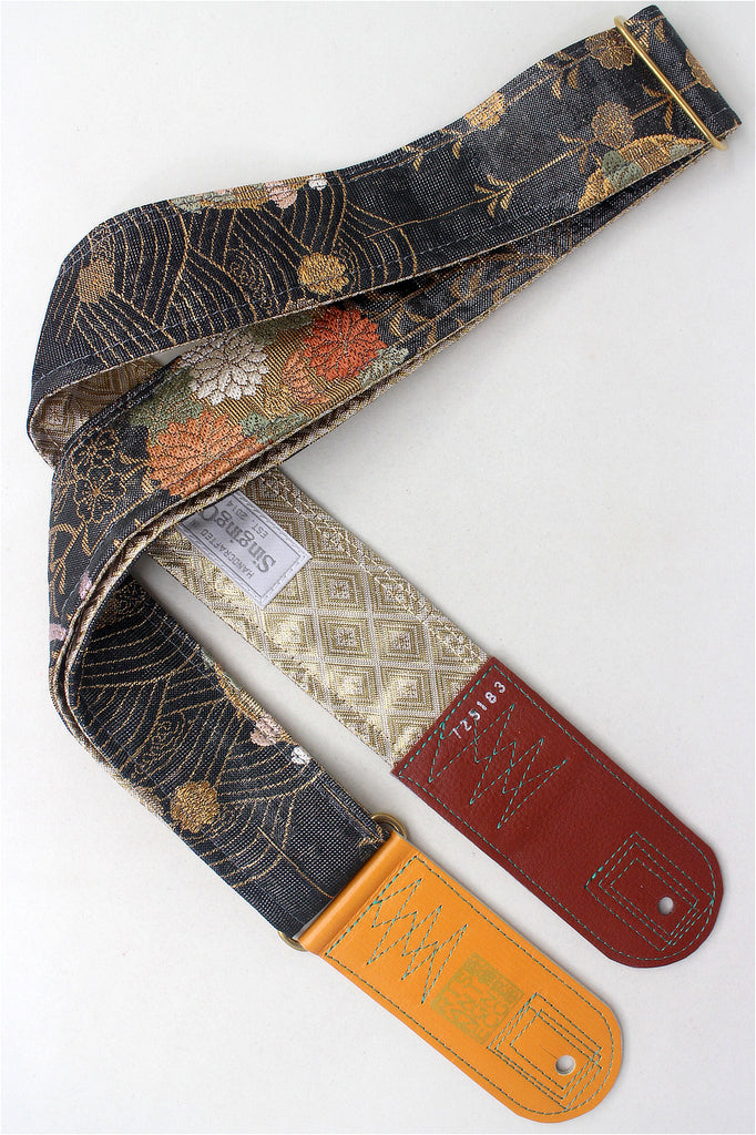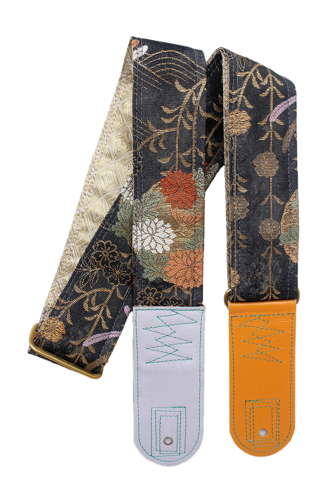 Unique and beautiful guitar strap [SC725183] - hand made in Japan from recycled silk woven kimono obi, leather and brass