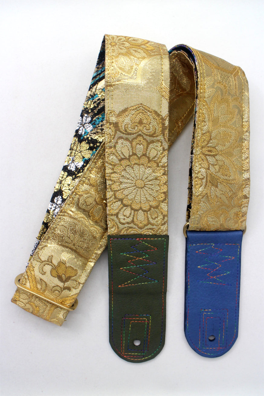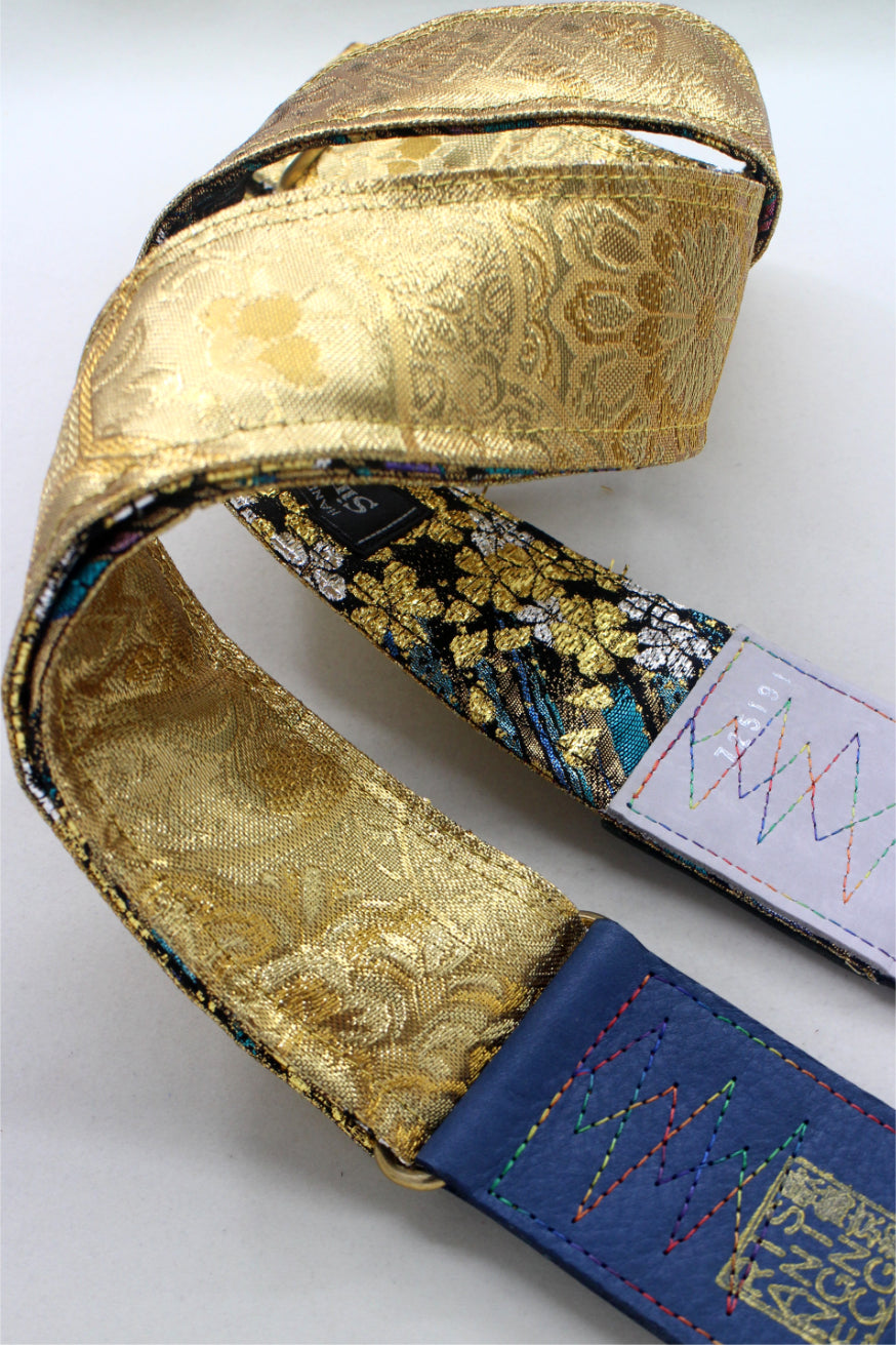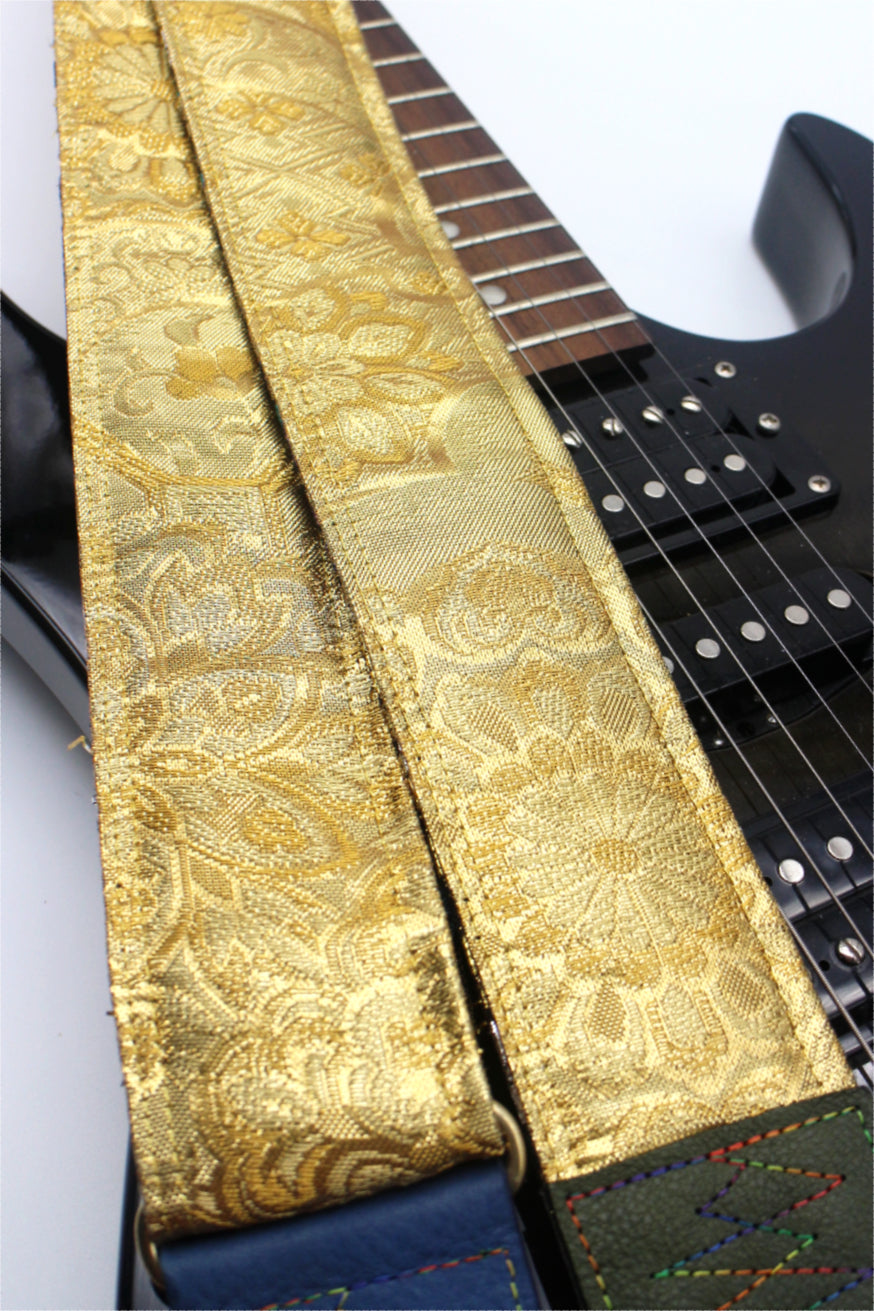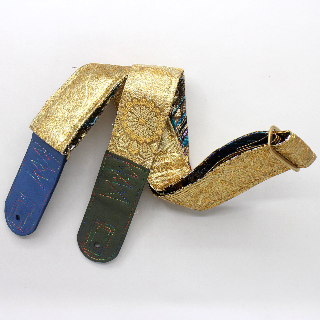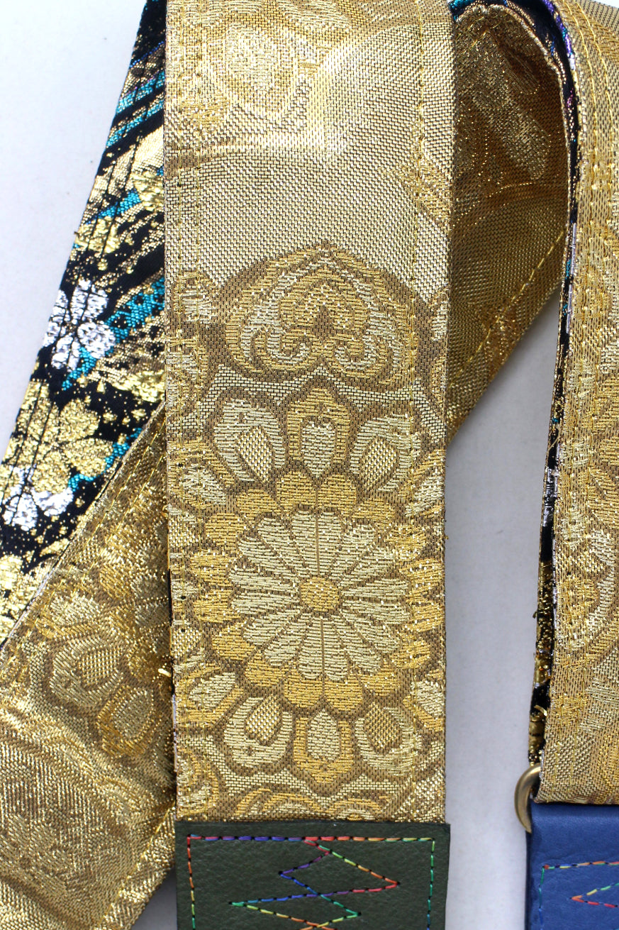 Unique and beautiful guitar strap [SC725191] - hand made in Japan from recycled silk woven kimono obi, leather and brass