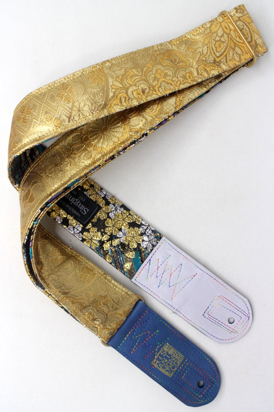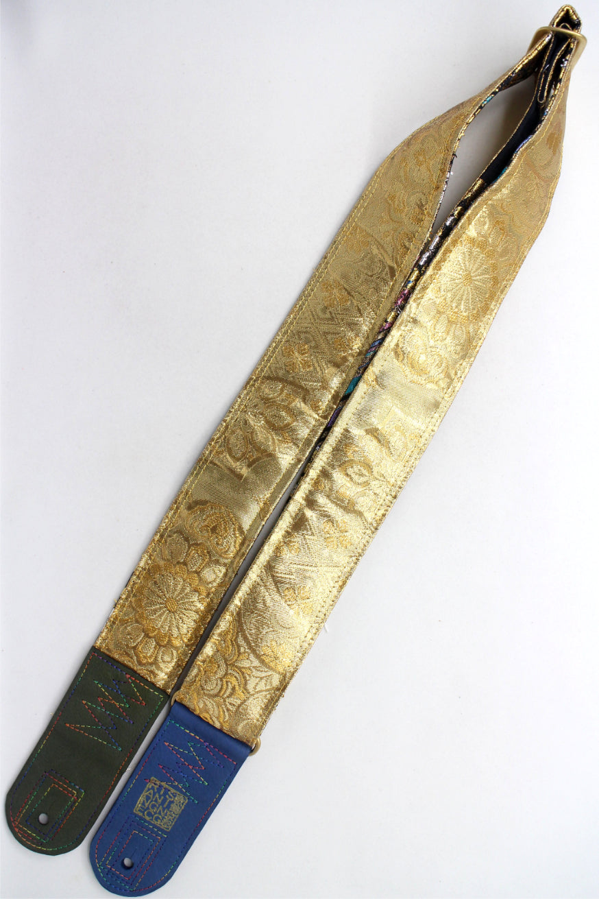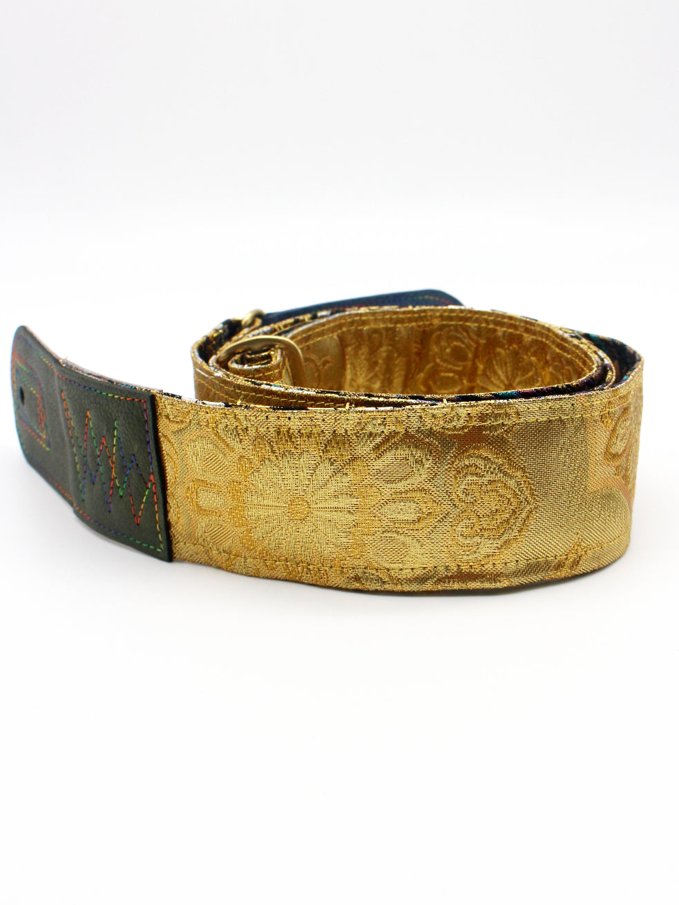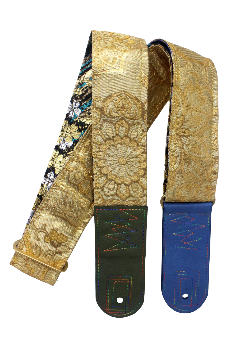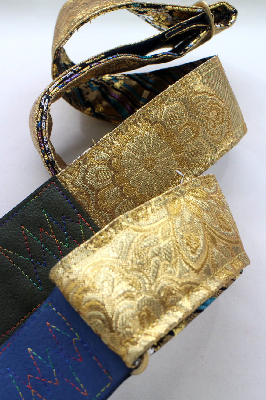 Unique and beautiful guitar strap [SC725191] - hand made in Japan from recycled silk woven kimono obi, leather and brass
