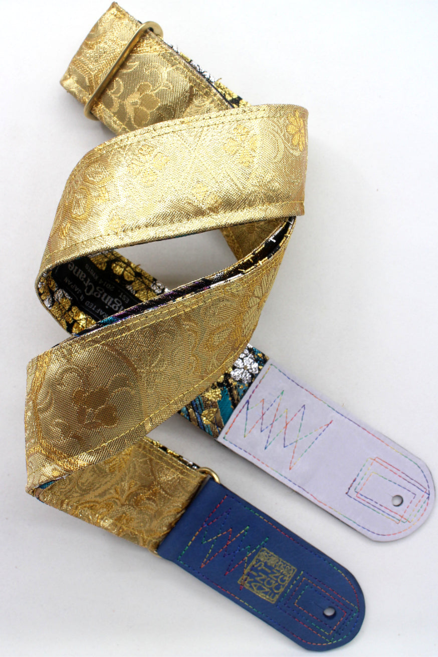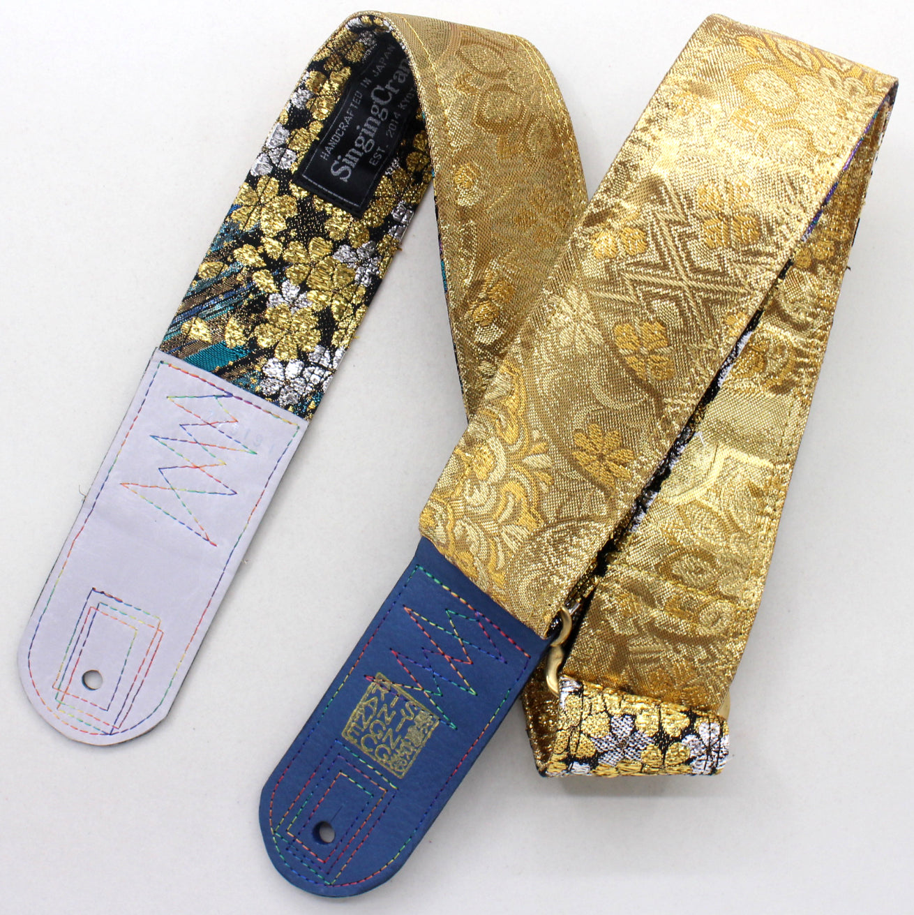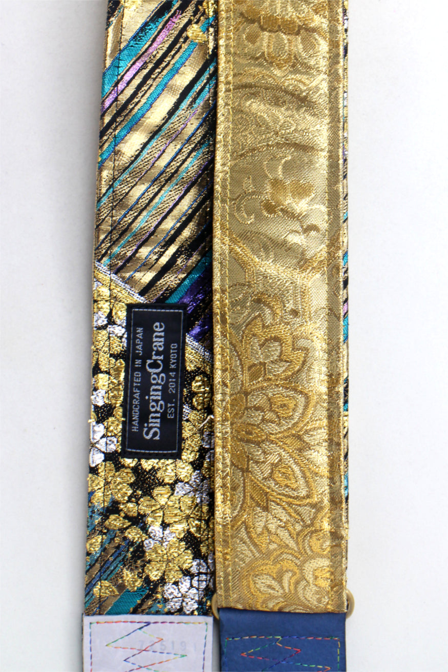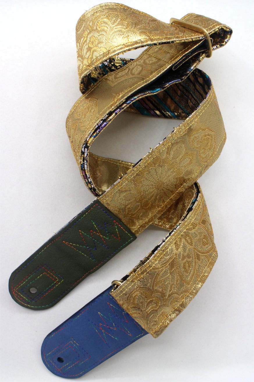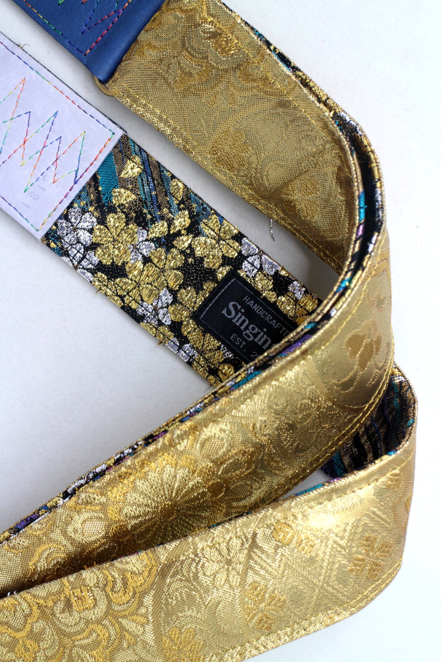 Unique and beautiful guitar strap [SC725191] - hand made in Japan from recycled silk woven kimono obi, leather and brass
