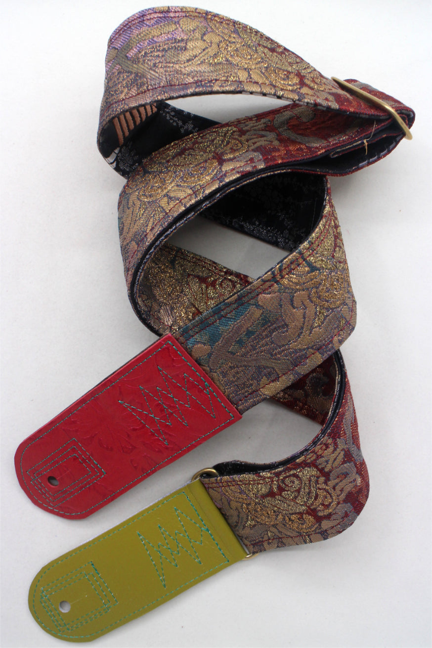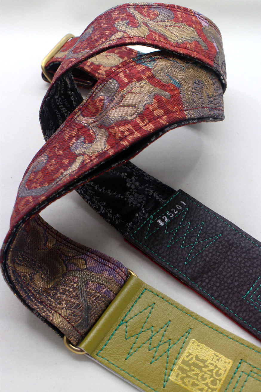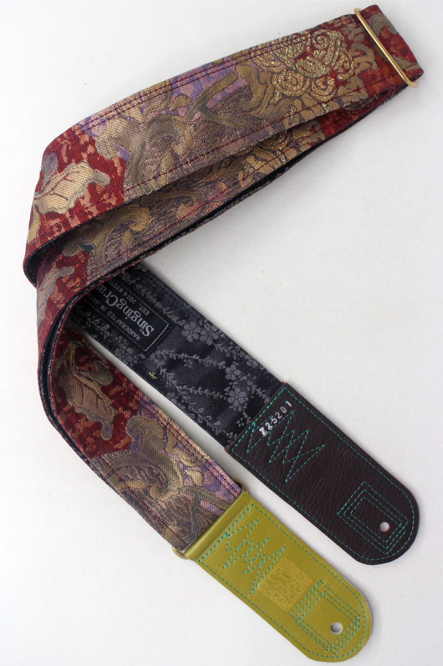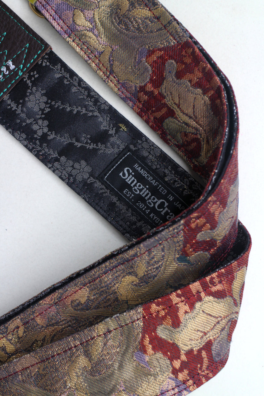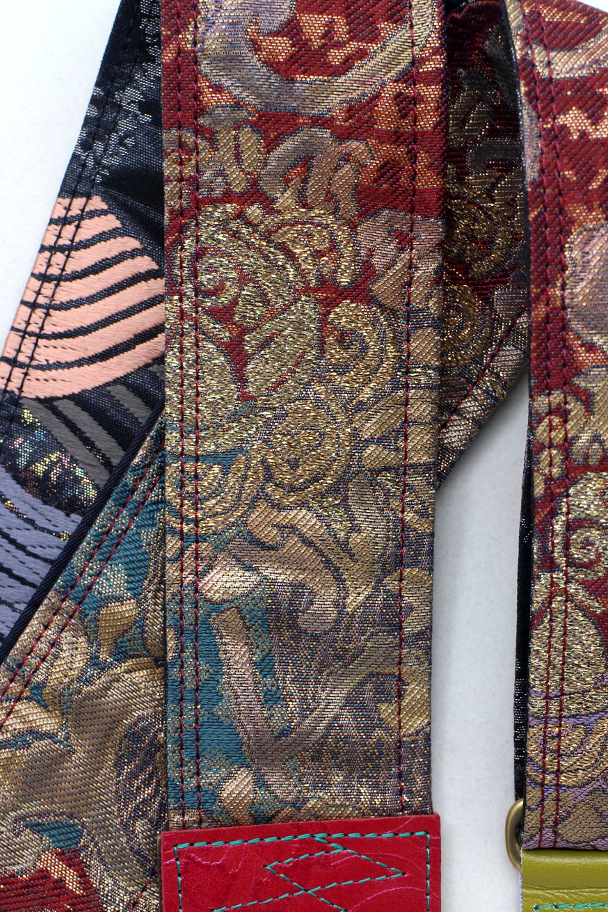 Unique and beautiful guitar strap [SC725201] - hand made in Japan from recycled silk woven kimono obi, leather and brass